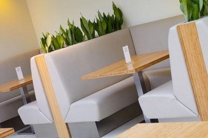 Een bank die zeer nauwkeurig kan worden ingemeten en geplaatst. 51980 B bank kan in diverse varianten worden ontworpen, zo is er een rechte-, een ronde- en een hoek variant, een treinopstelling, een u-opstelling en nog veel meer. Zitting en rug zijn volledig gestoffeerd. De stof kan naar eigen smaak worden bepaald. Het is mogelijk om de rugleuning met een verticale stiknaad of met knopen te stofferen.De plint is standaard in gelamineerd spaanplaat in de kleur antraciet. Deze kan in alle soorten HPL of fineer worden afgewerkt. Verder kan 51980 B treinbank tevens op houten poten worden geleverd.