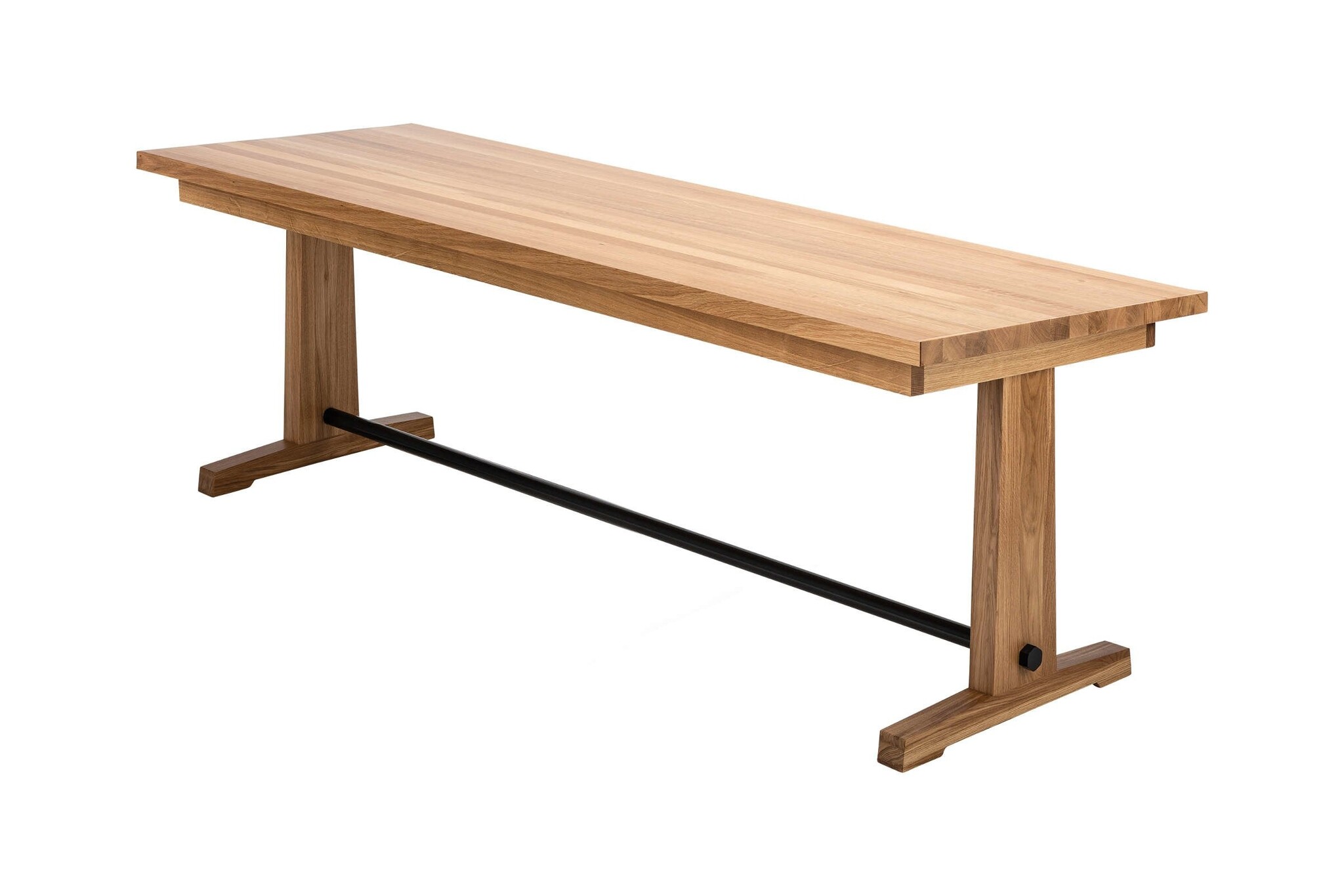 De tafel bestaat uit massief eikenhout. Hierdoor is de tafel stevig, stabiel en heeft het altijd een uniek patroon.