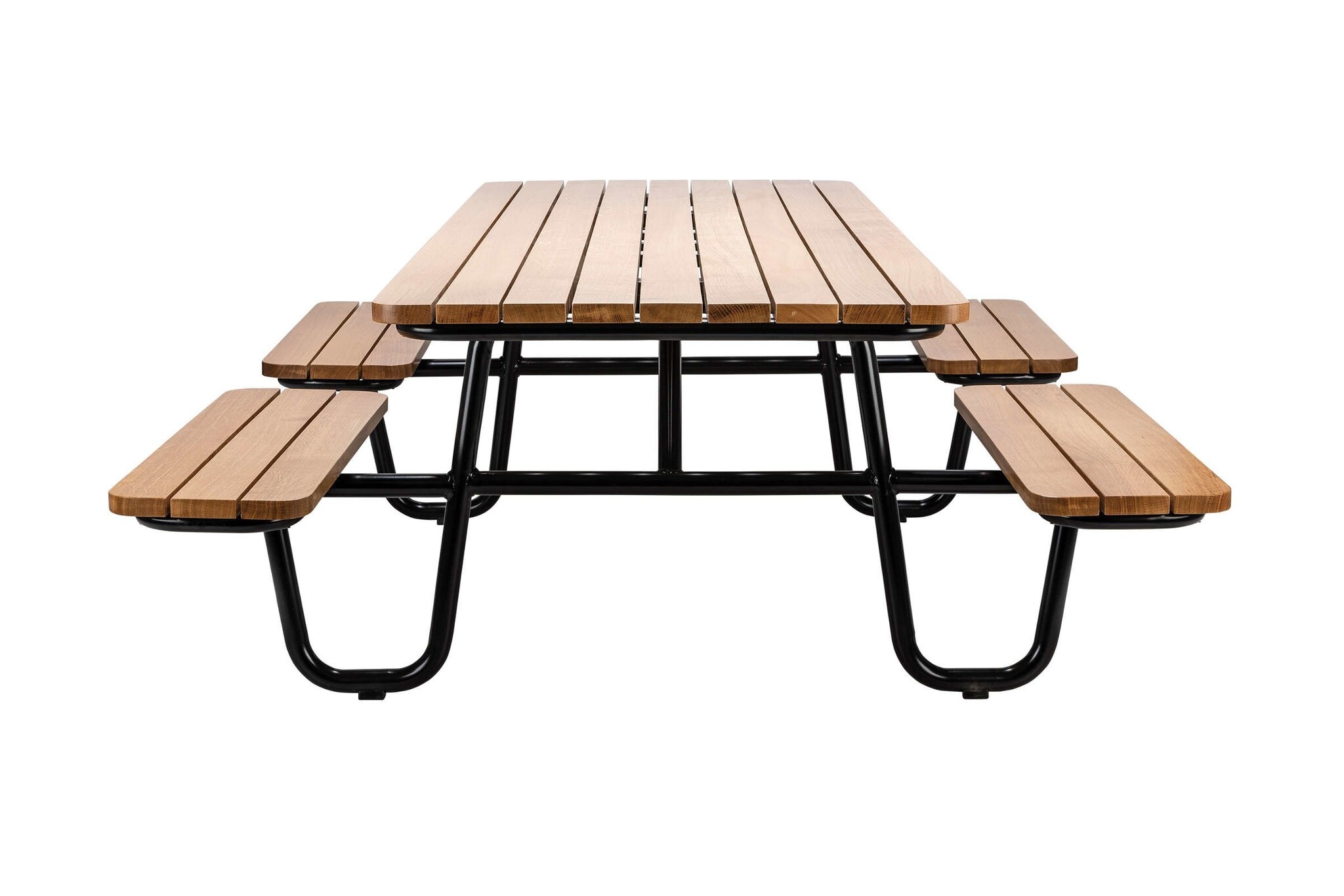 De picknicktafel is één geheel, de banken kunnen niet losgehaald of verschoven worden.