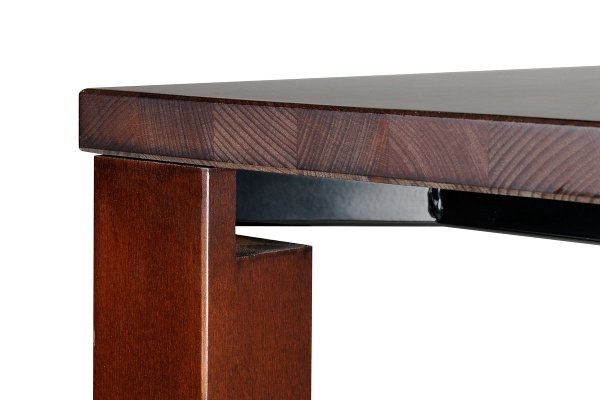 Massief beukenhouten tafel voorzien van een metalen frame (niet zichtbaar). Poten 7x7cm (Zonder kader waardoor de stoelen geheel onder de tafel kunnen worden geschoven): Diverse afmetingen leverbaar: 80x80, 90x90, 130x80, 140x80, 160x80, 160x90, 200x100, 250x100 cm. Houtafwerking in diverse kleuren leverbaar. Hoogte onderstel: 76 cm