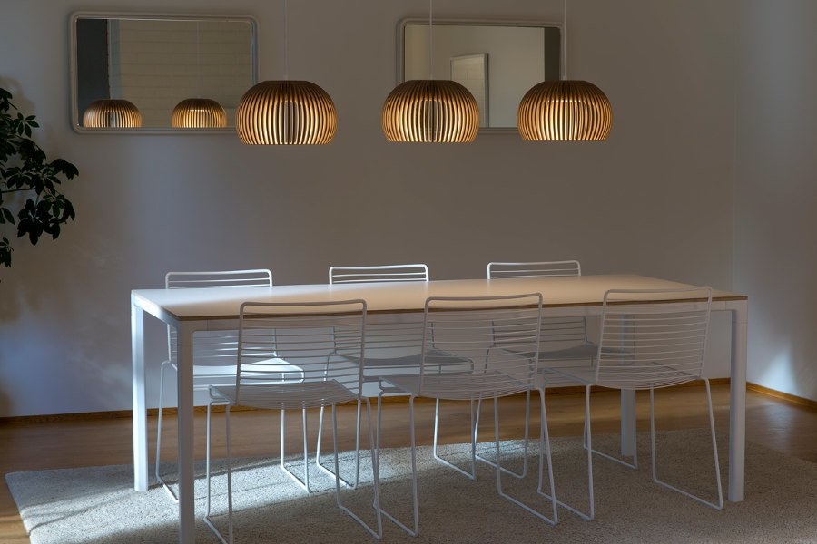 De Secto Design Atto 5000 is een apart vormgegeven hanglamp van hout. De ronde, sterk afgeplatte vormen van de kap toont het lichtvermogen van de 10 W LED lichtbron ten volle uit. De Secto Design Atto 5000 hanglamp is voorzien van de nieuwste LED-technologie en is handgemaakt van PEFC-gecertificeerde vormgeperste berk in Finland door zeer bekwame vakmensen. Sector Design plant voor elke boom die ze gebruiken 2 bomen terug. Dat is nog eens duurzaam! Deze houten Atto 5000 hanglamp is ook mooi te combineren met de andere houten lampen, zoals wandlampen of vloerlampen uit de collectie van Secto Design.
