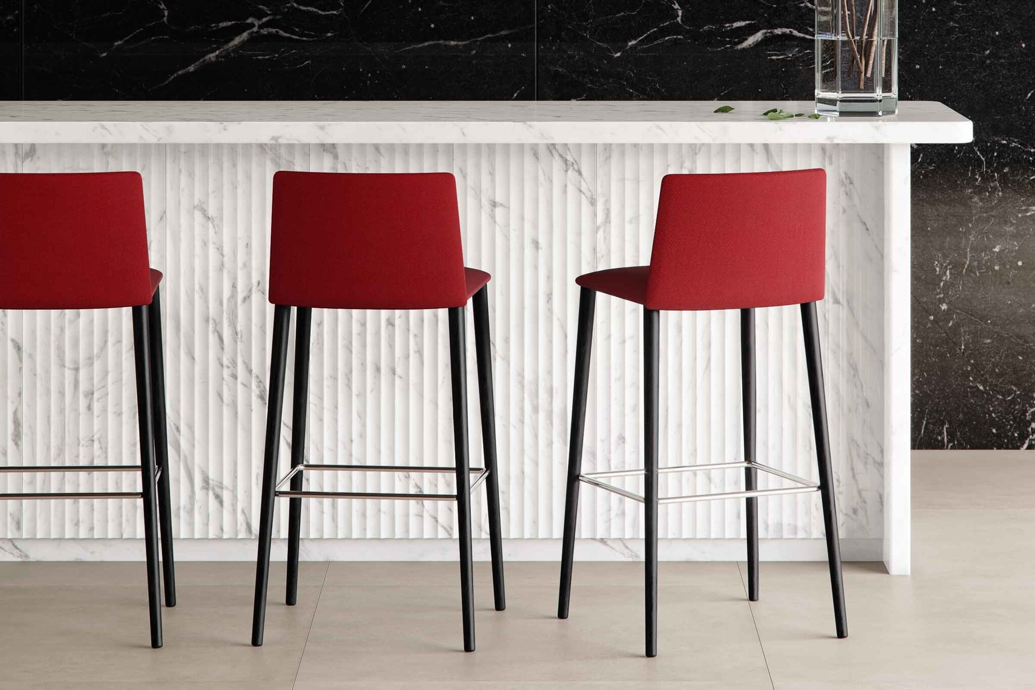 De Segis Stamp kruk heeft verschillende uitvoeringen en een volledig gestoffeerde en comfortabele zitschaal met rug. Doordat u kunt kiezen in de zithoogtes zijn de krukken toe te passen aan de counter of hogere bar. Ook aan een hoge vergadertafel is de kruk toe te passen. Bovendien is het onderdeel van de uitgebreide Stamp collectie van Segis. Een meubellijn met strakke lijnen en bijpassende meubels zoals stoelen, banken en fauteuils. Zo kunt u ze mooi combineren met elkaar en bijvoorbeeld uw hele bedrijfsrestaurant voorzien van het meubilair uit deze collectie.