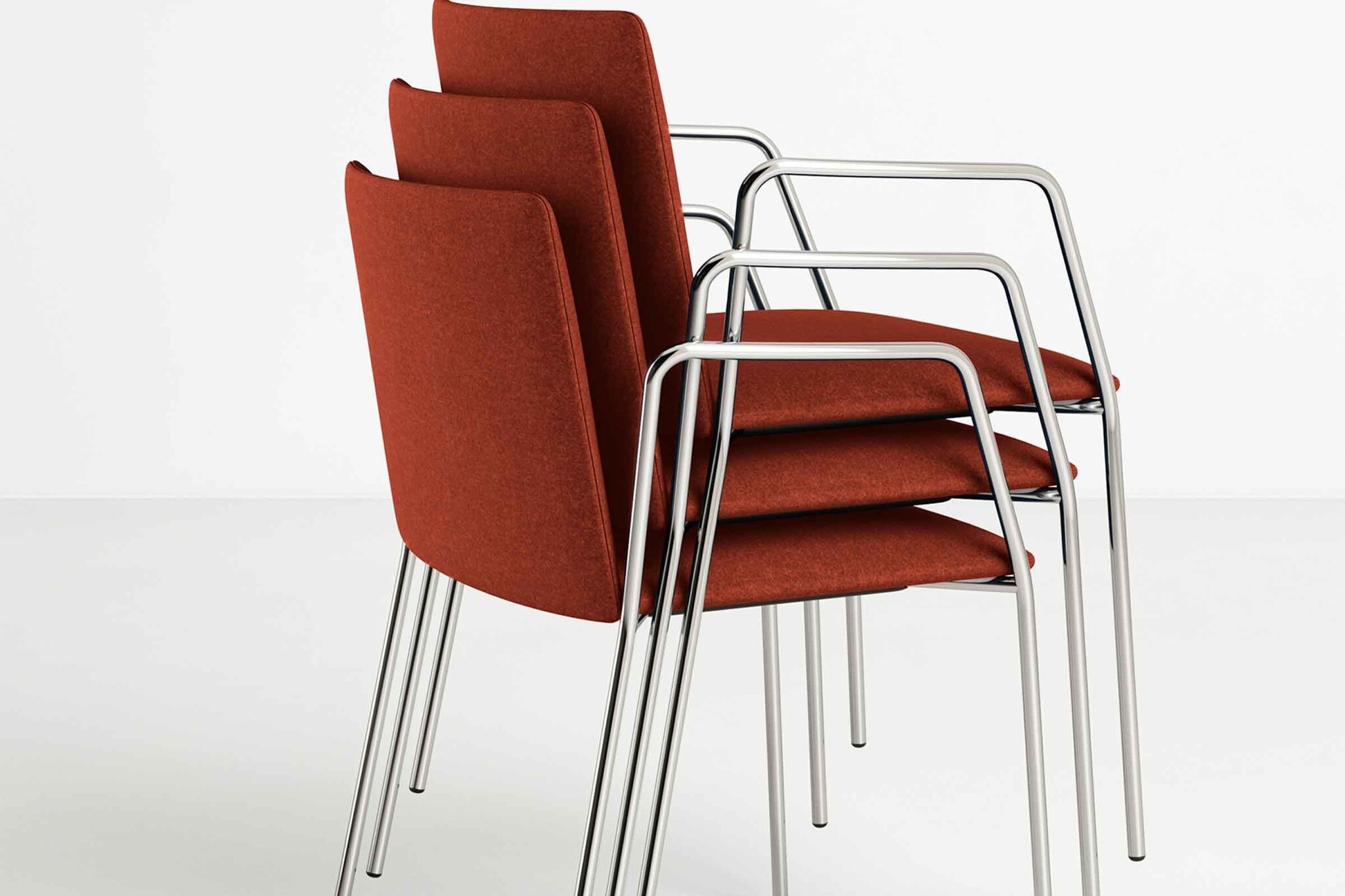 S0191: 4 poot stoel met stalen armleuning (gesloten). Stapelbaar.S0192: 4 poot stoel met stalen armleuning (open). Stapelbaar.