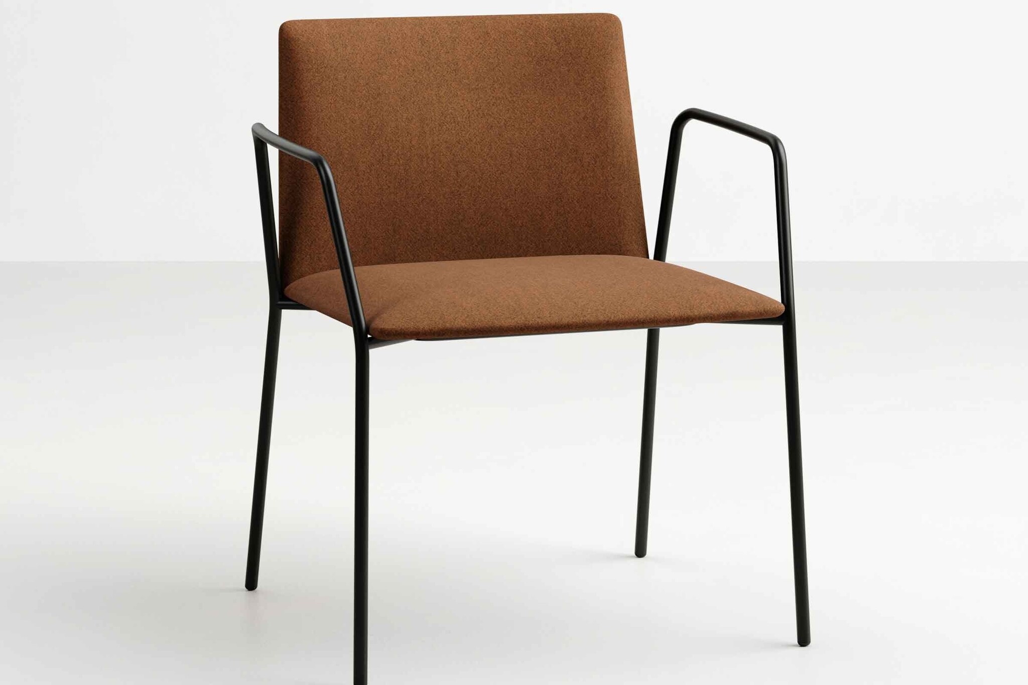 R0123: stoel met spinvoet en gesloten gestoffeerde armleuning.