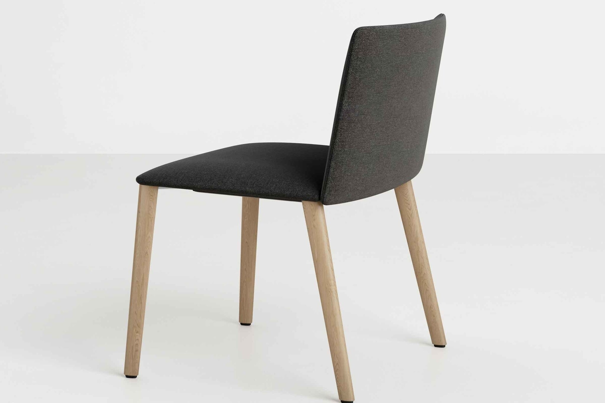 S0201: 4-poot stoel met houten poten en volledig gestoffeerde gesloten armleuningen.