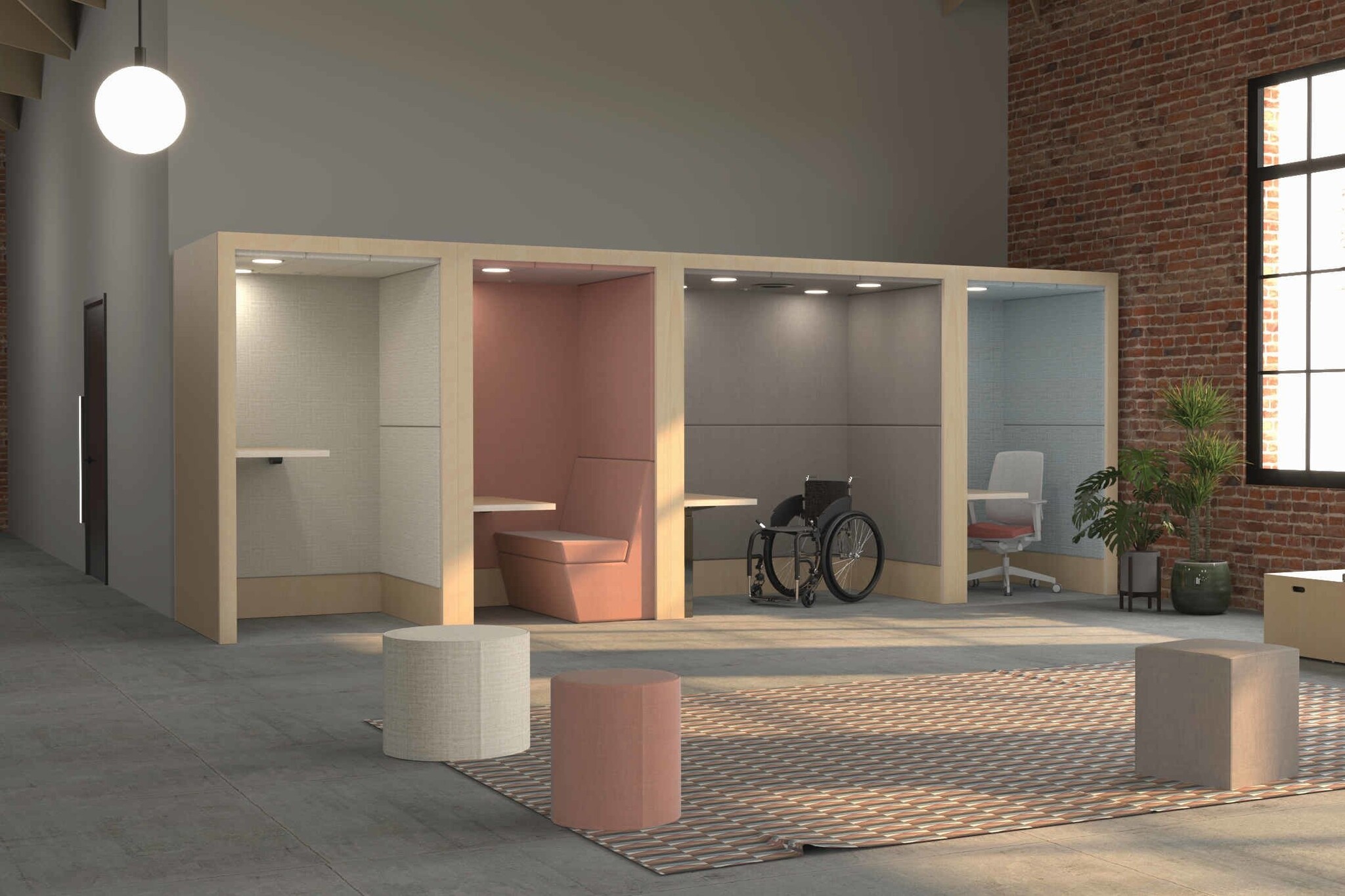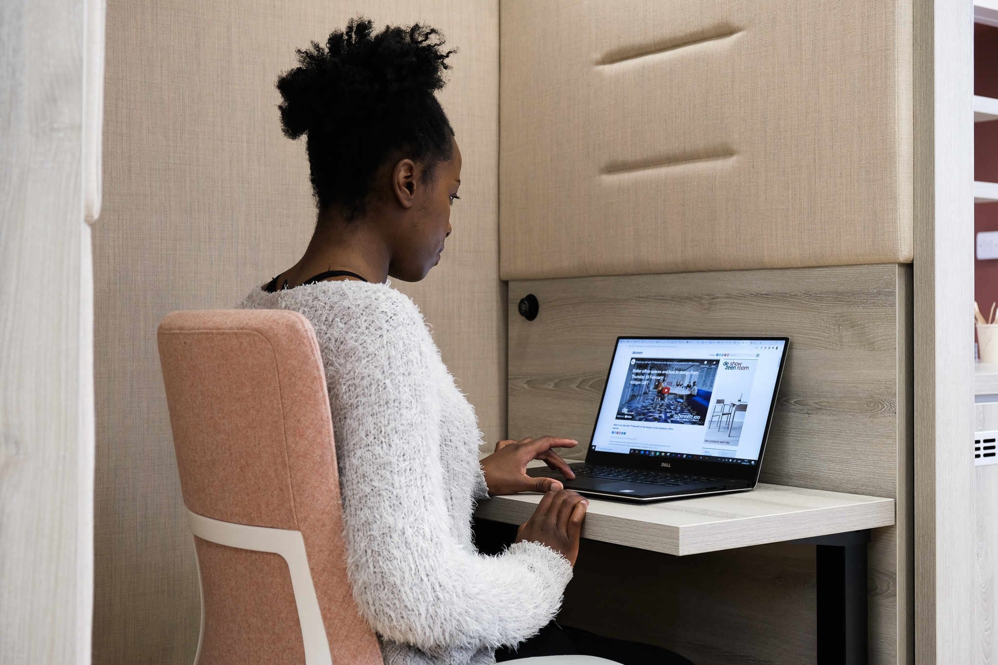 De Spacestor Portals bestaat uit een flexibele familie van productieve ruimtes die tegemoetkomen aan de keuze van de werknemer door middel van een verscheidenheid aan individuele werkstijlen. Zo blijf u verbonden met de drukte, zonder afgeleid te worden. U kunt ervoor kiezen om staand in de Portals te werken of zittend op de bijgeleverde zitting of bureaustoel. Het tafelblad is op een vaste hoogte of in hoogte verstelbaar, zodat u eenvoudig kunt afwisselen tussen zittend en staand werk. Bring your own