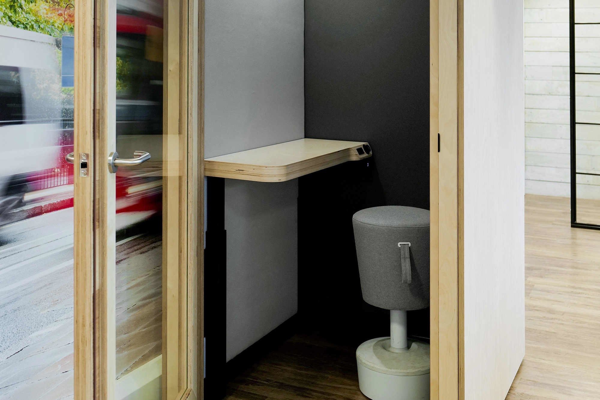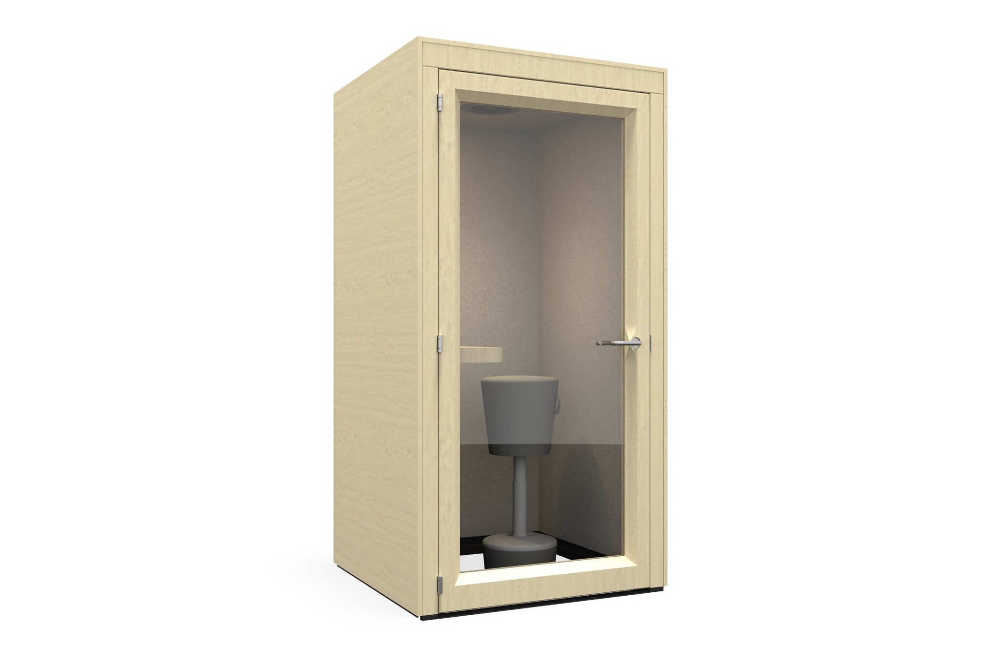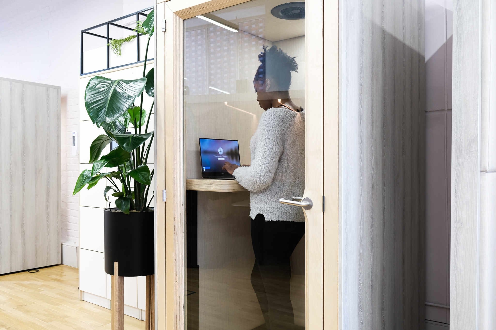 Verkrijgbaar met een in hoogte verstelbaar of vast bureau in een zittende of staande werkhouding, instelbare ventilatie en ingebouwde elektrificatie, de Spacestor Residence Max is ontworpen om comfortabel te zijn voor een langere periode. Het product heeft bovendien een extreem hoge akoestische kwaliteit.