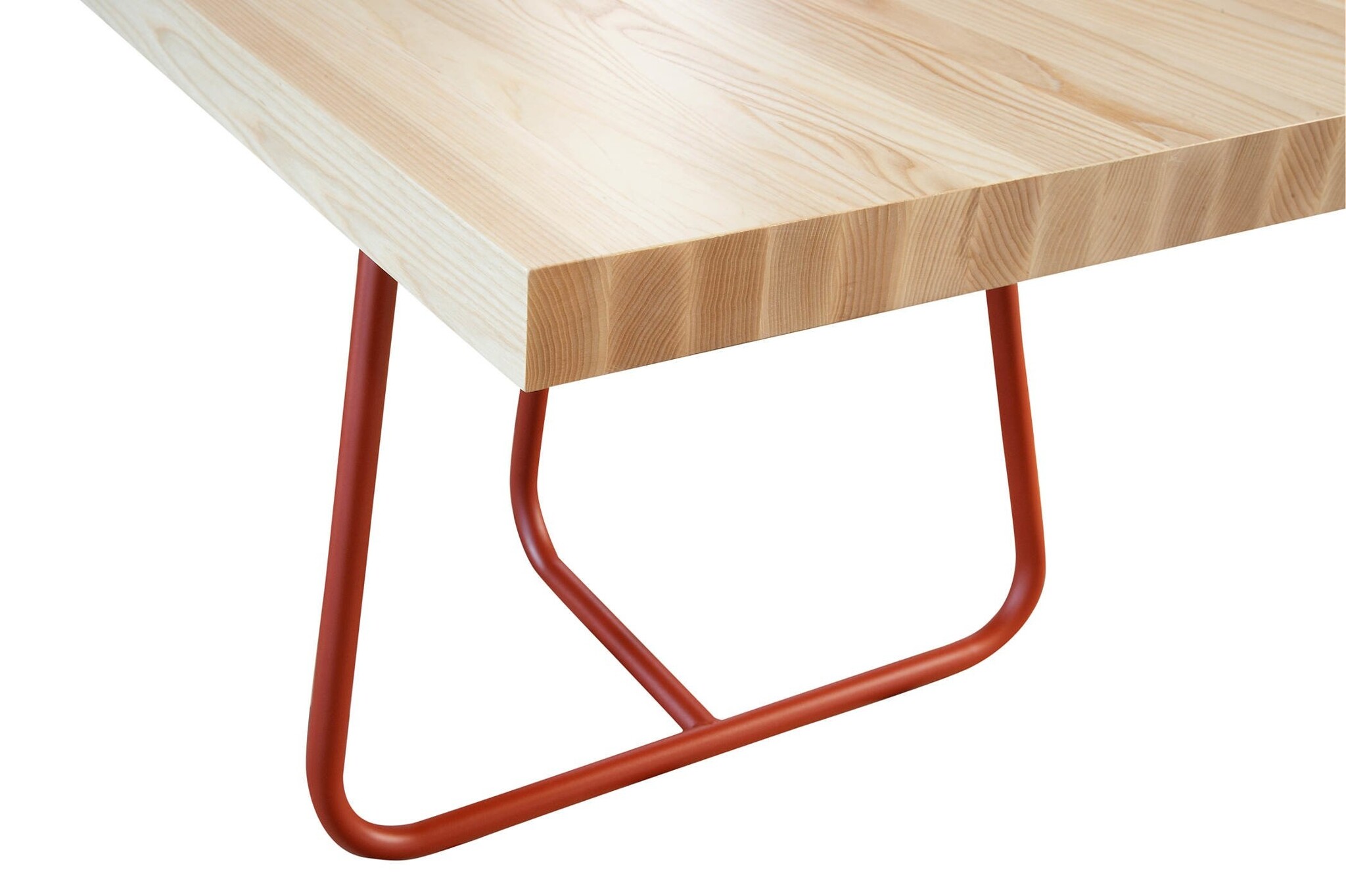 eiken of essen blad naturel met frame in poedercoat menie rood