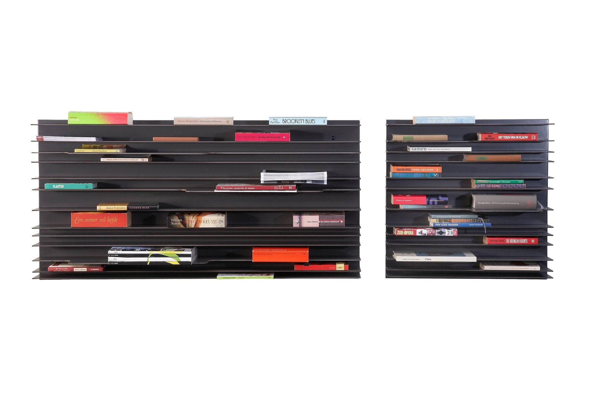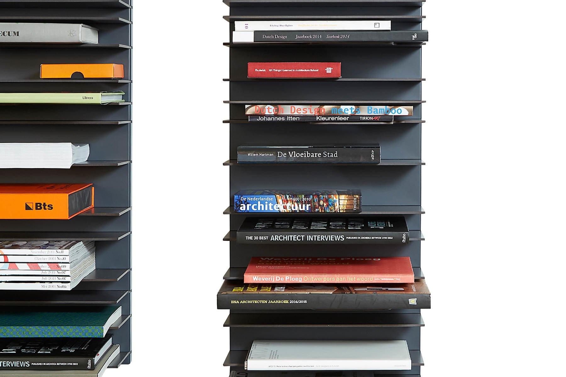 Per 13 legplanken zijn er 3 met een “tab” eraan voor het plaatsen van grotere boeken, tijdschriften of voorwerpen.