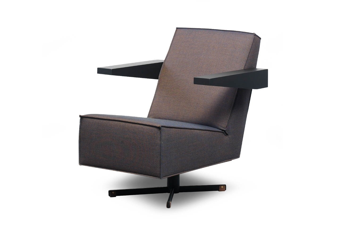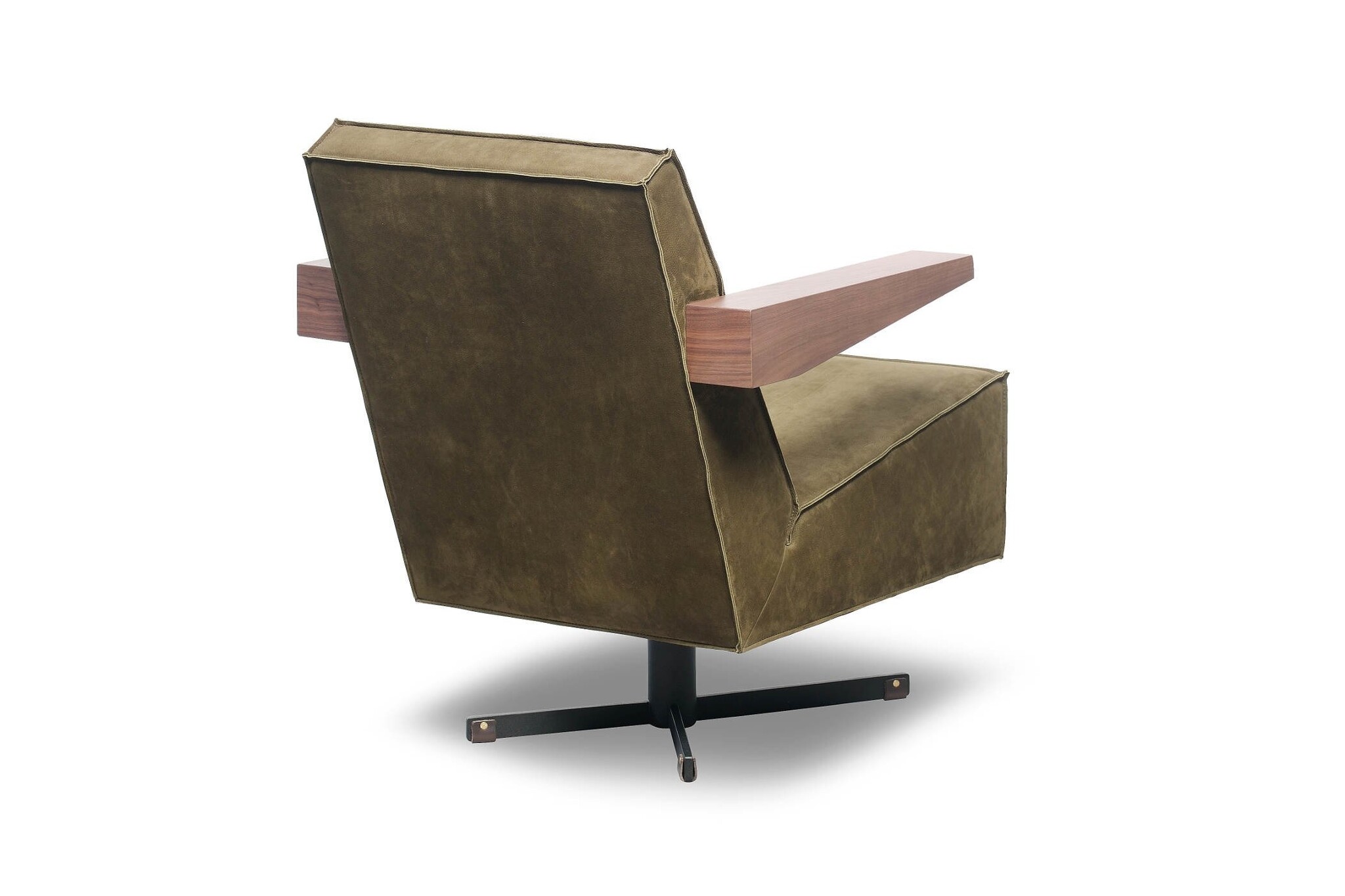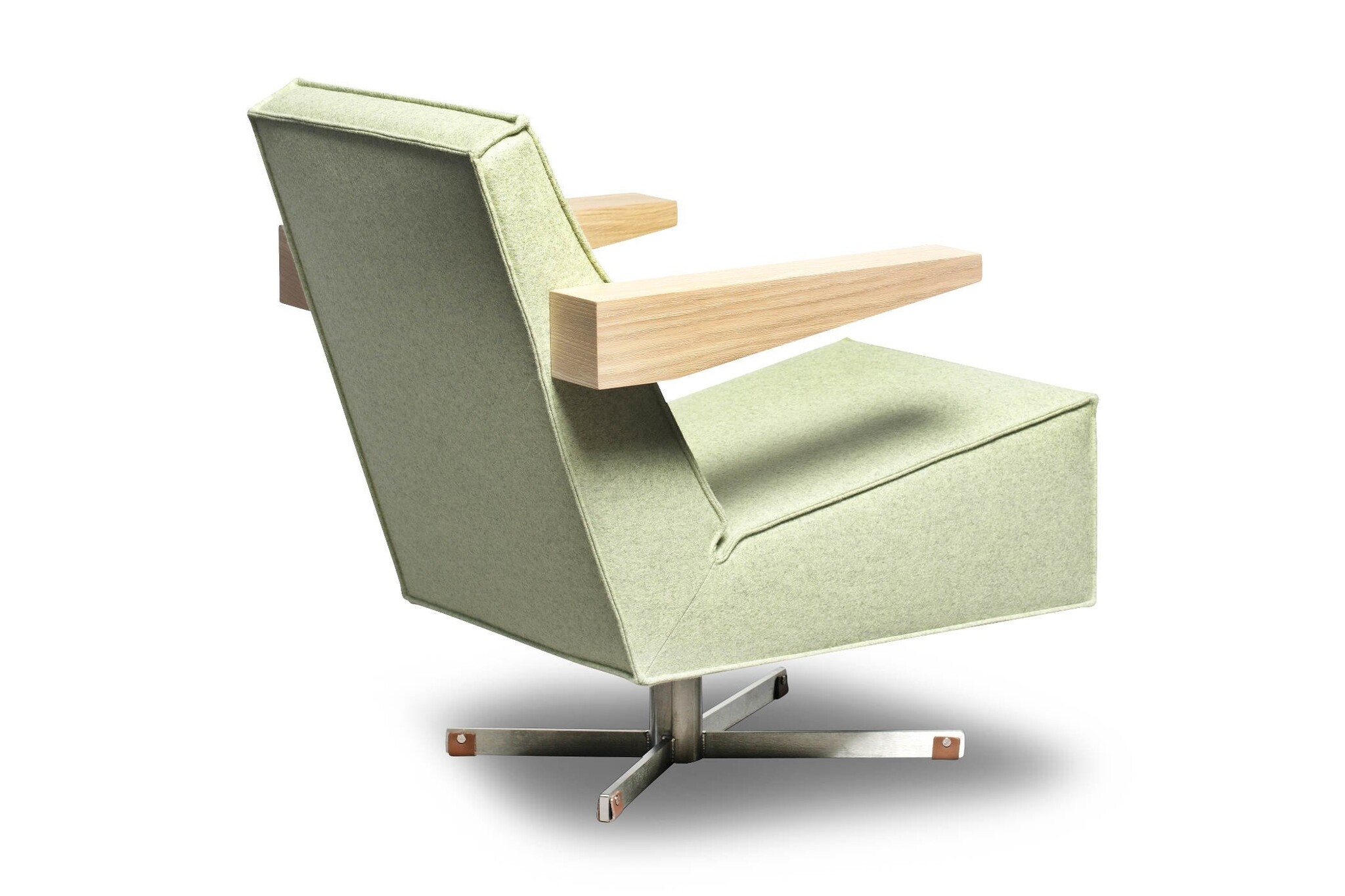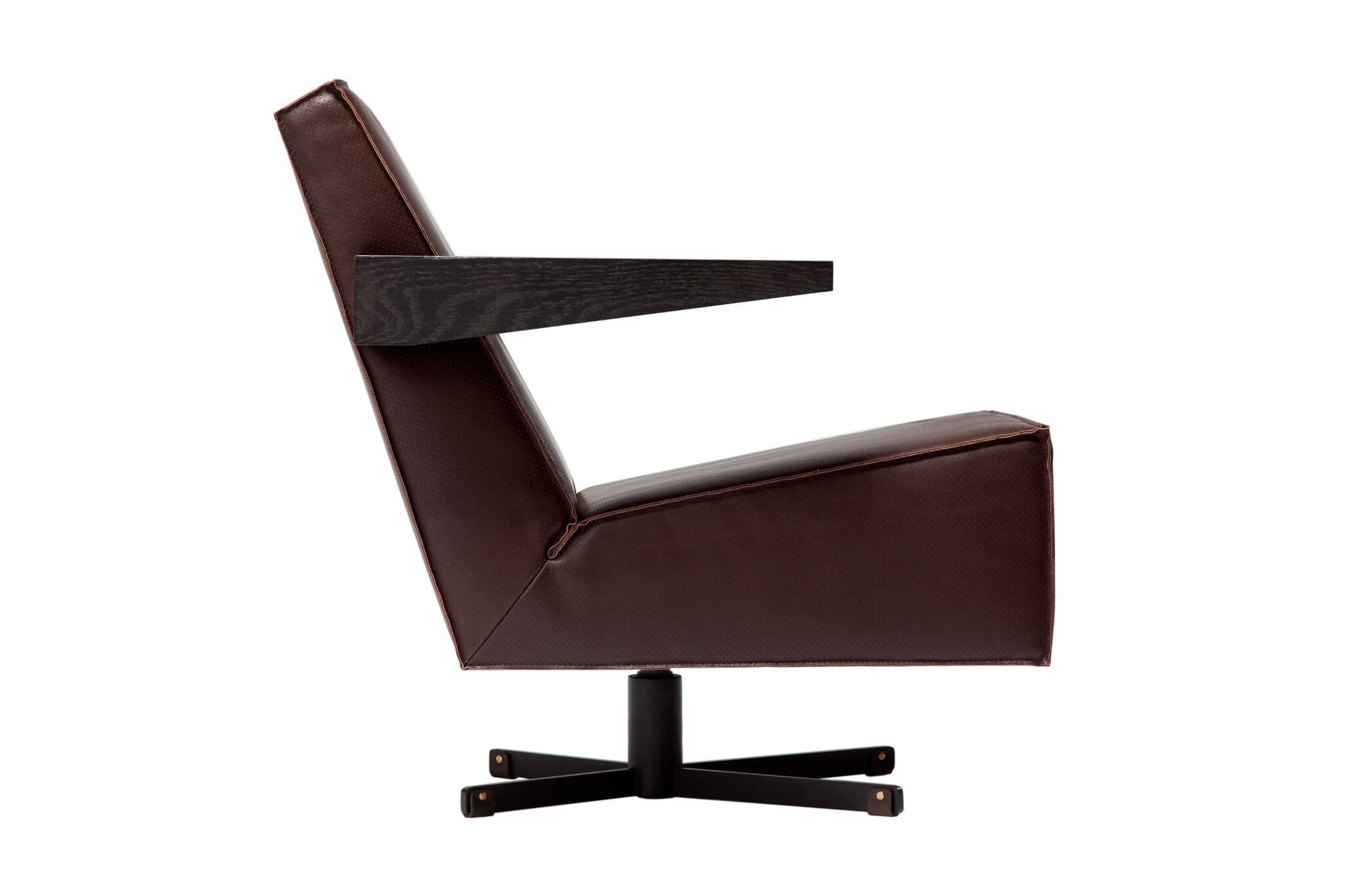 De Press Room Chair is leverbaar in een gestoffeerde en een leren uitvoering. De bijzondere afwerking van de stiknaden accentueert de strakke, heldere vlakverdeling van de fauteuil, die bovendien in de brede, houten armleggers terug komt.