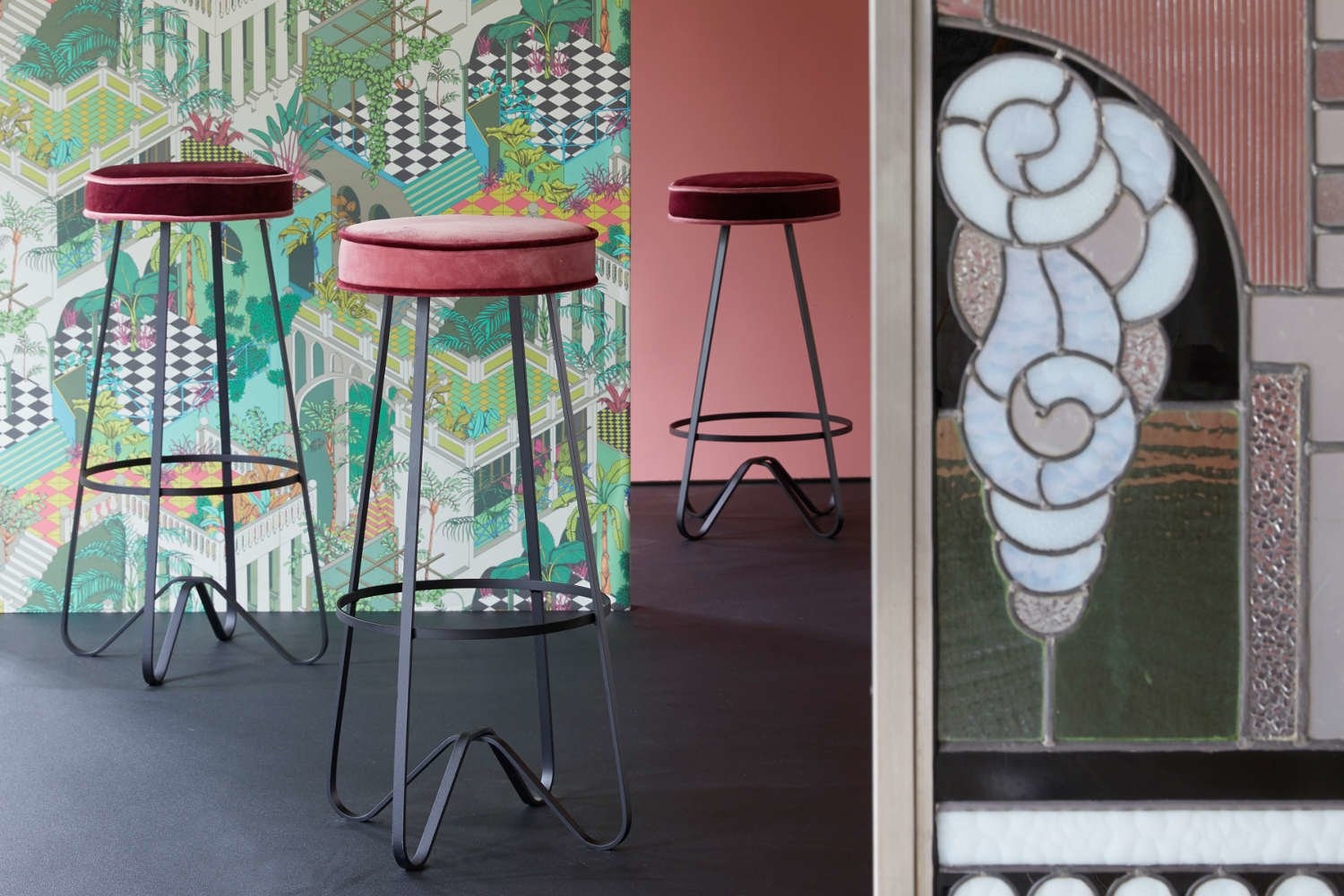 De zitting van de barkruk is gestoffeerd in alle stoffen uit de Spoinq collectie, zo ook in leer of in de stoffencollectie van Kvadrat.