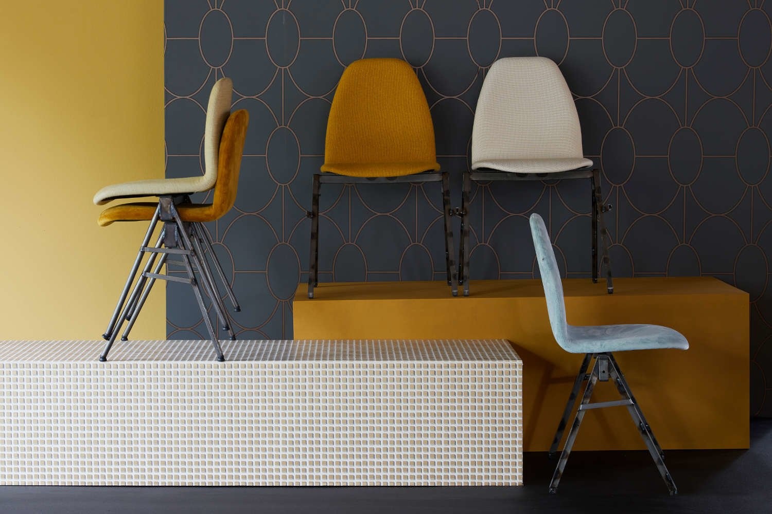 De zitschaal van de stoel is van hout: Naturel, Wenge, White Wash of volledig te stofferen uit de leer- en stoffencollectie van Spoinq.