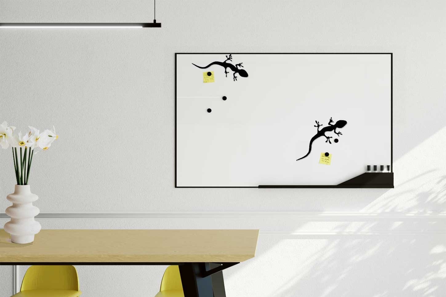 De Studio VIX Gekko is een elegant whiteboard voor aan de muur en heeft een schrijfoppervlak van 120 bij 90 cm en is voorzien van een geïntegreerde houder voor 5 markeerpennen en plankje om bijvoorbeeld een wisser op te plaatsen. Notities maken Tijdens een overleg, stand-up of een scrumsessie is het maken van aantekeningen vaak gewenst. Soms kun je het beter uittekenen dan beschrijven en dan komt de Studio VIX Gekko whiteboard goed van pas. Met de houder heeft u altijd markers bij de hand en kunt u meteen het whiteboard gebruiken.