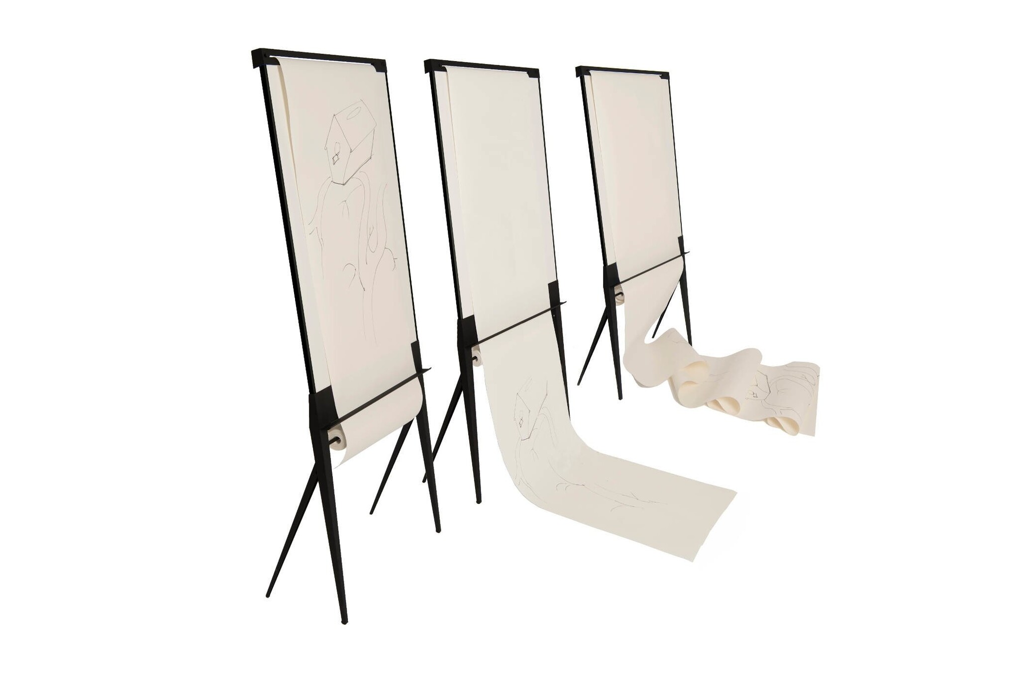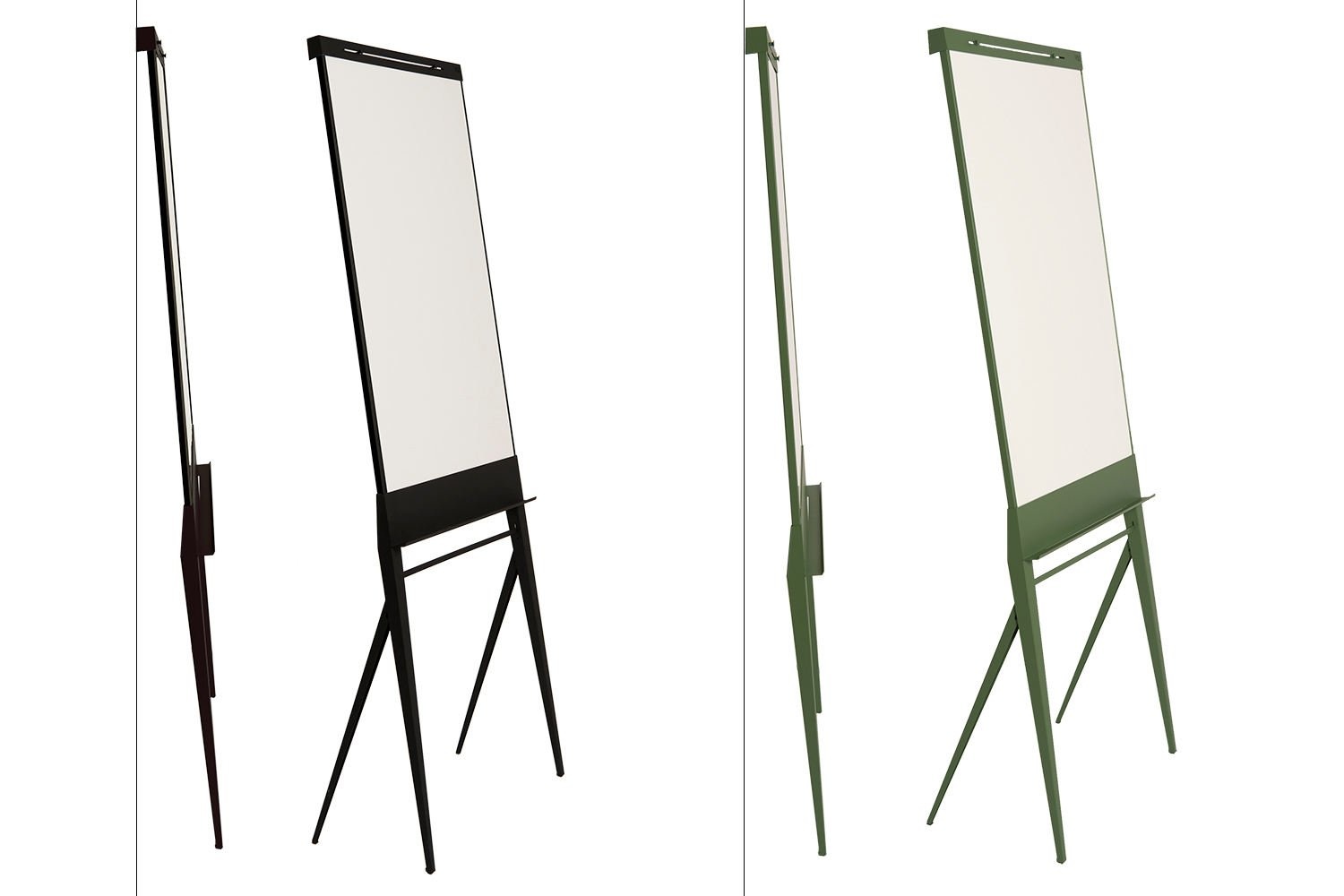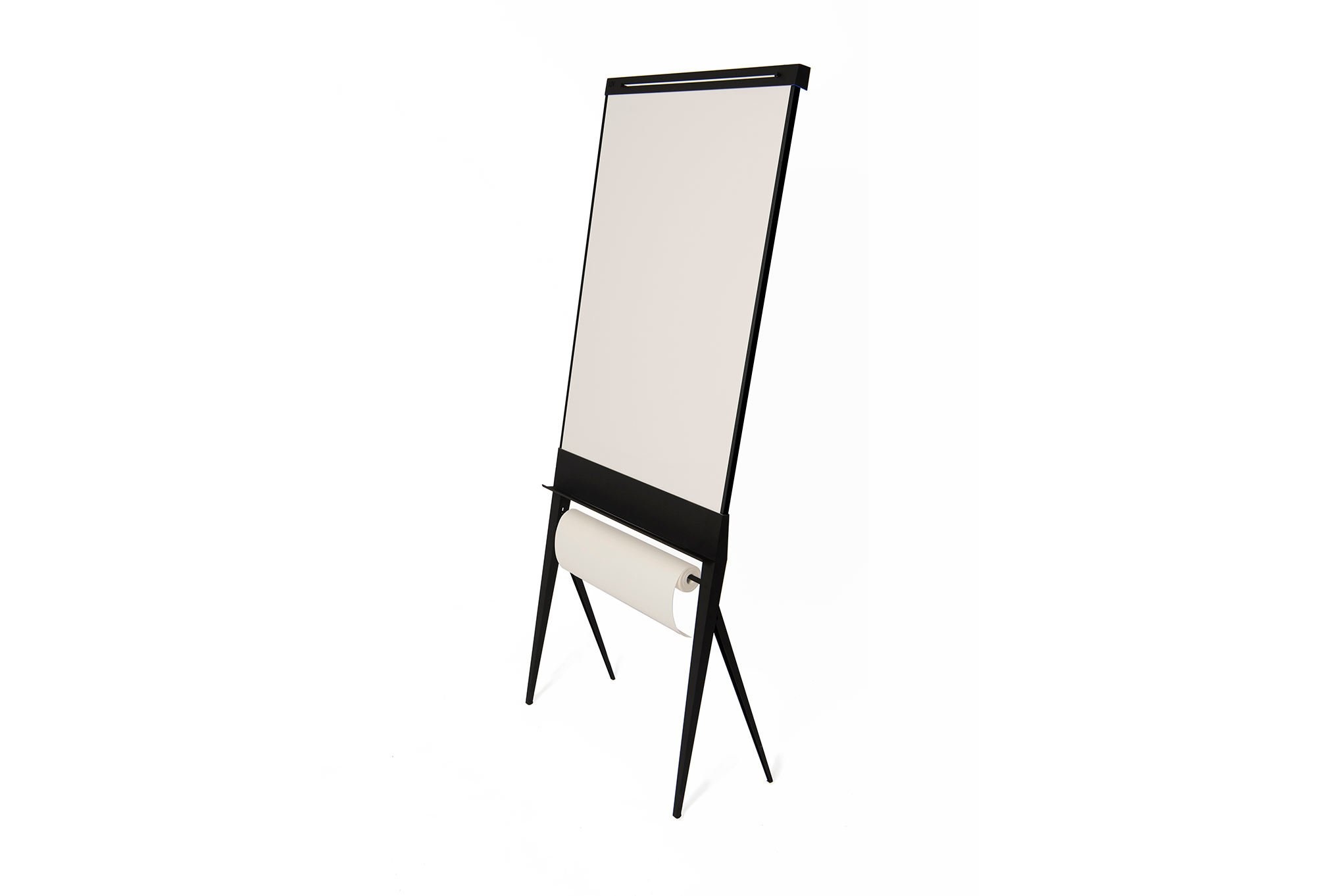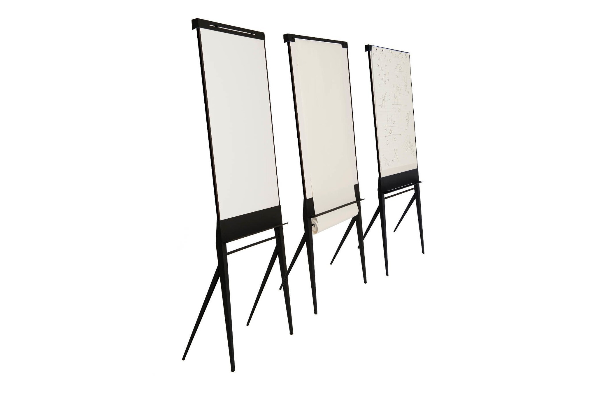 Drie functies in één model: Emaille Whiteboard on steel, magnetic, Flipover ophanghaken en een Papierrolhouder (tot A1 formaat).
