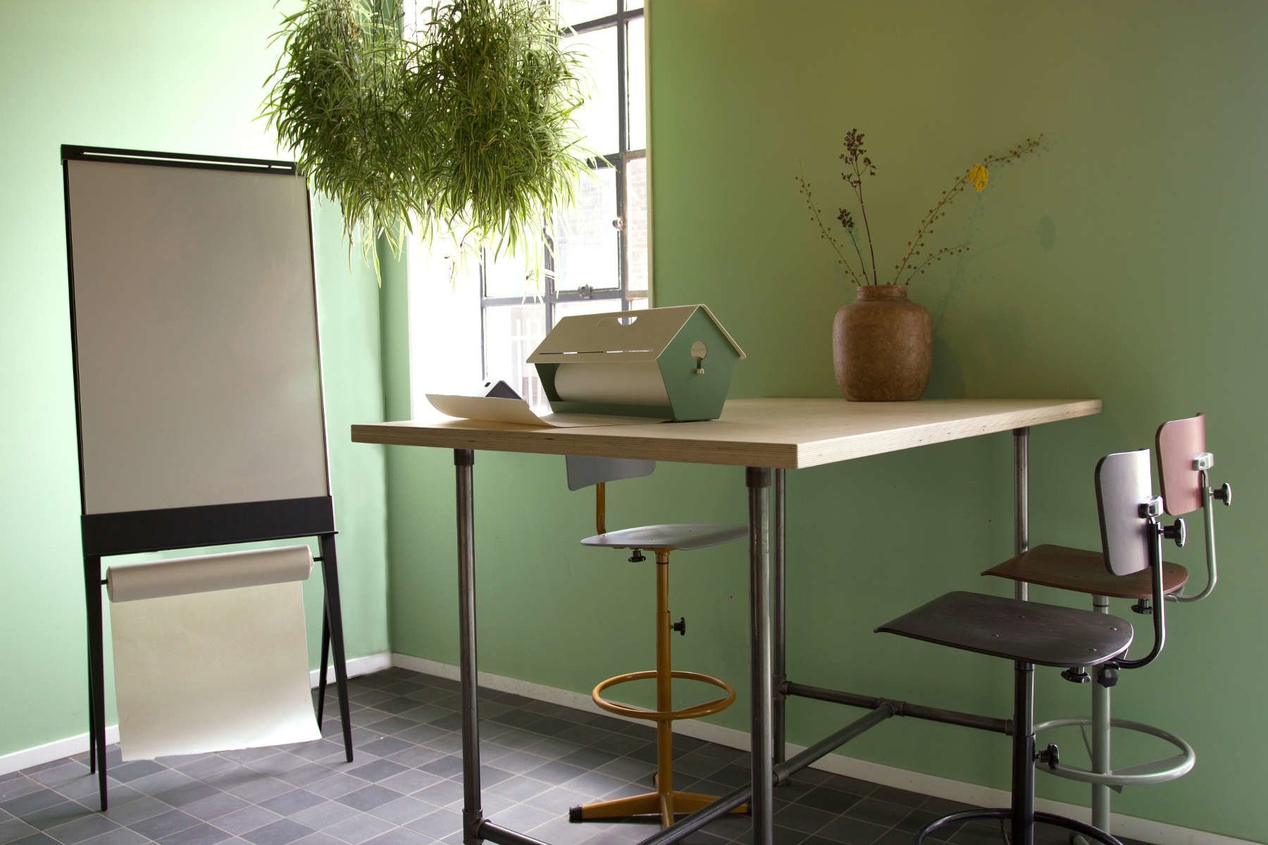 De Struts is overal te plaatsen, tegen de muur of vrijstaand in de ruimte, dankzij haar parmantig uitklapbare poten.