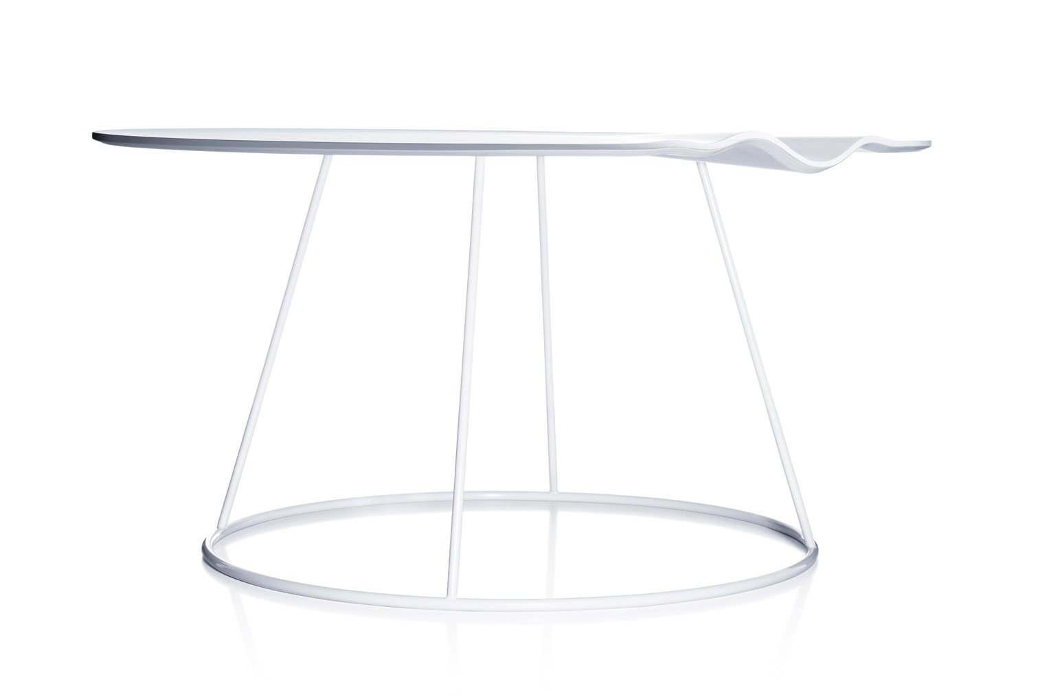 Swedese Breeze salontafel bestaat uit een serie ronde geraffineerde tafels voorzien van een rond stalenframe. De salontafel is leverbaar in het zwart of wit en kan voorzien worden van een rond vlak tafelblad of een tafelblad met een golf. De golf is een uniek ontwerp in het blad dat bijdraagt aan het karakter van de tafel. De tafel is mooi als entreemeubilair maar kan ook als bijzettafel gebruikt worden.