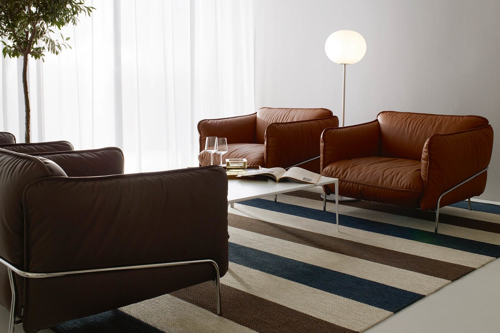 Swedese Continental sofa, verkrijgbaar in stof of leder. Het stalen frame in chroom afwerking, hoogglans wit of zwart gelakt.