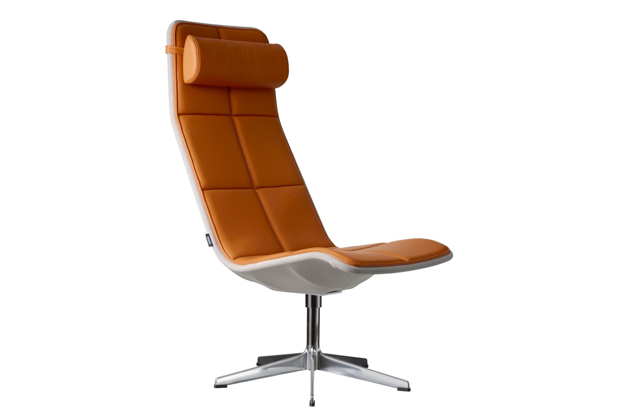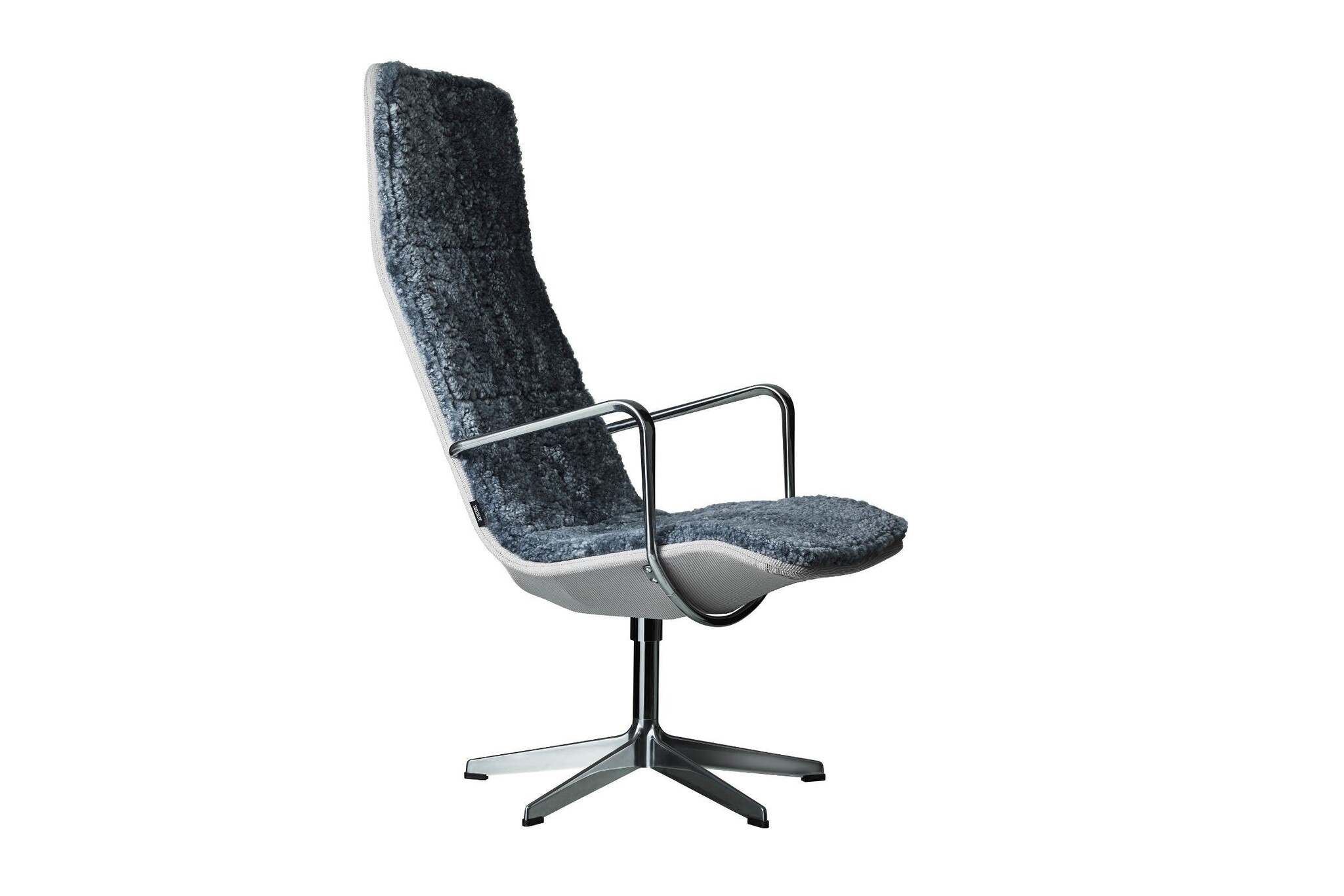Swedese Kite fauteuil is een eenvoudige fauteuil geïnspireerd door de bouw van een vliegtuigvleugel . De nieuwe fauteuil is ontworpen door Broberg & Ridderstrale en heeft een ingenieuze constructie en een eenvoudige opzet. De stoel is te leveren in het zwart of lichtgrijs en voorzien van een 5-sterren draaivoet. Over het stalenframe zit het zwarte of lichtgrijze net gespannen. Het basismodel kan uitgebreid worden met armleuningen, nekkussen en een gestoffeerde zitting en rug. Het onderstel is in gerecycled, gegoten aluminium in gepolijst helder, wit of zwart gelakt.