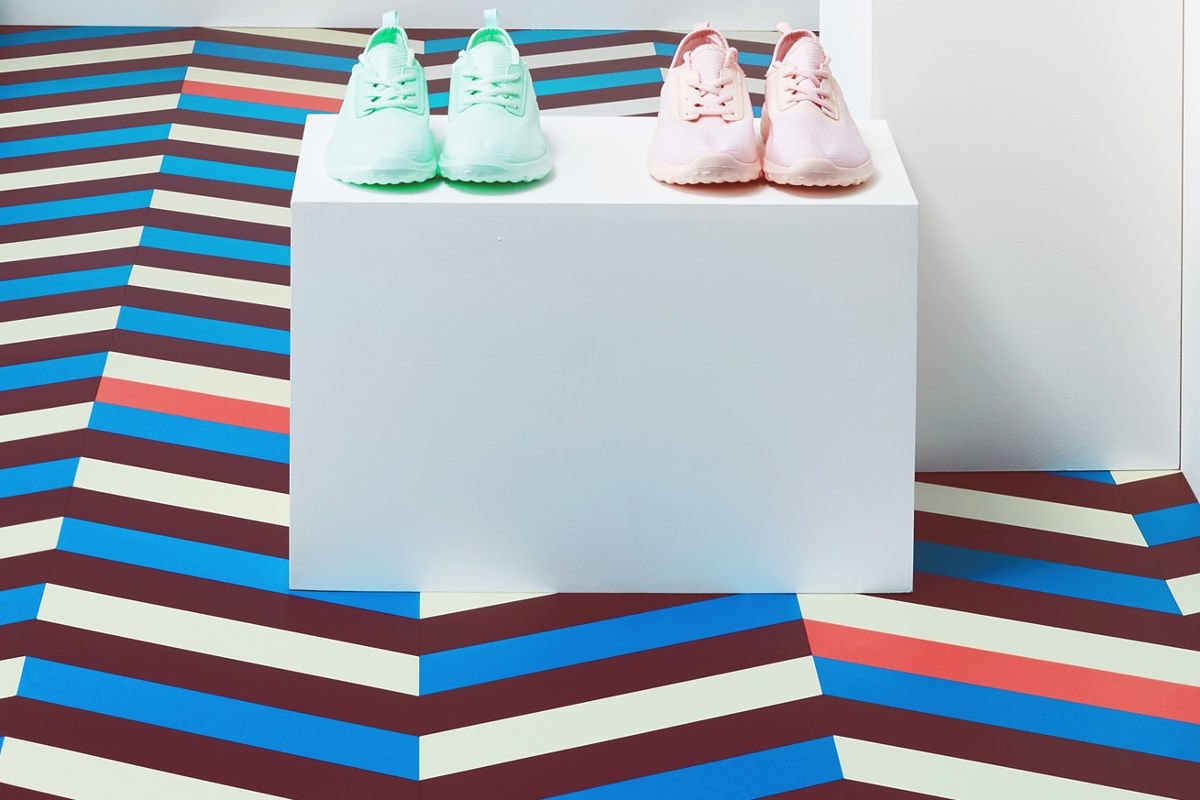 De collectie bestaat uit de hieronder staande grafische vormen die onderling met elkaar gecombineerd kunnen worden voor het ontwerpen van een unieke vloer, waarvan 7 in groot formaat en 3 in klein formaat. Elke vorm tegel is in 33 kleuren leverbaar. Zie de een-na-laatste foto in de afbeeldingengalerij.