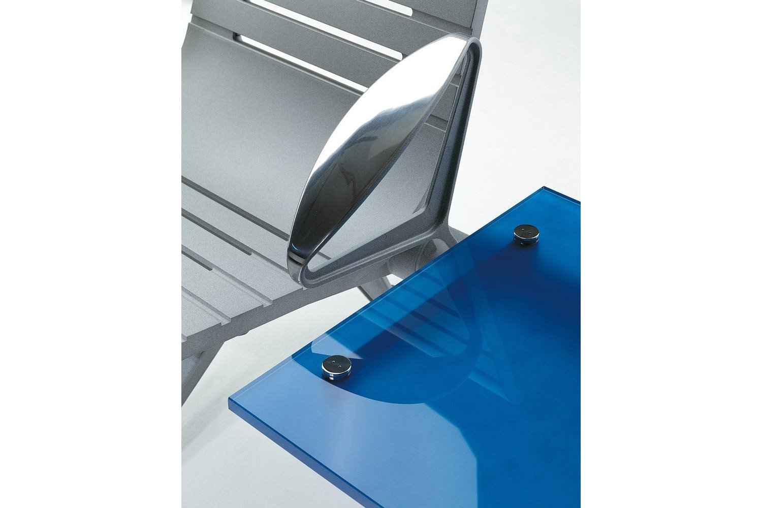 De RS collectie bevat ook accessoires, zoals tafels in twee kleuren van glas of in zwart laminaat en een doorlopende bank gemaakt van houten latten, met of zonder rugleuning. Het resultaat is een uiterst flexibel zitsysteem dat ideaal is voor gebruik binnen en buiten.