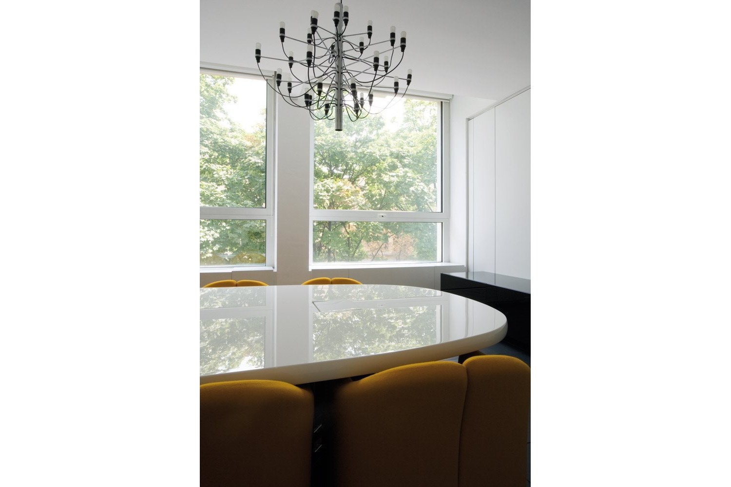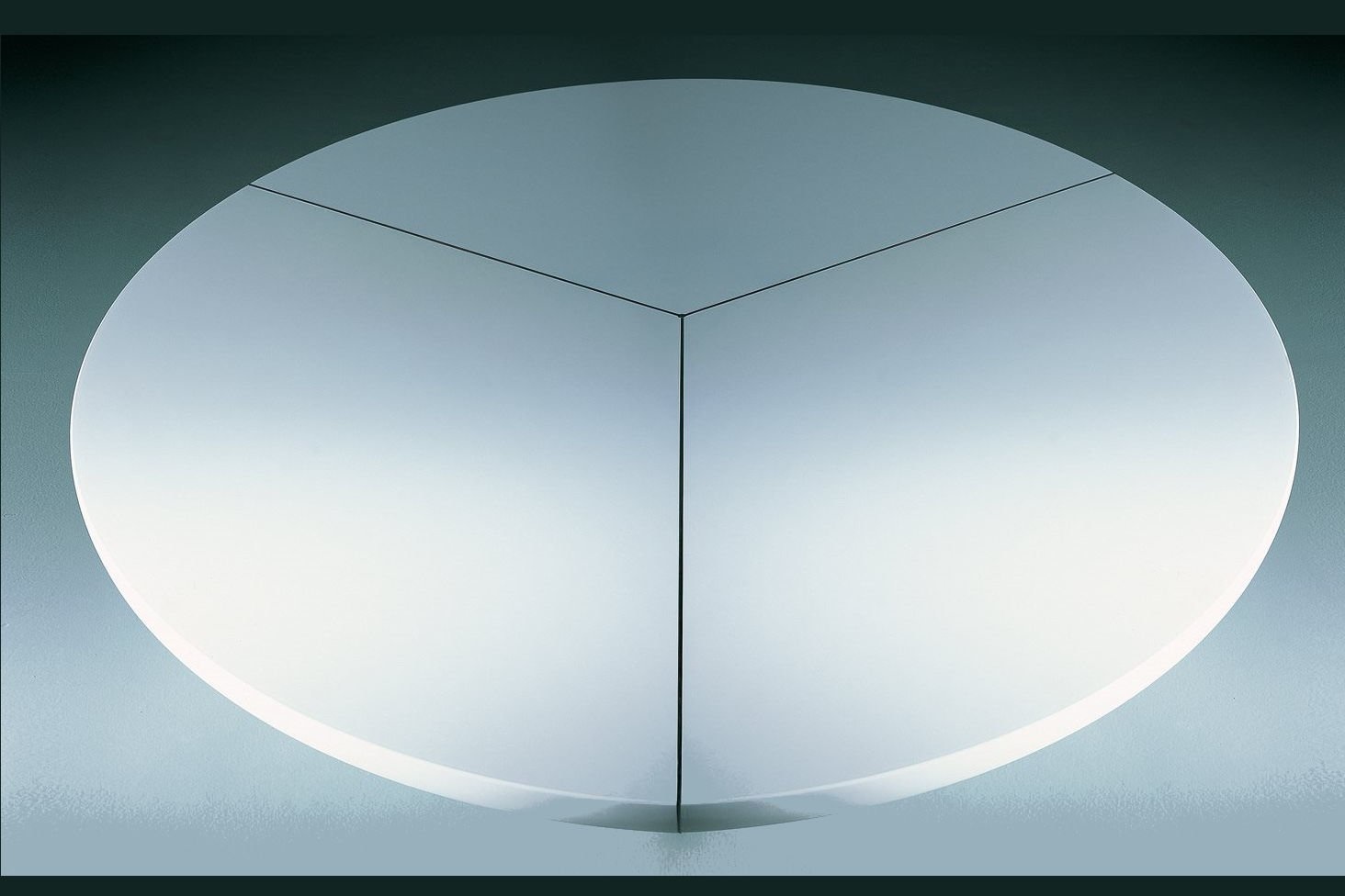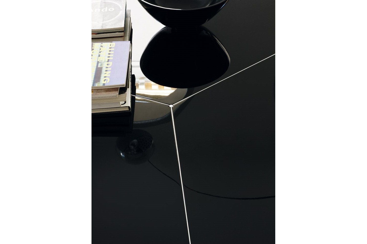 Het unieke en instant herkenbaarheid van de Tecno T334 en T335 tafels is het resultaat van de onmiskenbare dubbele T-vorm duidelijk zichtbaar in de poten die gepolijst zijn tot een spiegel.