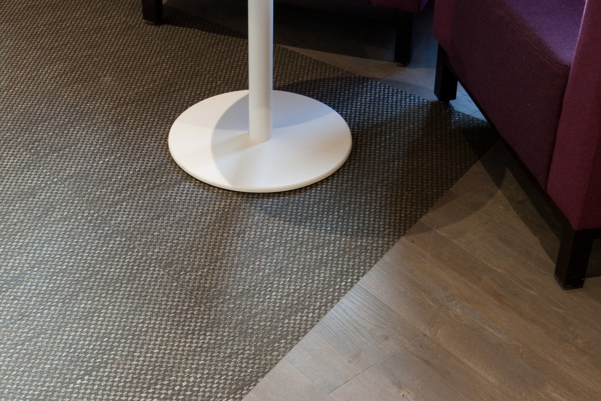 Therdex Woven Series Rattan geweven vinyl vloerbedekking. Het uiterlijk en textuur van textiel vloerbedekking maar met de gebruikskwaliteit en het gebruiksgemak van een vinyl vloer. De vloer is een echte technische innovatie toepasbaar in de meest veeleisende ruimtes, ook voor zwenkwielen.De indicatieprijs is per m².