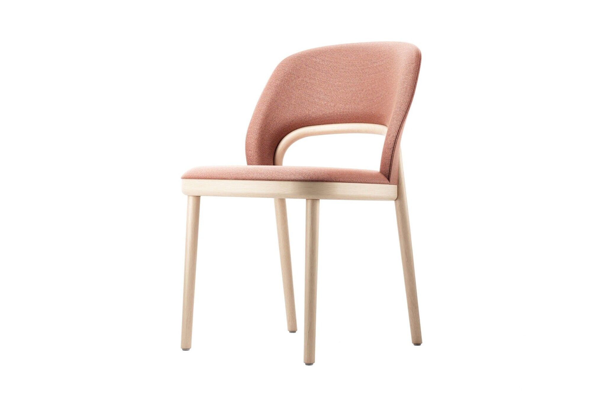 Het frame van de stoel heeft vier poten en is van massief beuken naturel of gebeitst.