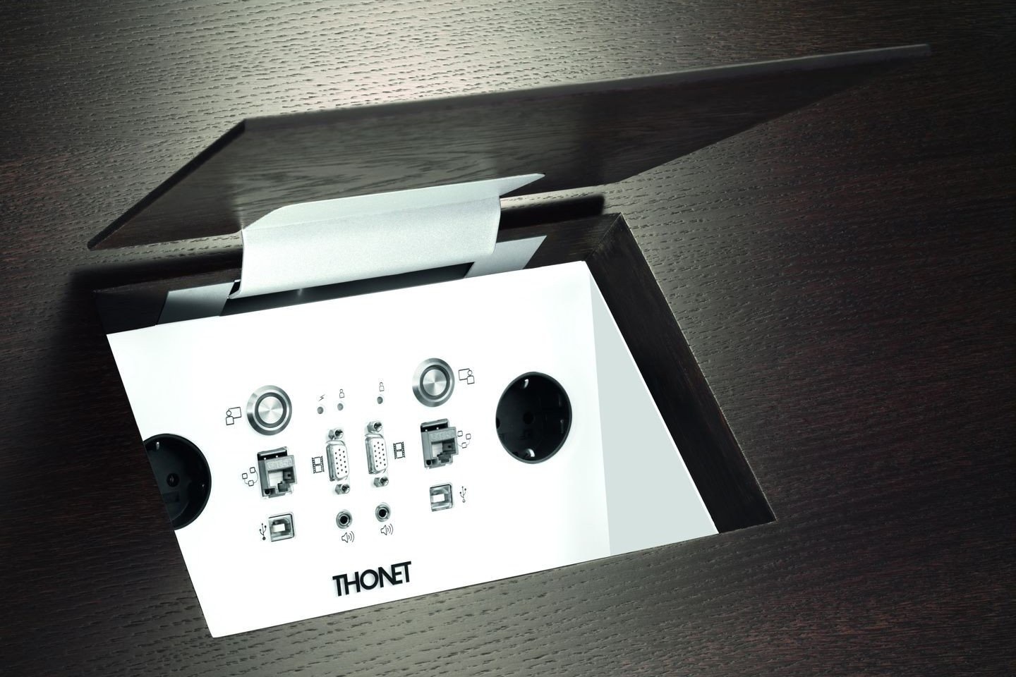 De tafelbladen van gefineerd spaanplaat zijn te verkrijgen in ahorn, beuken, essen, black cherry, eiken of walnoot. Deze zijn ook in ThonetDur® verkrijgbaar. De afschermpanelen zijn gemaakt van hout of geperforeerde metaalplaat. De tafelpoten (afzonderlijke poot of T-poot) zijn van gepolijst, geëloxeerd aluminium of van massief hout, passend bij het gefineerde tafelblad. A1700 en A1700 Evolution vergadertafels kunnen worden voorzien van mediatechniek die is afgestemd op de behoefte.