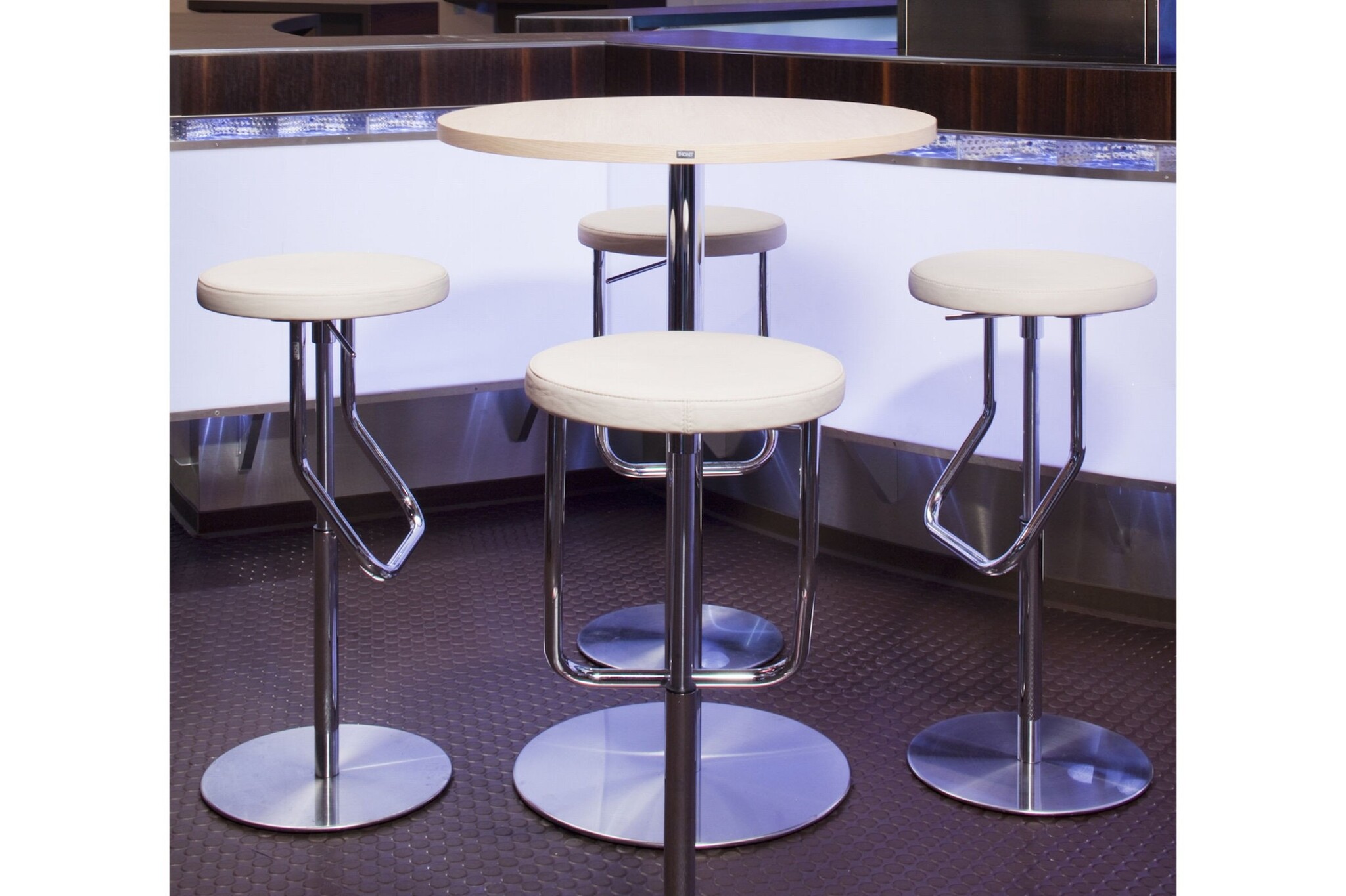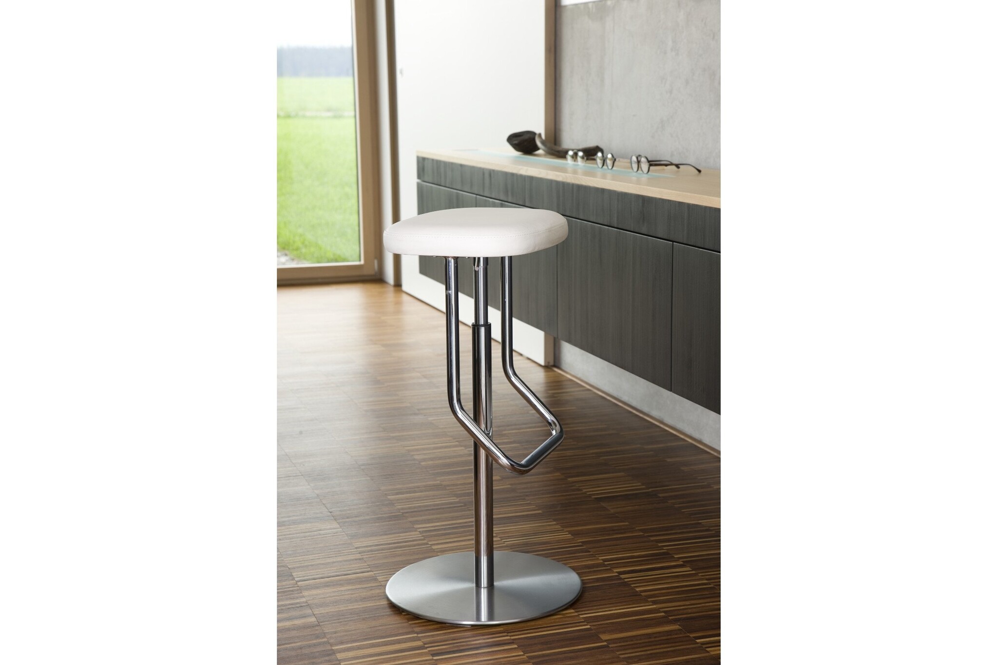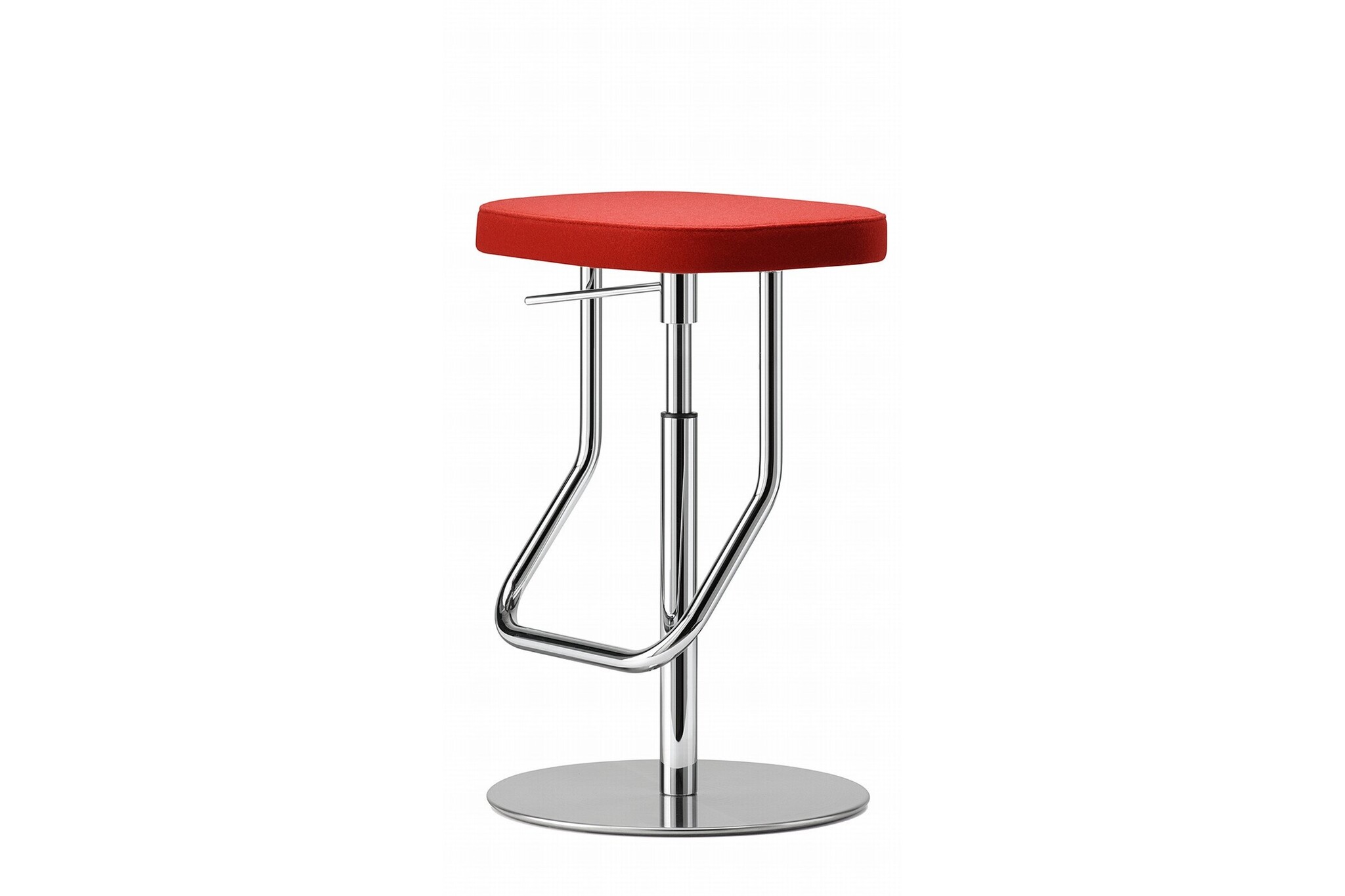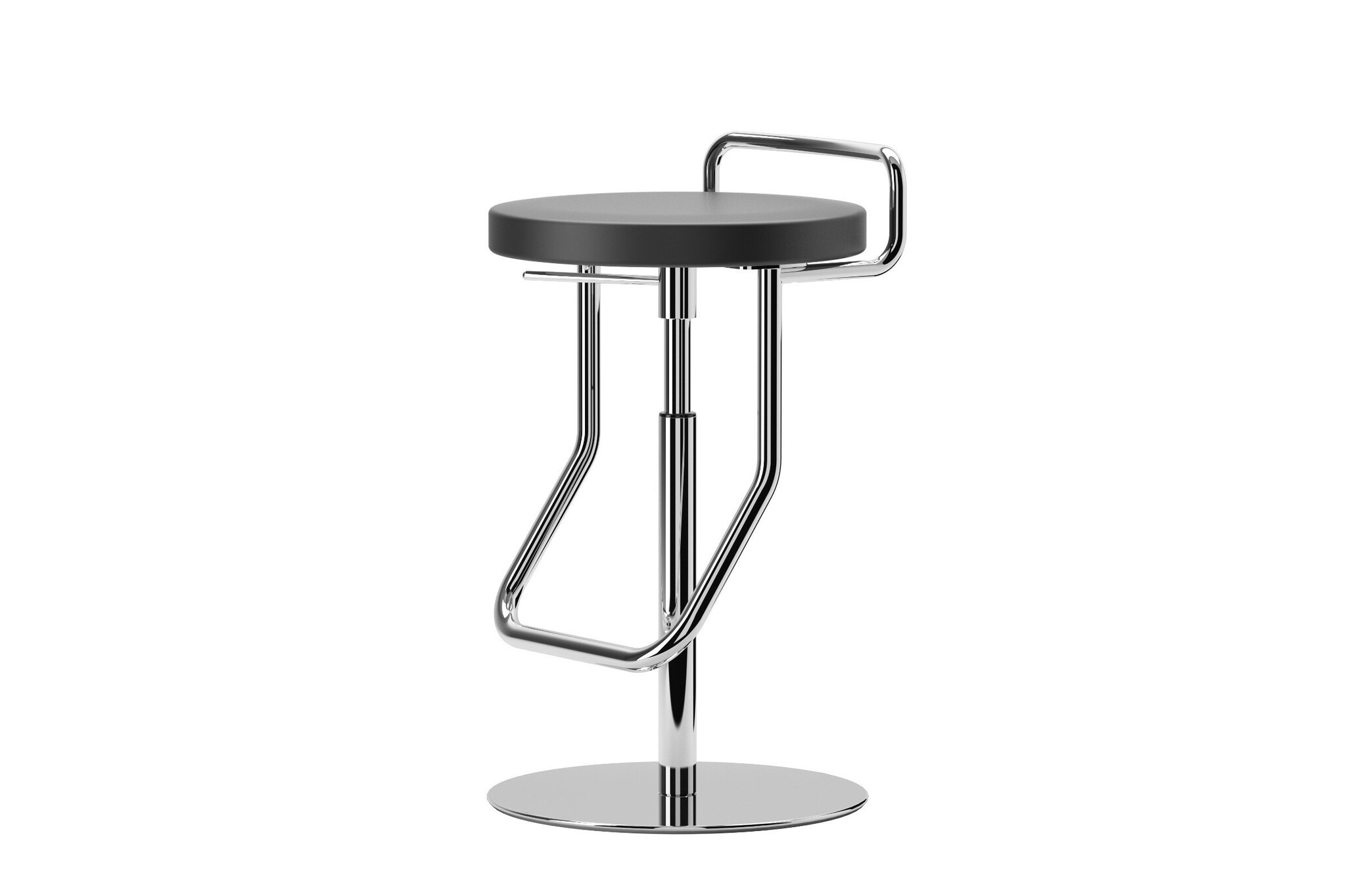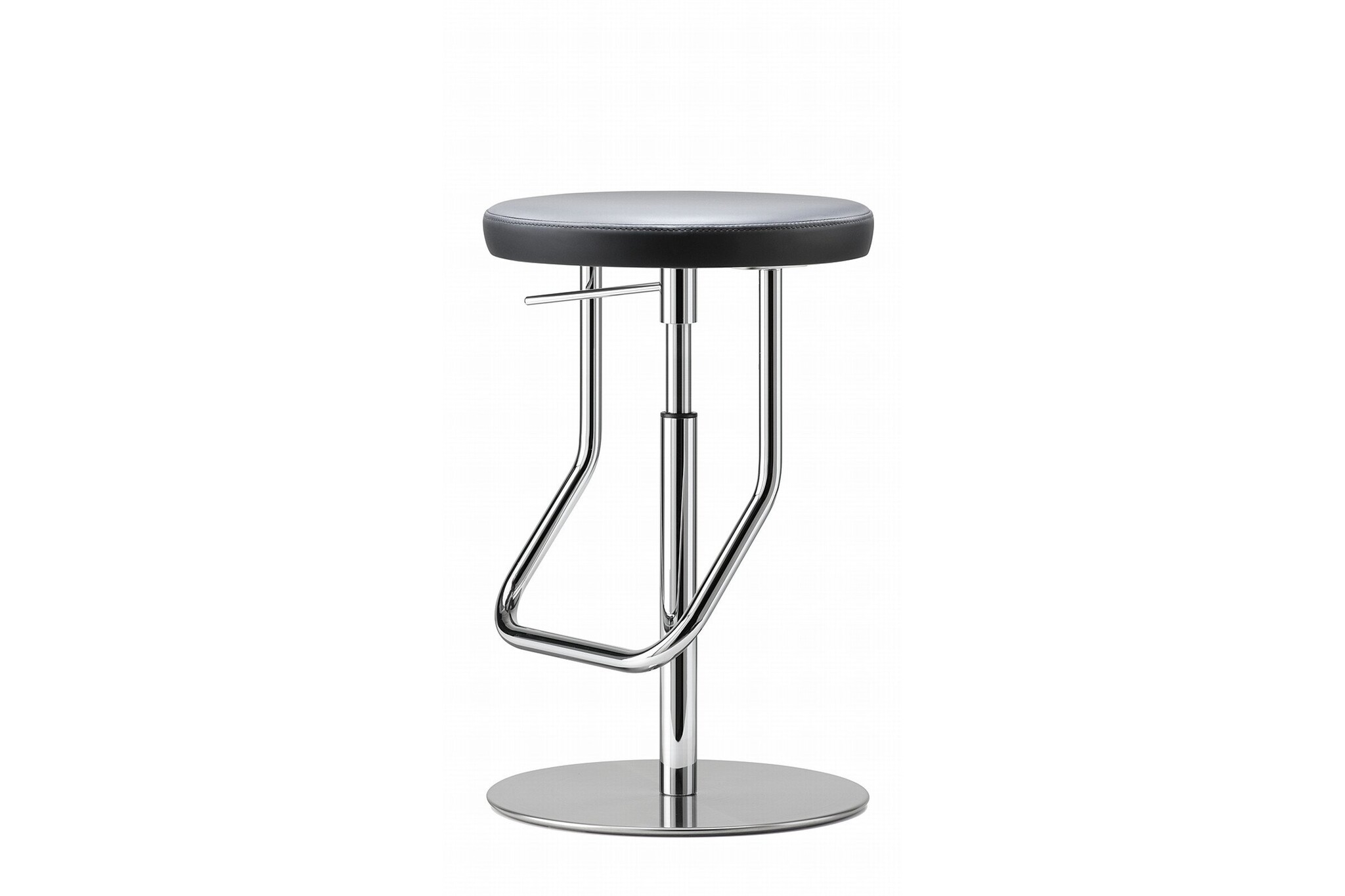 Thonet S 123 Barkruk met gasveer hoogte instelling. Zowel leverbaar met een ronde als ovale zitting Zitting gestoffeerd leverbaar in stof en leer Zithoogte vari�rend van 57,5 tot 83,5 cm. Kruk is voorzien van voetbeugel. Uitvoering chroom en matchroom.