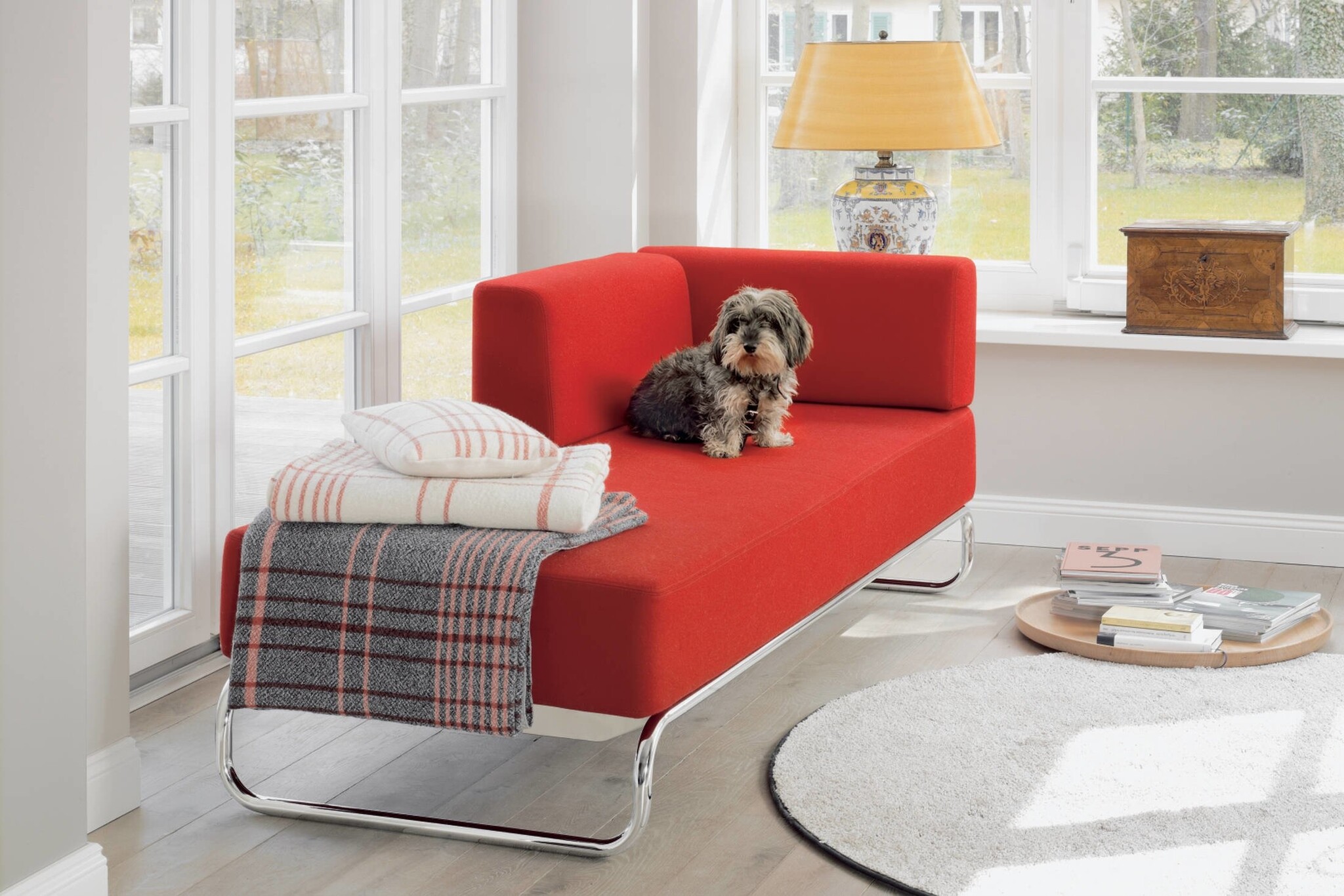 Thonet S5000 banken zijn multifunctioneel. De modulaire banken, bestaande uit een basiselement met onderstel van stalen buizen, en lage of hoge beklede leuningelementen. De beugels van de leuningen worden met een inbussleutel in de basis vast geschroefd. Zo bestaat die veelzijdige programma uit een chaise lounge, banken en fauteuils. De S5000 bank is bekleedt met een hoes is het stof of leder. Optioneel kan het stalenbuisframe voorzien worden van glijders van vilt of kunsstof.