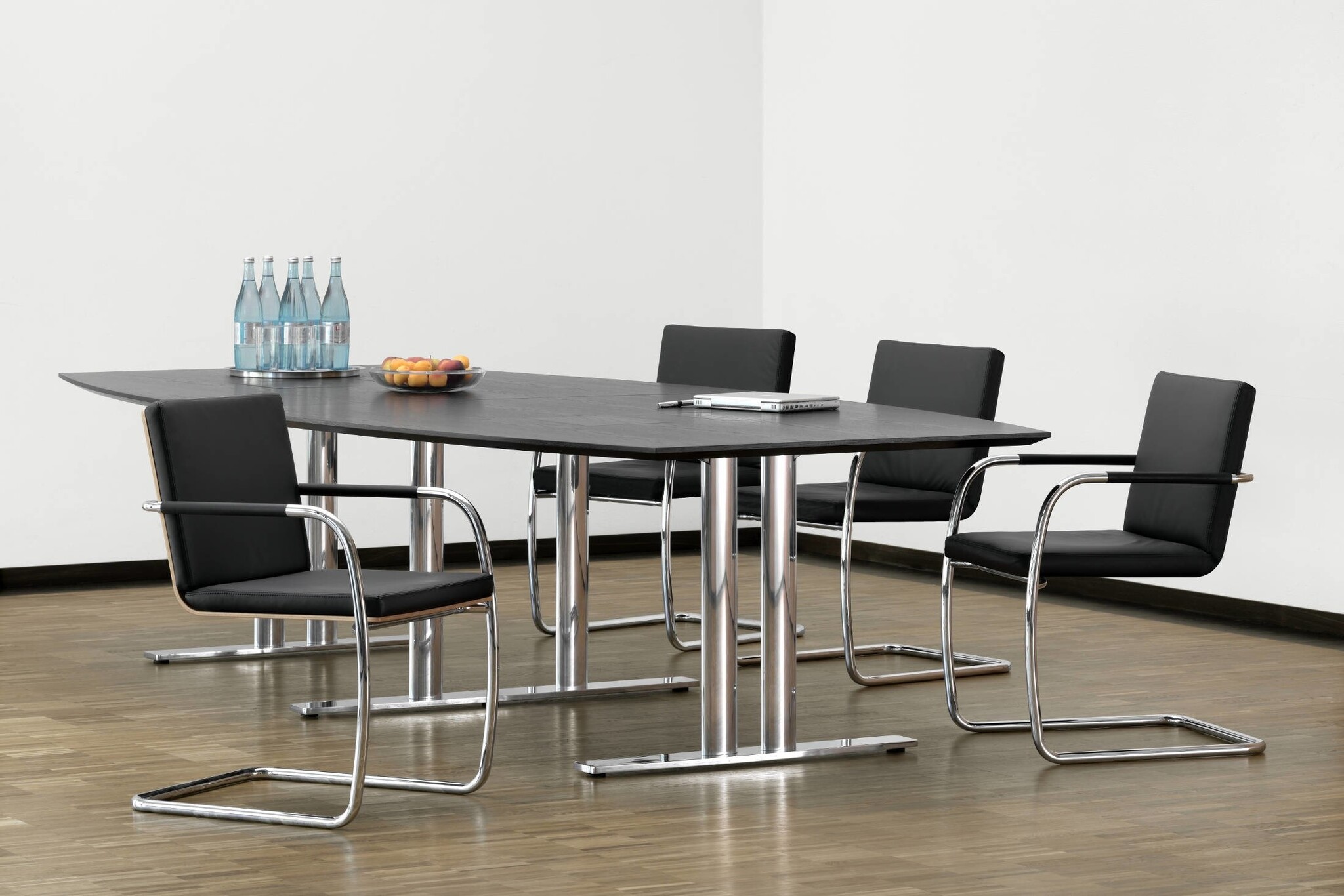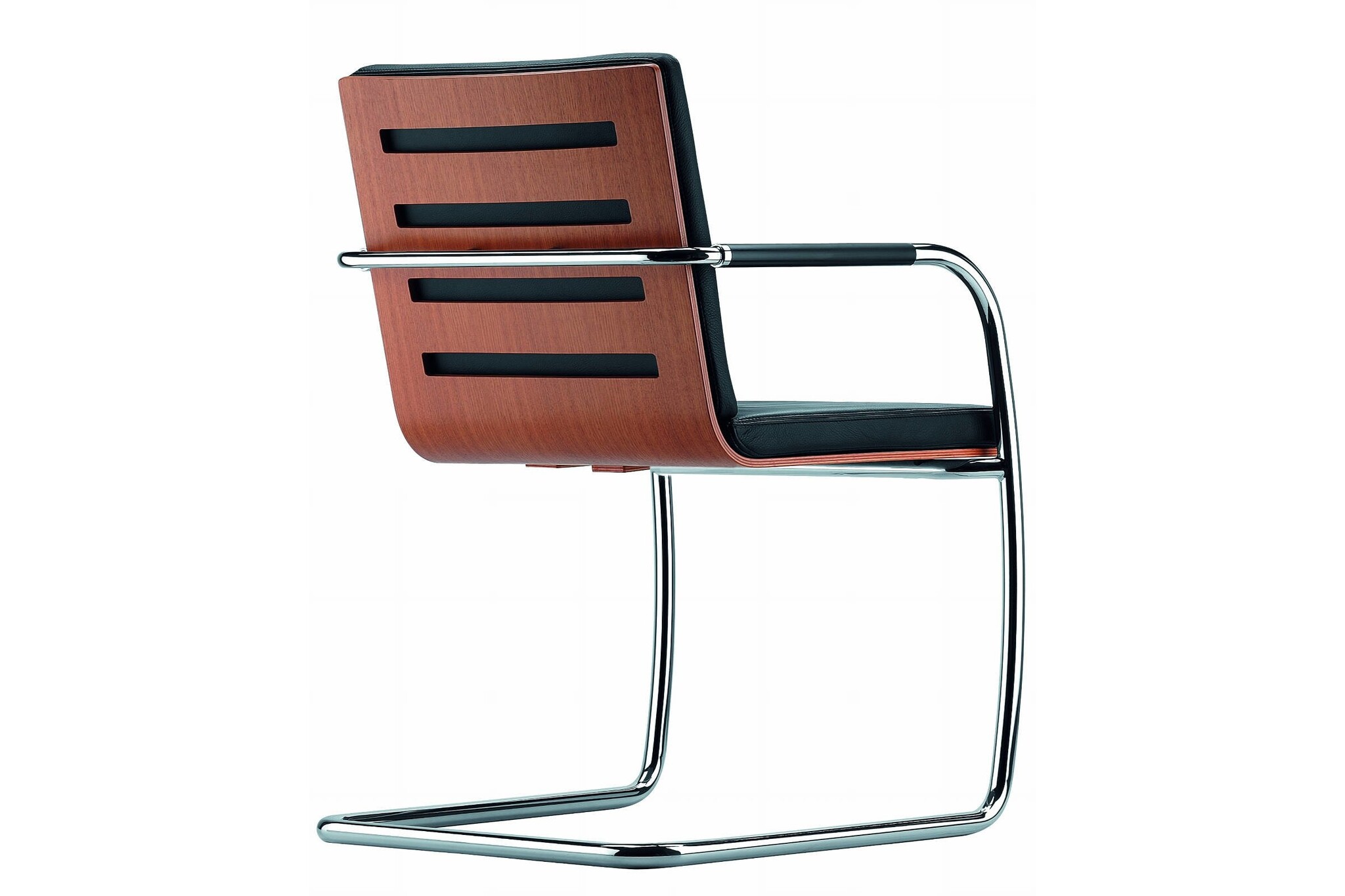 Thonet S61: slede vergaderstoel met hogerugleuning, beuken gebeitst.