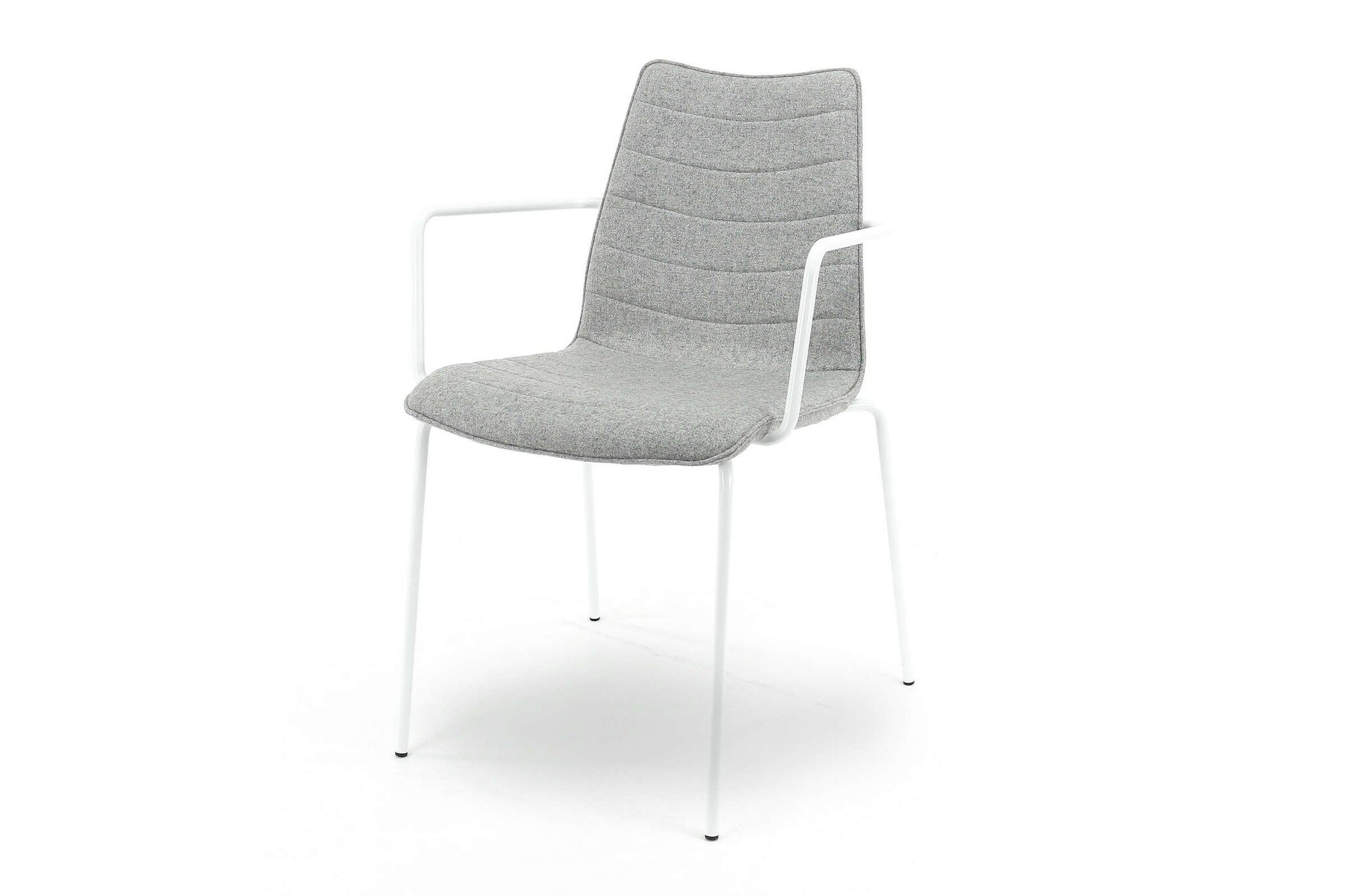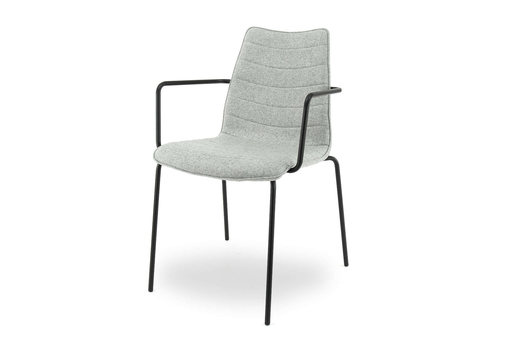 Deze moderne slanke Tint 4-Poots Vergaderstoel Vilt met Armleggers is een toonbeeld van minimalisme, de vergaderstoel is een rustig uitziend lichtgewicht. Makkelijk te verplaatsen en zo op te stappelen in een hoek, zo houdt u genoeg ruimte over in een vergaderruimte als u deze hiernaast voor andere praktijken wilt gebruiken.Door de leuningen kunt u ook voor langere tijd deze Tint 4-Poots Vergaderstoel Vilt met Armleggers gebruiken, deze geven u onderarmen namelijk steun waardoor u uw schouders minder zult belasten. Doordat de stoel volledig gestoffeerd is, zorgt deze vergaderstoel ervoor dat u veel comfortabeler zit dan hoe deze eruit ziet, ook de gestreepte middenbanen laten het er niet alleen stijlvol uit zien maar deze laten het ook breder ogen. De stoel is in de stof uitvoeringen Mirage (zwart) en in een viltstof Fenice (lichtgrijs en middengrijs). Deze geven een chique en warme uitstraling.