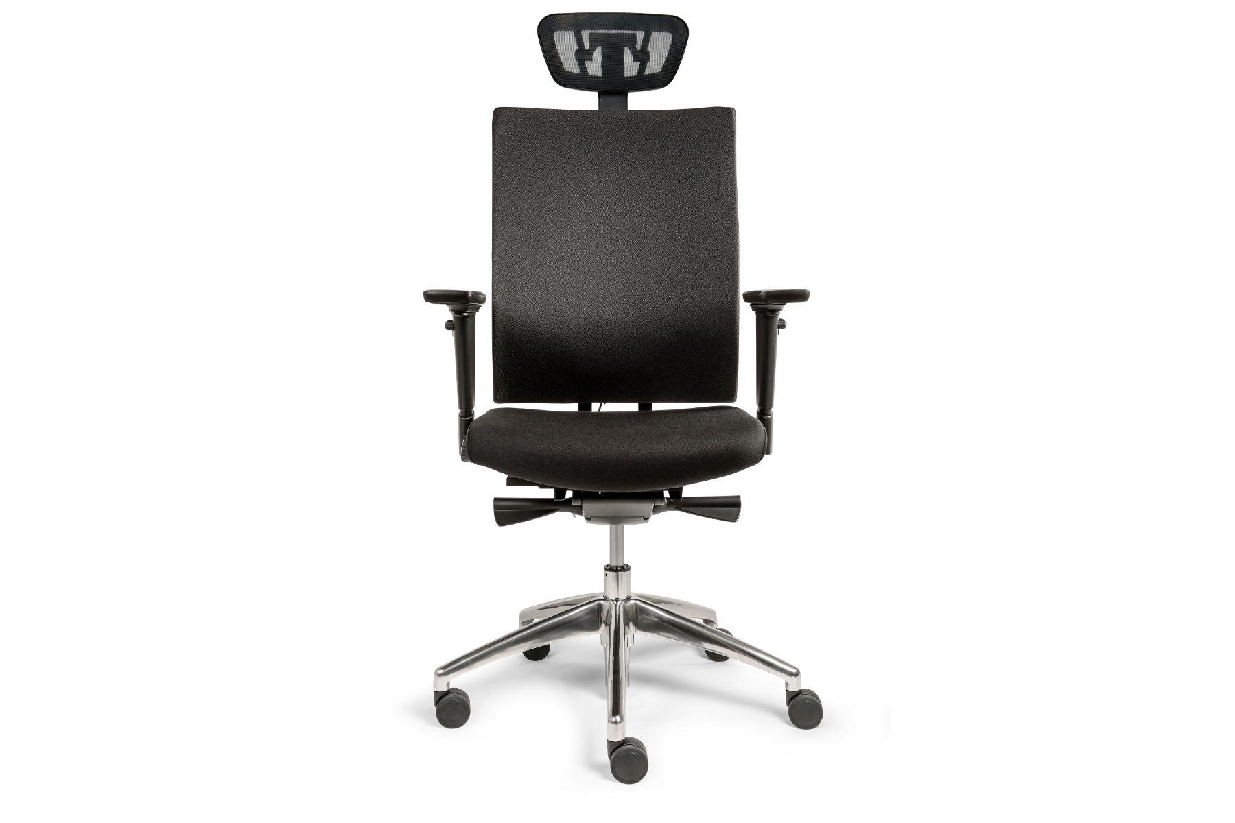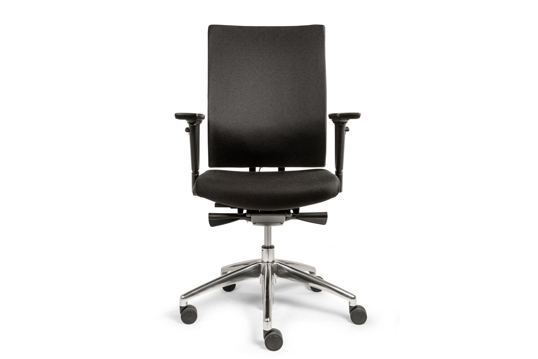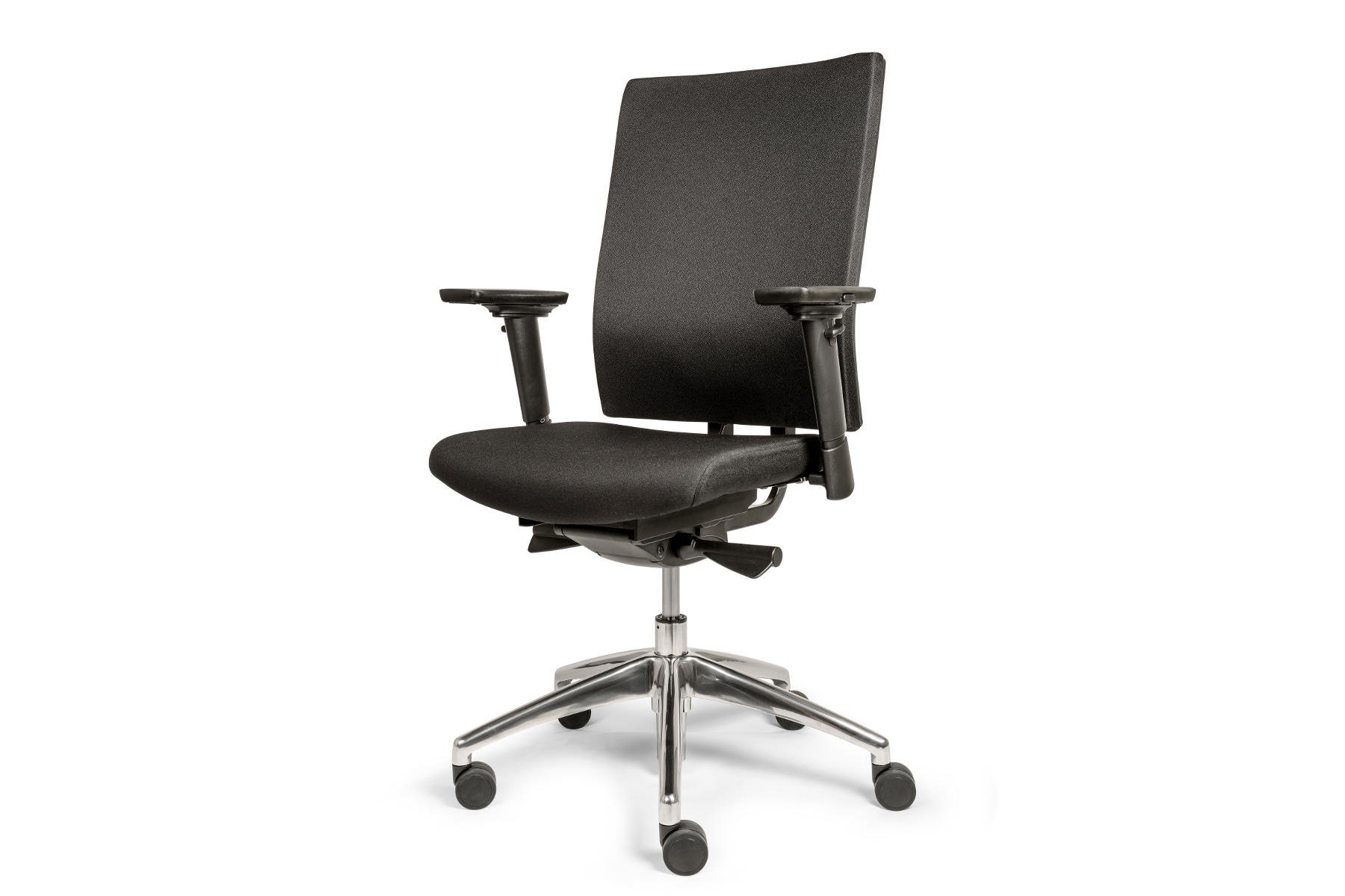 De Tint Premium Comfort bureaustoel is volledig gestoffeerd van de stof Oasis (zwart). Optioneel te bekleden in andere kleuren stof, in leer of kunstleer. Het onderstel is aluminium gepolijst en de armleggers zijn van kunststof.