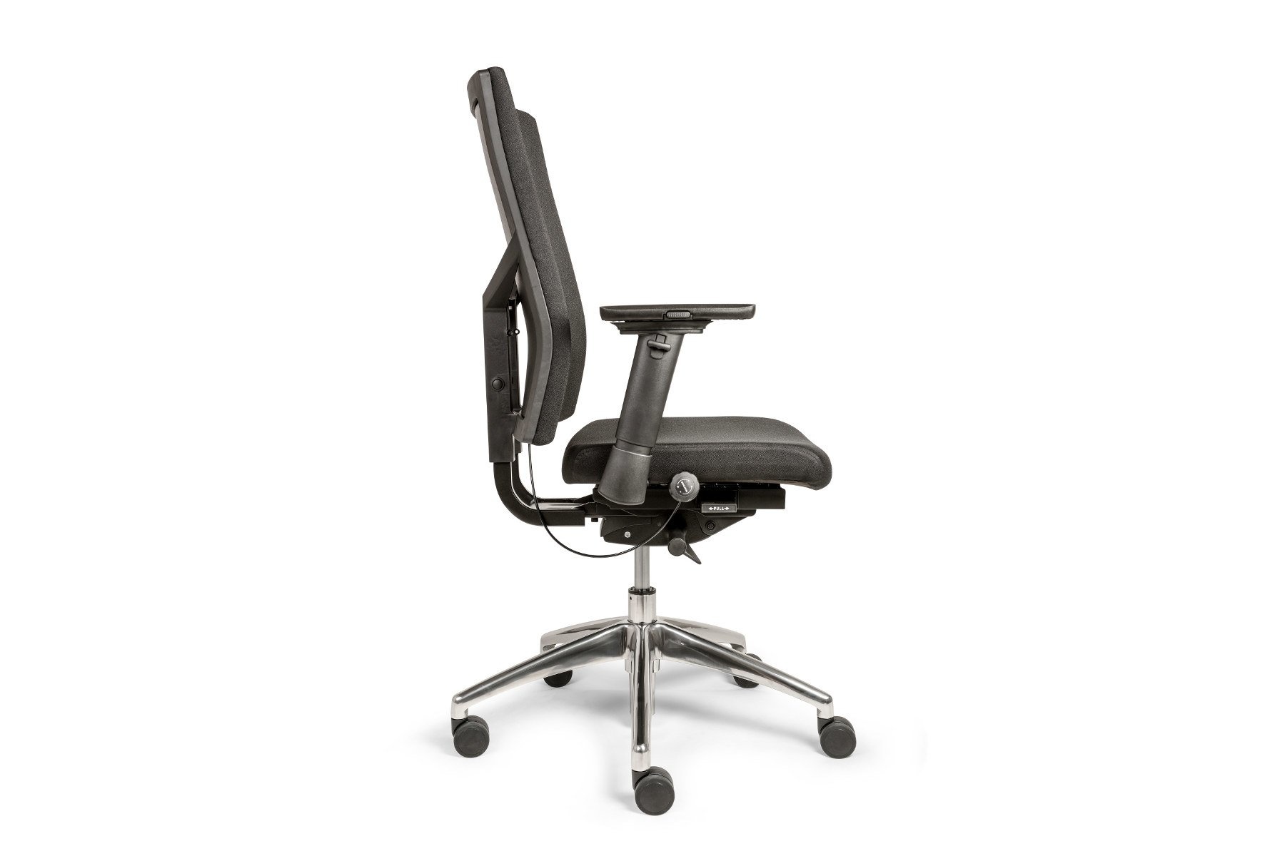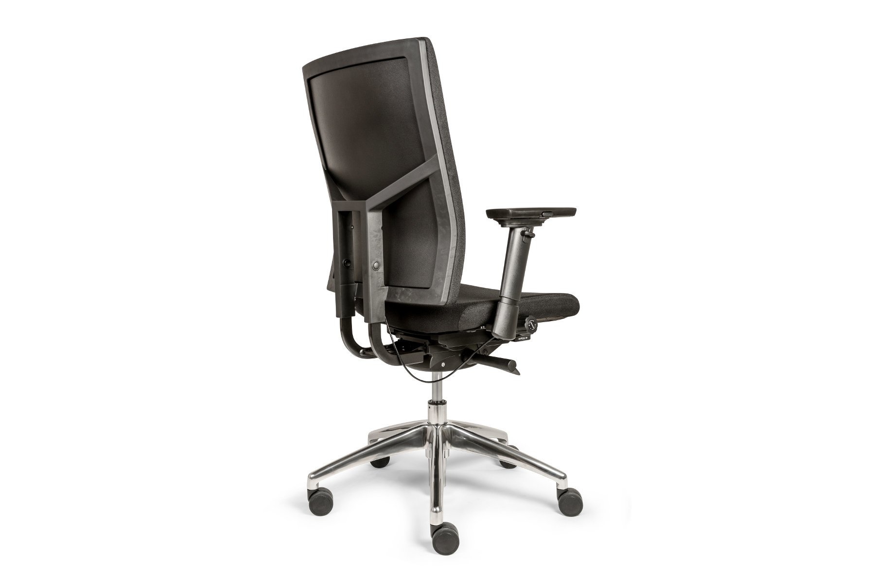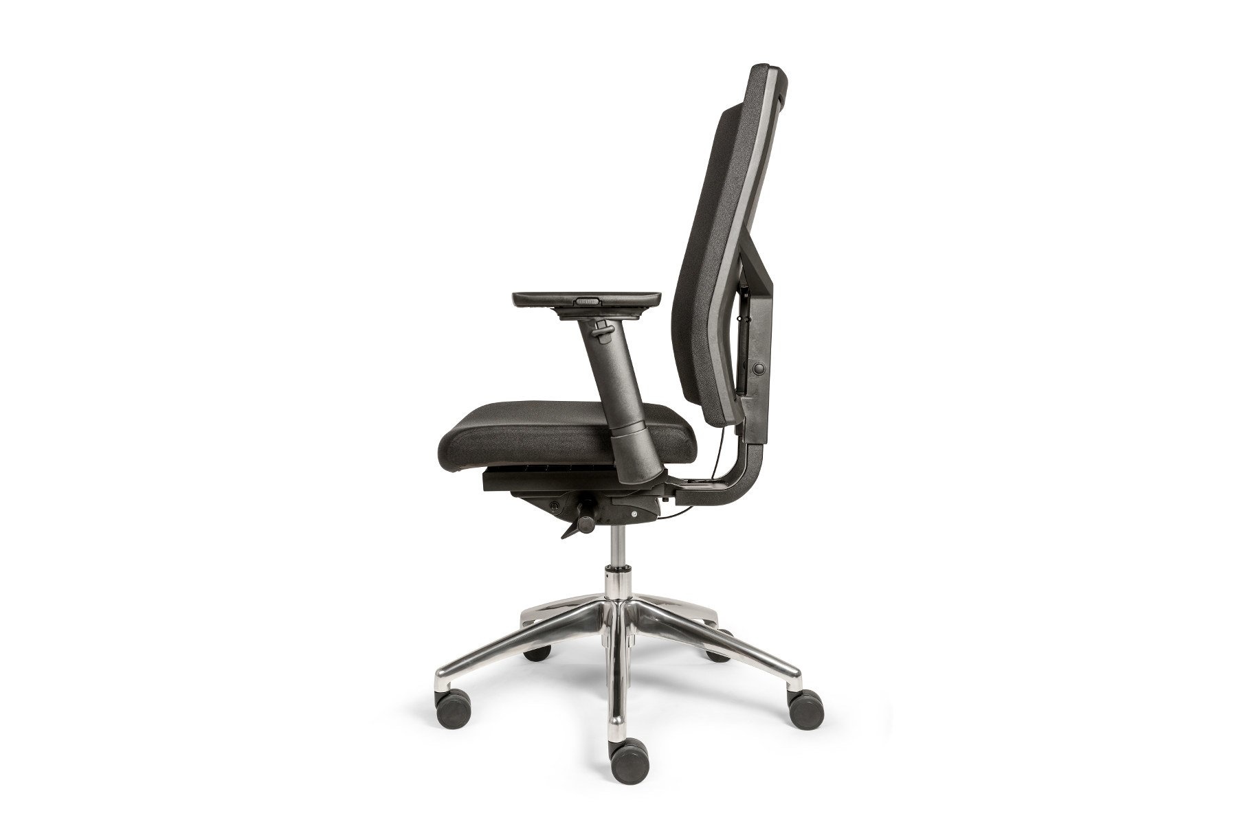 De Tint Premium Comfort bureaustoel is volledig gestoffeerd van de stof Oasis (zwart). Optioneel te bekleden in andere kleuren stof, in leer of kunstleer. Het onderstel is aluminium gepolijst en de armleggers zijn van kunststof.