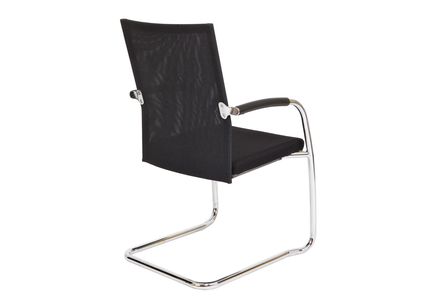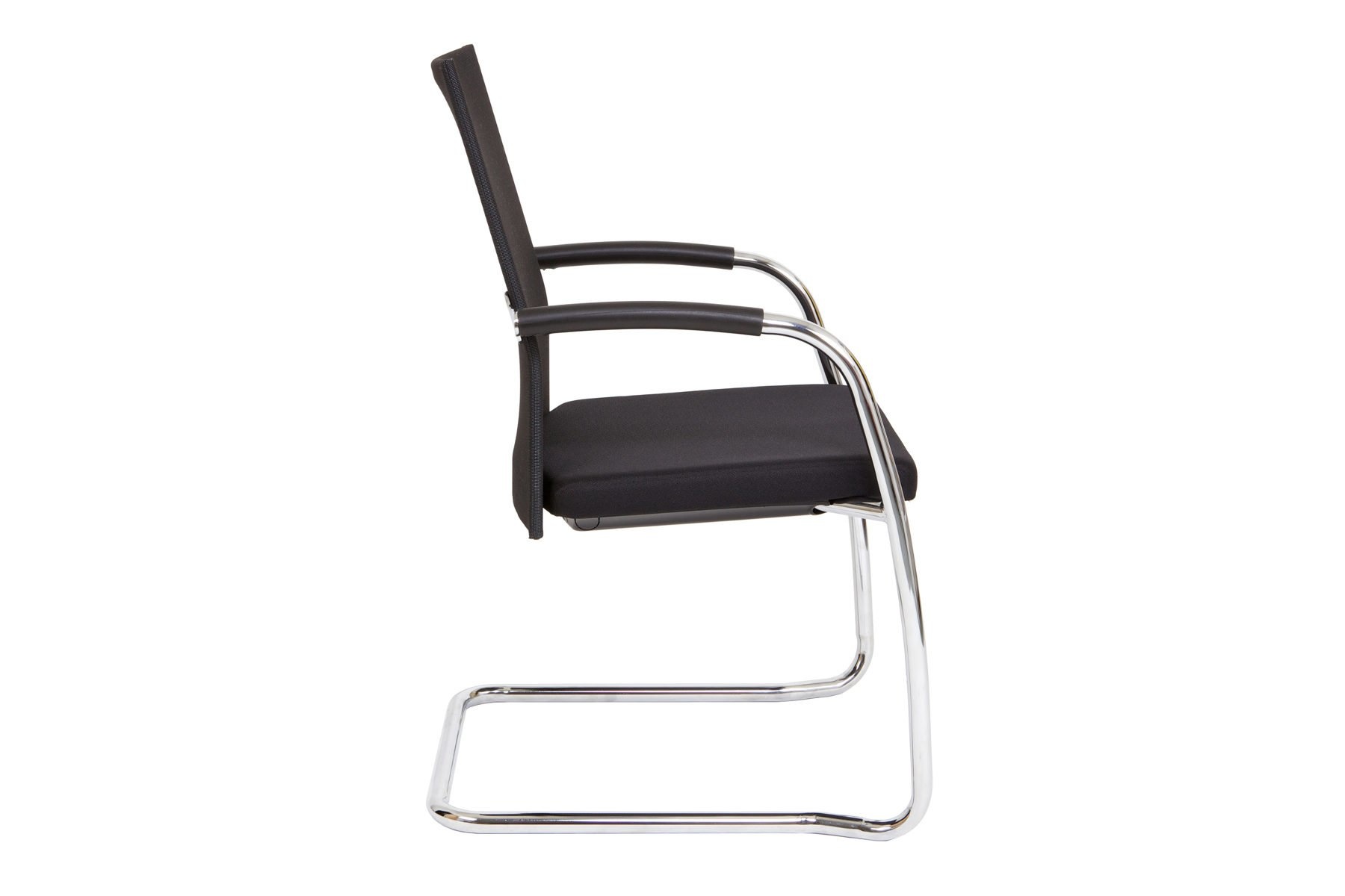 De zitting is in zwarte stof met stiknaden en de rug is in netweave zwart. Het frame is gemaakt van chroom.