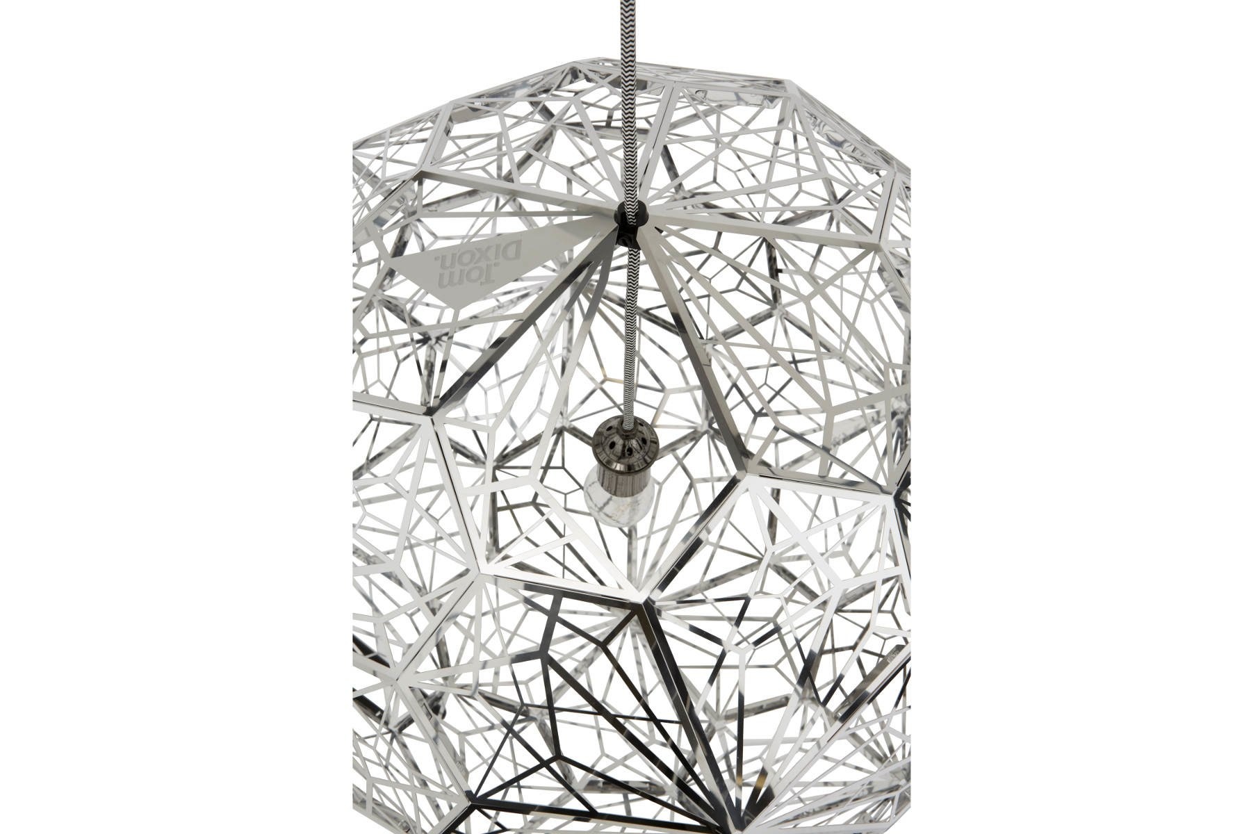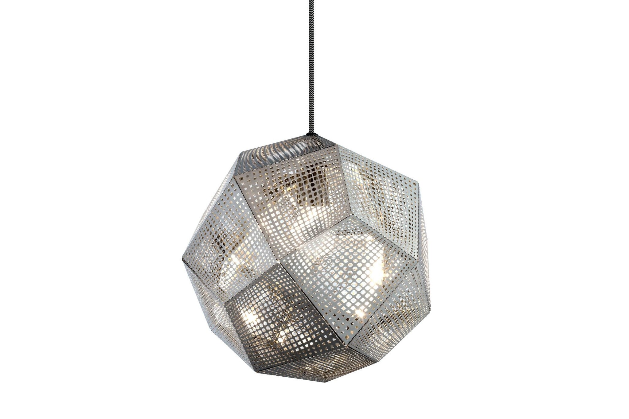 Zoals de naam Etch al zegt, is de hanglamp gemaakt met een industrieel proces waarin de oppervlakken gevormd zijn uit platen van geëtste metaal en vervolgens zijn deze platen ondergedompeld in zuur om zo de belichte delen op te lossen. De Etch hanglamp van Tom Dixon is opgebouwd uit flinterdunne mathematische vlakken.