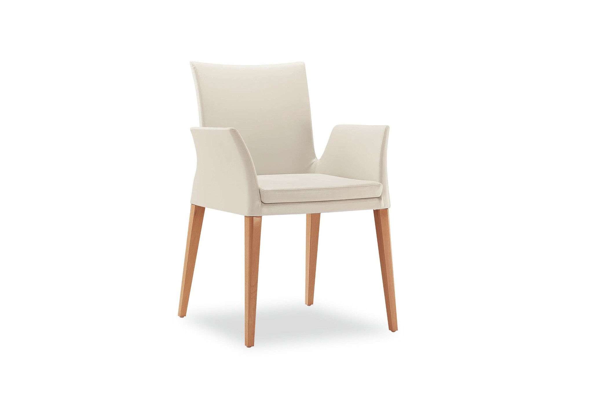 De Ensemble van Tonon heeft een gestoffeerde zitting en rugleuning, wat deze vergaderstoel zacht en comfortabel maakt. De poten zijn verkrijgbaar in mat chroom of hout.