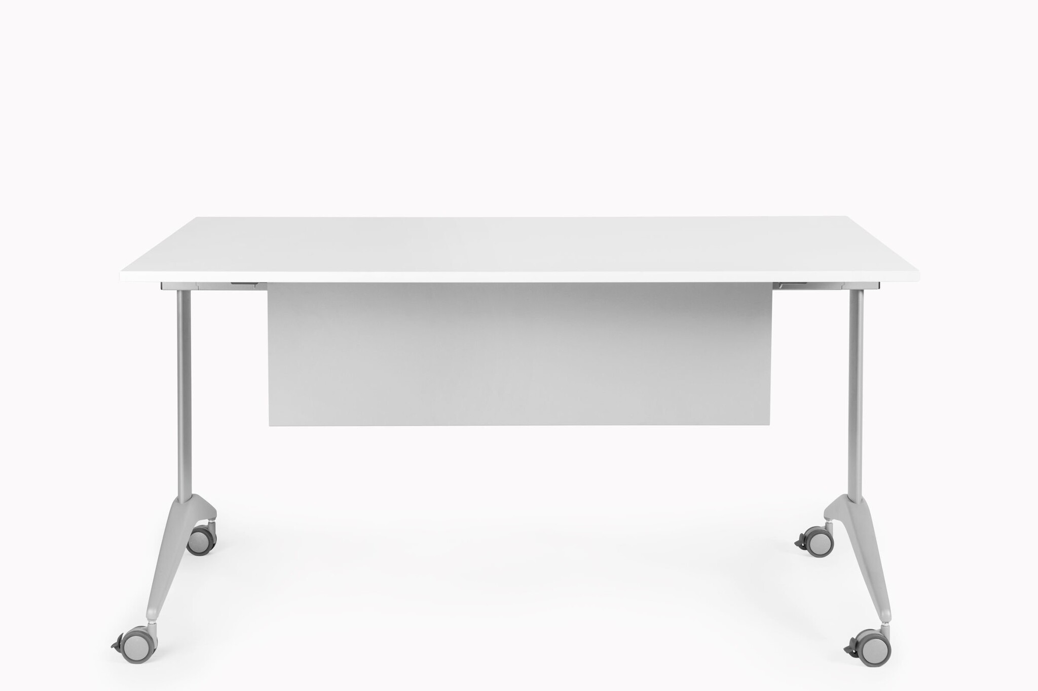 De Trilogy Faro is een kanteltafel met een handig systeem om het tafelblad gemakkelijk in verticale stand te zetten. Een slim, stevig en functioneel product, ontworpen voor kantoren en werkomgevingen waar ruimtebesparing nodig is. Het tafelblad kan ingeklapt worden in verticale positie voor compacte opberging wanneer het niet in gebruik is. De Trilogy Faro is voorzien van vergrendelbare wielen voor het gemakkelijk verplaatsen, zodat elk gewenste opstelling mogelijk is.