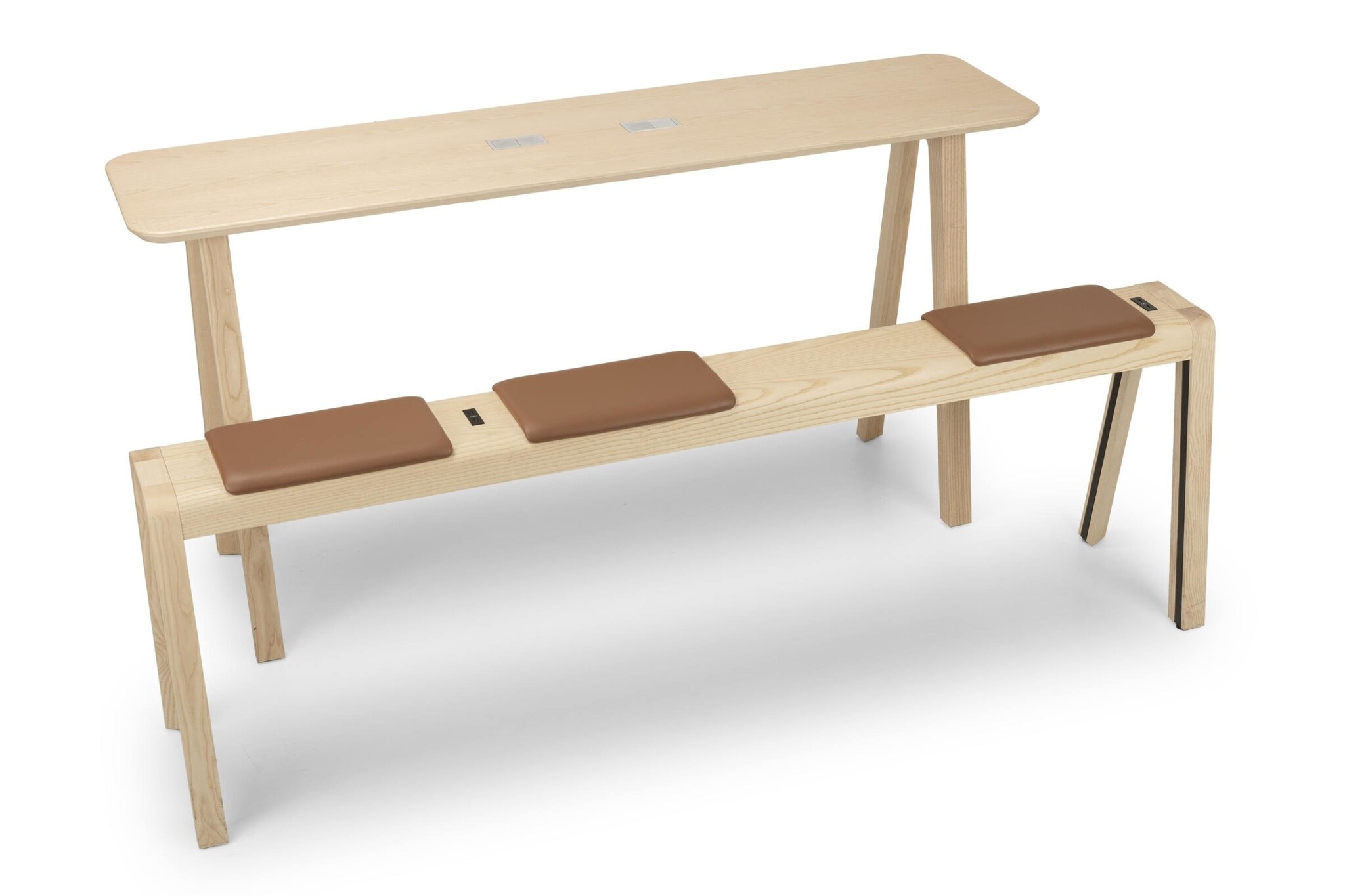 De True Design E-Quo bank heeft een opvallende zithoogte van 70 cm. Hierdoor zit de tafel eigenlijk als een kruk en past mooi bij de hoge tafel uit dezelfde E-Quo collectie. Uiteraard is de bank ook los te gebruiken en kunt u kiezen voor een houten uitvoering of met gestoffeerde zitplekken (3 of 4). Bovendien is het mogelijk om tablets of telefoons op te laden met de ingebouwde USB-oplaadpunten. Kenmerken van de True Design E-Quo bank