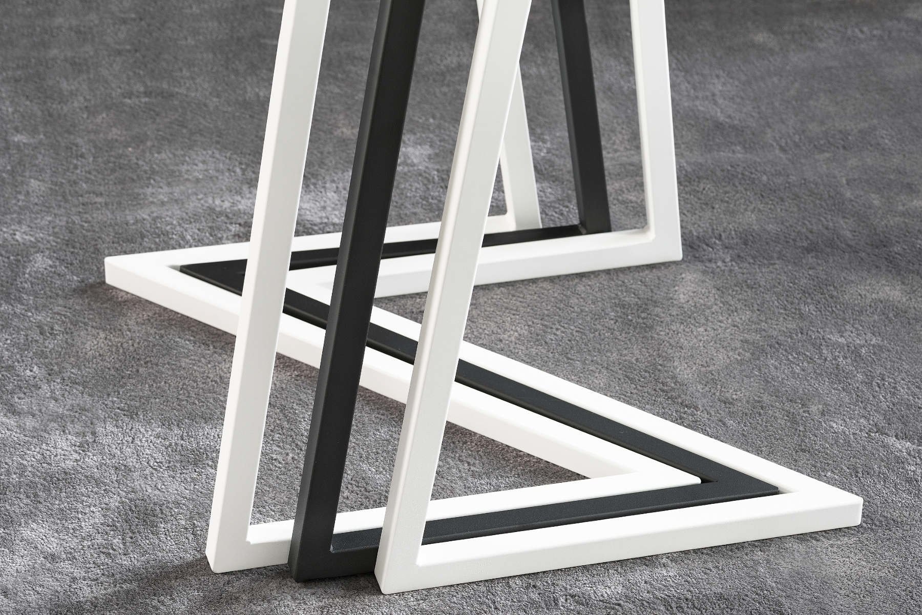 Frame en voetplaat: in zwarte (van Esch 9311) of witte (van Esch 9310) structuurlak geëpoxeerd staal.