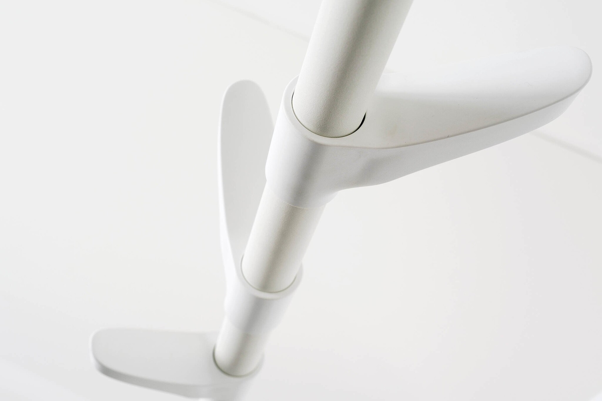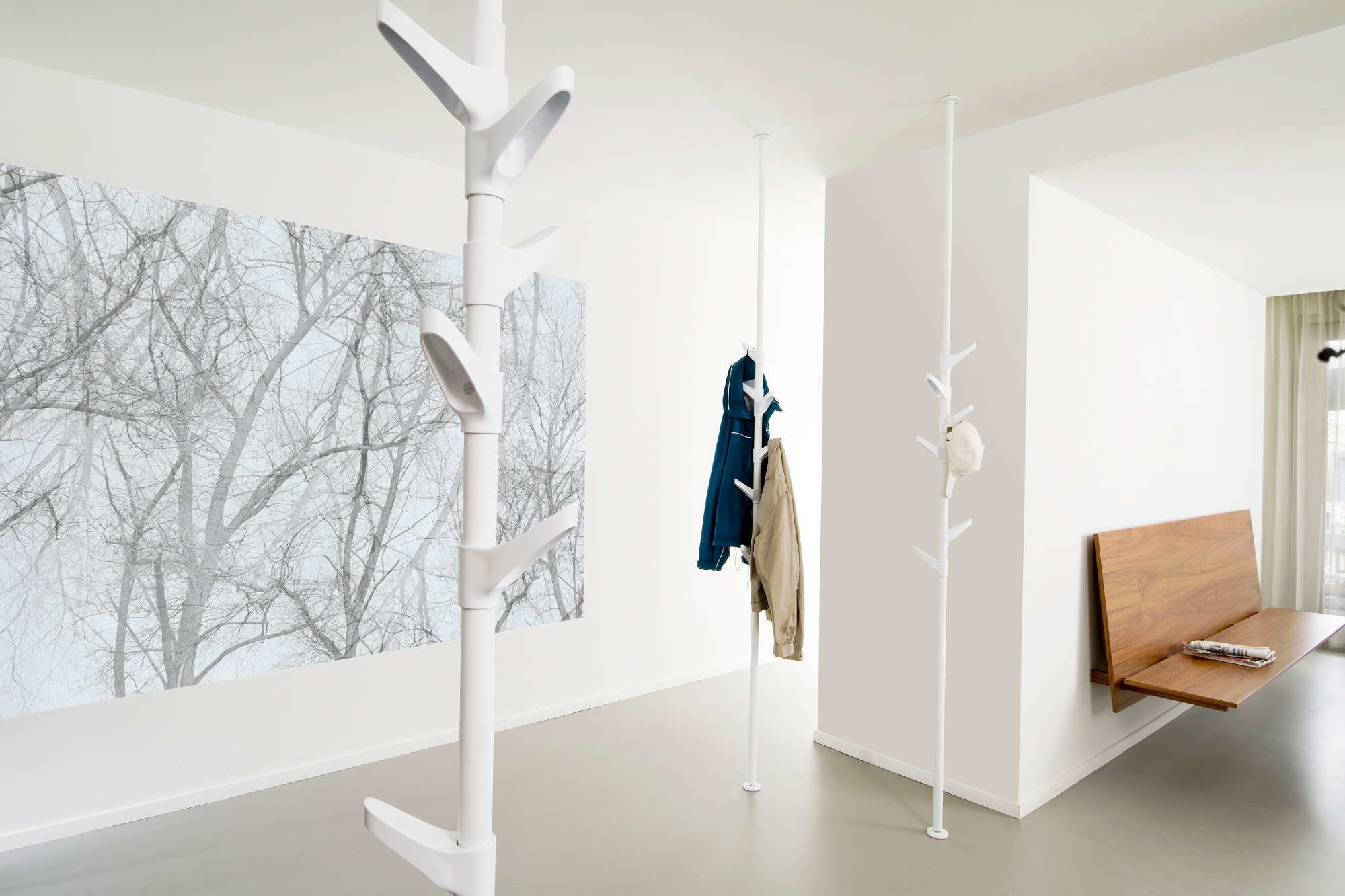 De Slide van Van Esch is een lid uit de Slide familie, de Slide tilt het entree of hal van uw kantoor naar een hoger niveau door zijn verfrissende design. De Van Esch Slide kapstok is een simpel maar uniek idee, het bestaat uit twee betalen buizen, beide hebben een witte poedercoating. Deze buizen zijn in- en uit elkaar te schuiven, hierdoor klem je de Slide tussen de vloer en het plafond (tot een maximum hoogte van 3,40 m).