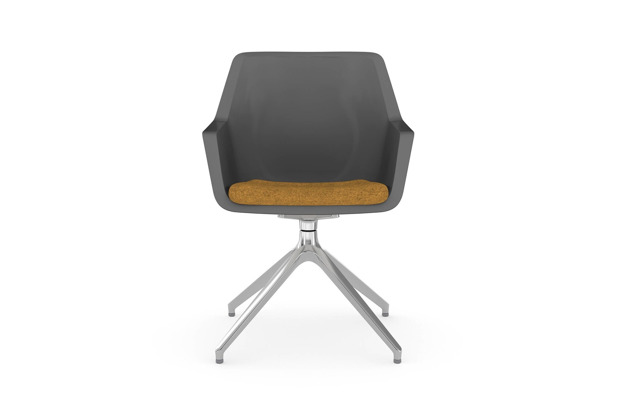 Viasit Repend is een draaibare stoel voor diverse gelegenheden; een gesprek, prettig werken of om even in te ontspannen. De zitschaal is gemaakt van solide polyamide, in hoogglans uitgevoerd. De binnenzijde van de schaal kan voorzien worden van bekleding maar kan ook volledig gestoffeerd worden. De Repend stoel is leverbaar in drie kleuren; rood, zwart of wit. Het onderstel is in gepolijst aluminium of wit gelakt.