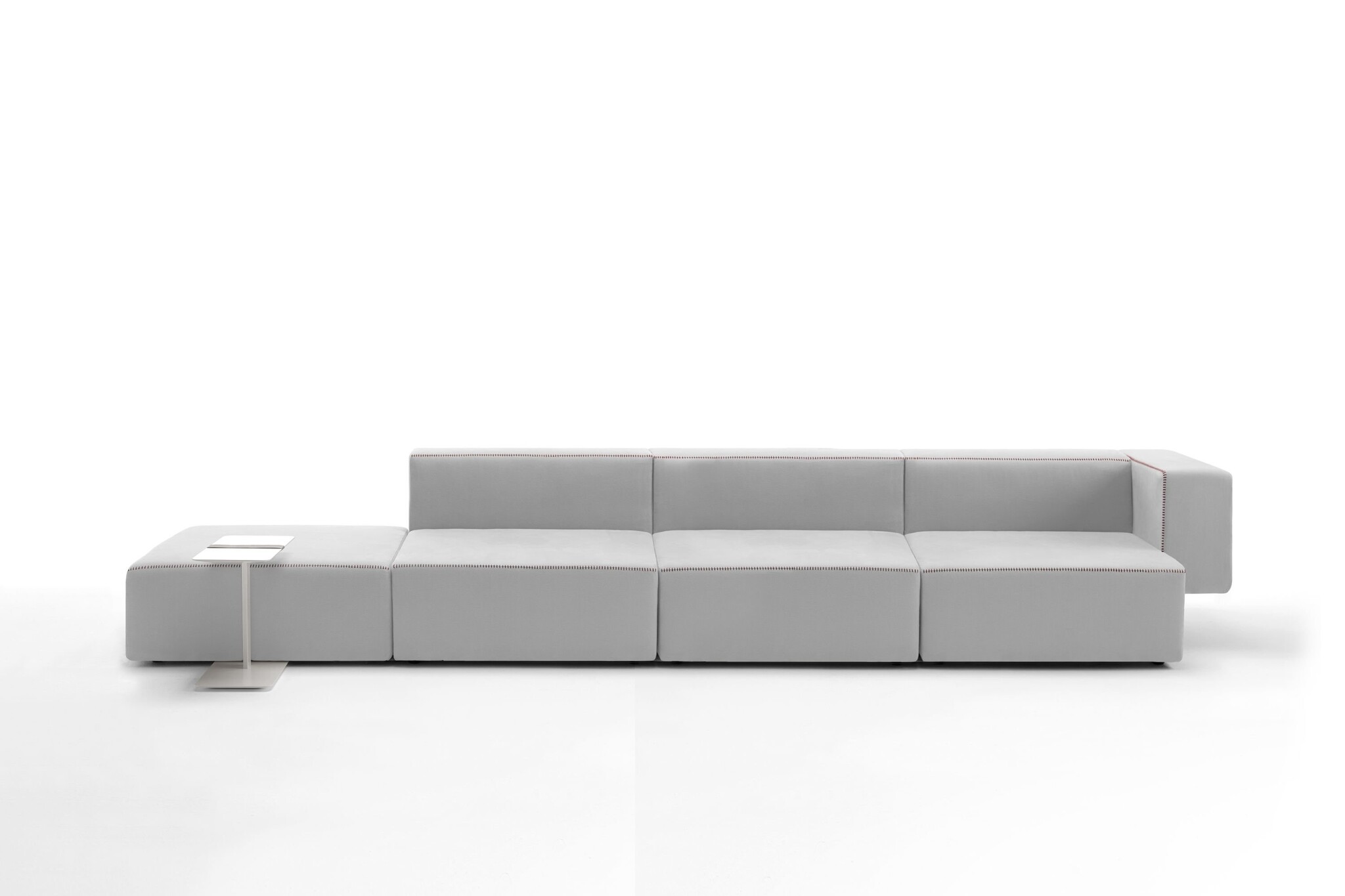 Viccarbe Step modulaire bank ontworpen door Vincent van Duysen. De losse zitelementen zijn eindeloos koppelbaar en zijn verkrijgbaar in de maten 70, 90 of 120 cm. Als extra optie is er bij het Step programma ook een hoekmodule en hocker beschikbaar. De Viccarbe Step is opgebouwd uit massief hout, MDF en bedekt met niet-vervormbare polyurethaanschuim en polyester vezels. De Step sofa kan met vele stofsoorten, waaronder Kvadrat, leder en ecopelle gestoffeerd worden. De naden zijn te stikken in de kleuren; wit, zwart, rood, hemelsblauw, licht grijs, groen, room, karamel en wijn rood.