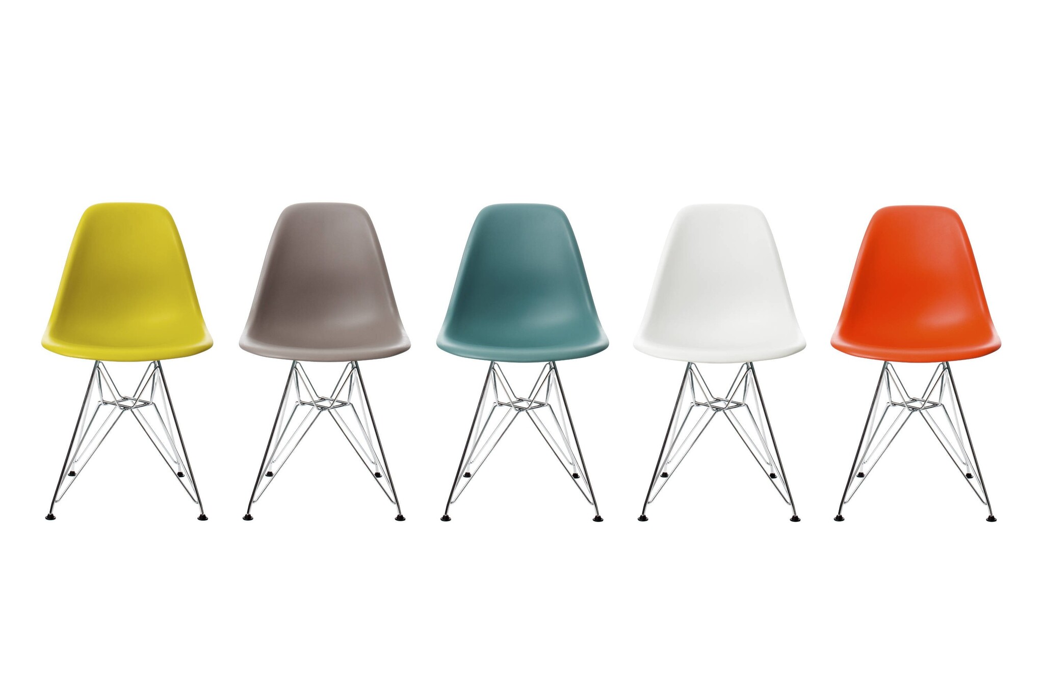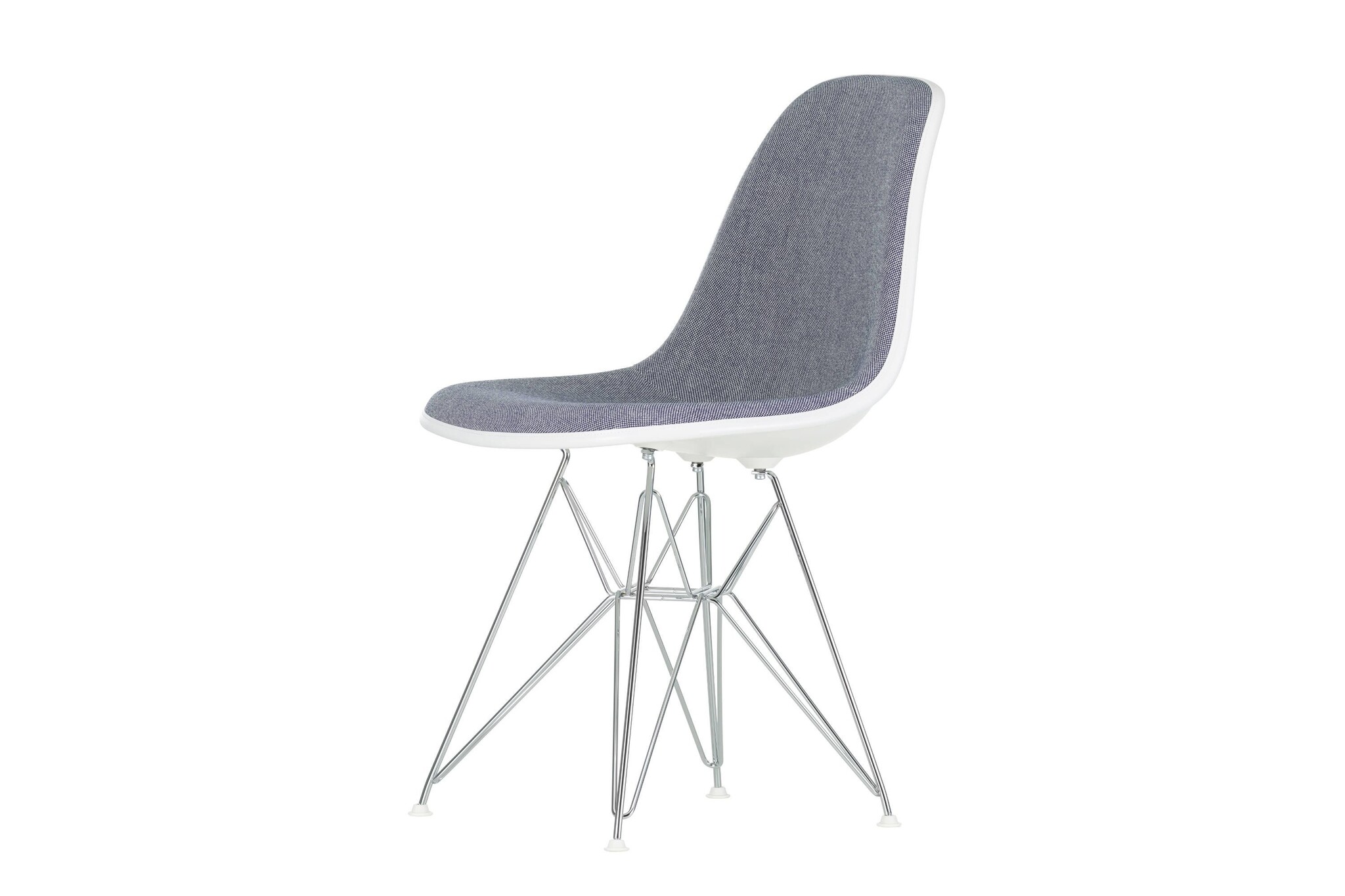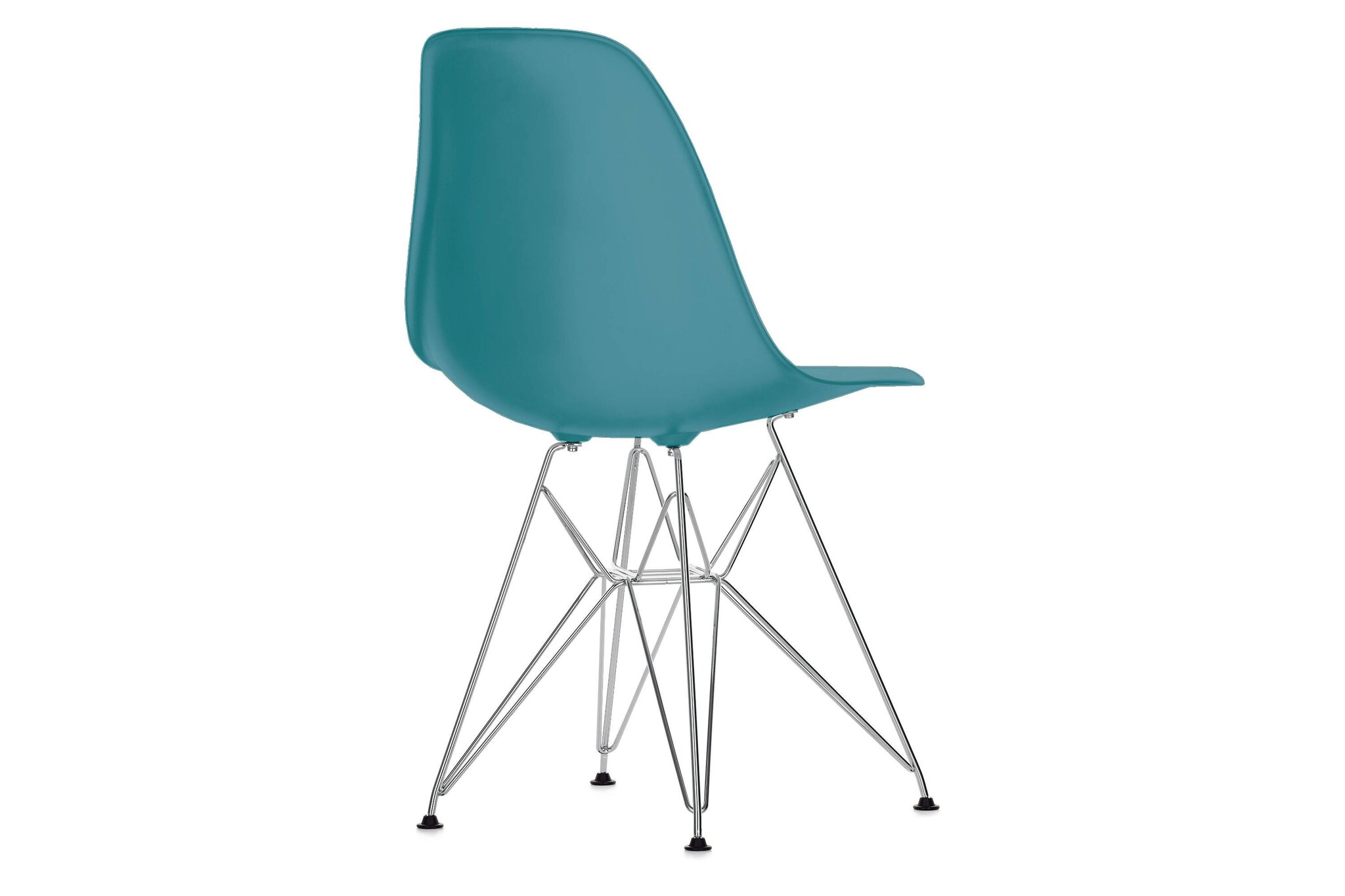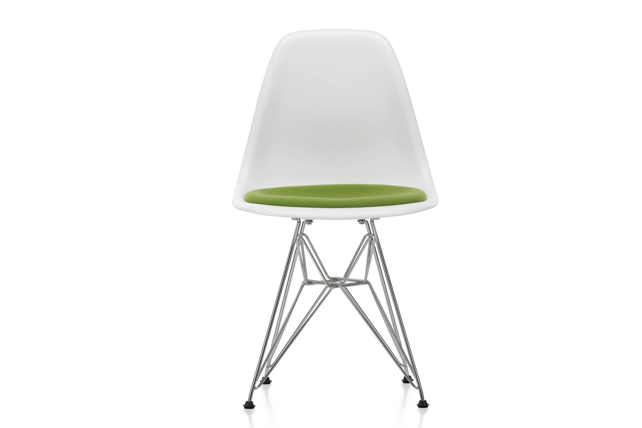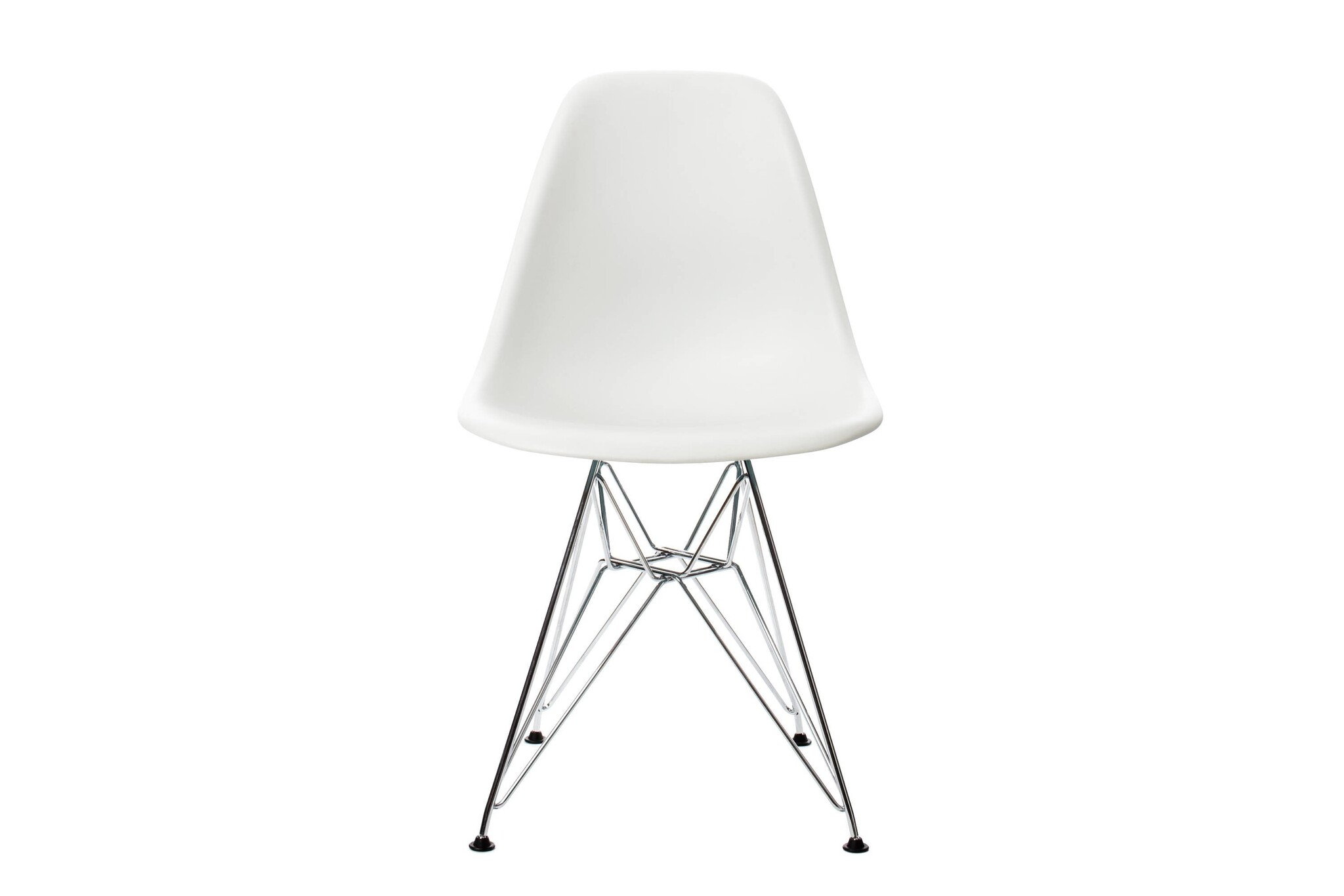 De Vitra stoel heeft een verchroomd draadonderstel (ook wel Eiffeltorenonderstel genoemd) met schoren en is niet stapelbaar.