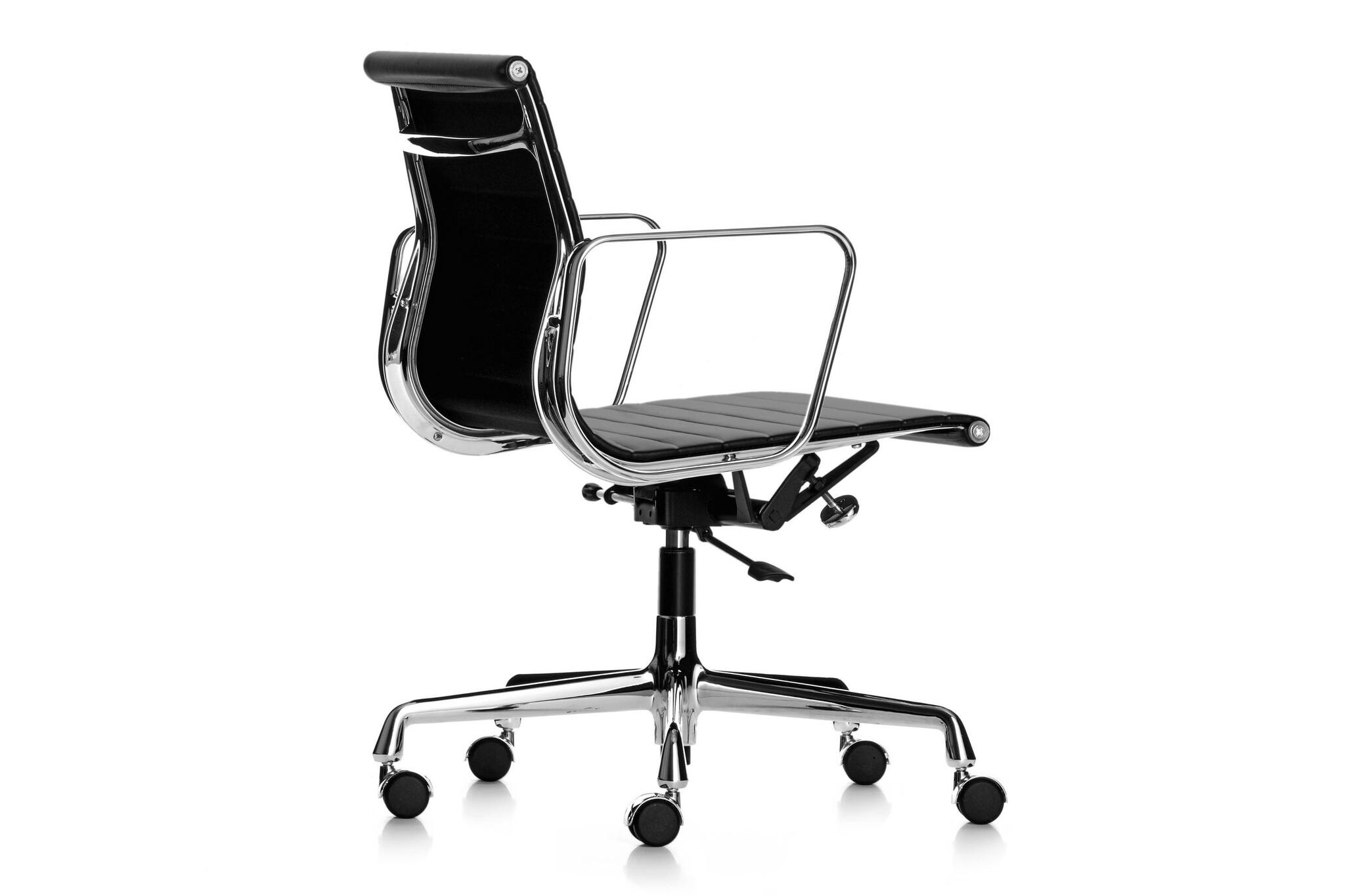 De Vitra EA 117 Eames stoel, biedt optimaal zitcomfort door het kantelmechanisme dat op het gewicht van de gebruiker kan worden ingesteld en is in hoogte verstelbaar door middel van een gaslift.