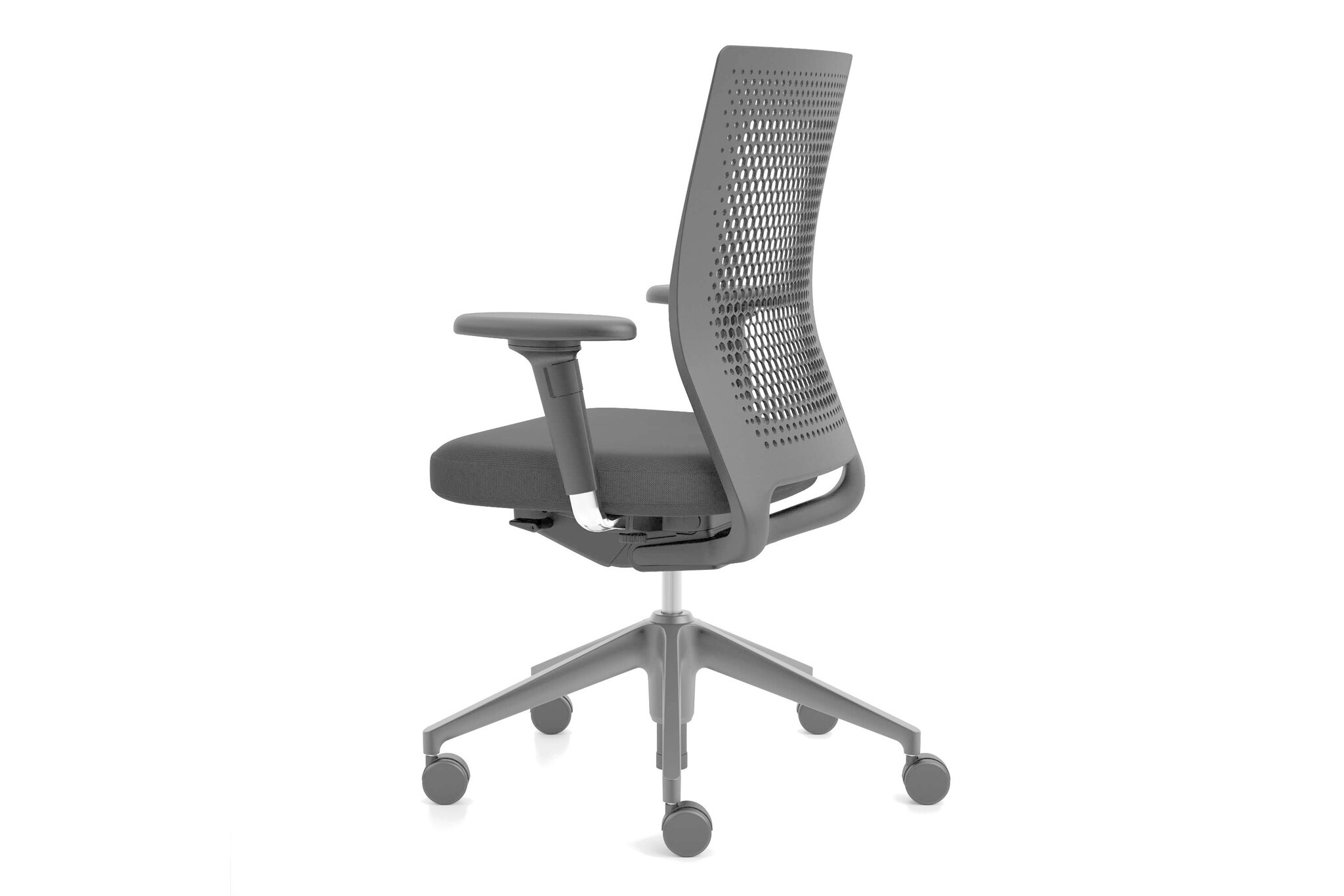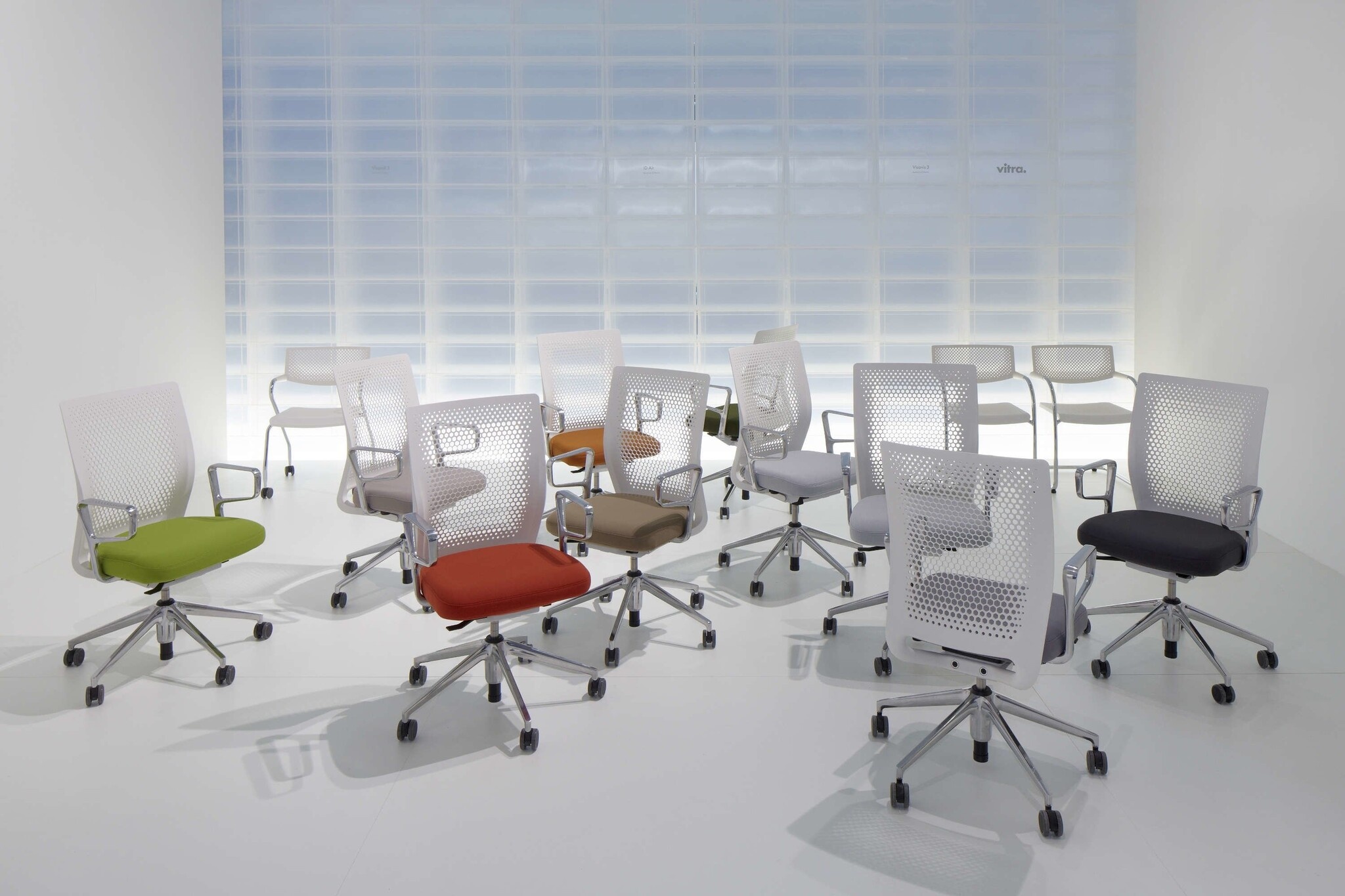 De Vitra ID Air bureaustoel heeft een eenvoudige constructie, maar biedt optimaal zitcomfort. De stoel heeft een flexibele rugleuning van kunststof met een gaatjespatroon. Vandaar de naam Air. De rugleuning is onderhoudsvriendelijk en garandeert een aangename luchtcirculatie. Deze bureaustoel is ideaal toe te passen in kantoren voor langdurige werkzaamheden aan een bureau. Hij biedt namelijk langdurig ondersteuning voor een gezonde zithouding en voorkomt hiermee lichamelijke klachten. Vitra ID Air met Clima Seat