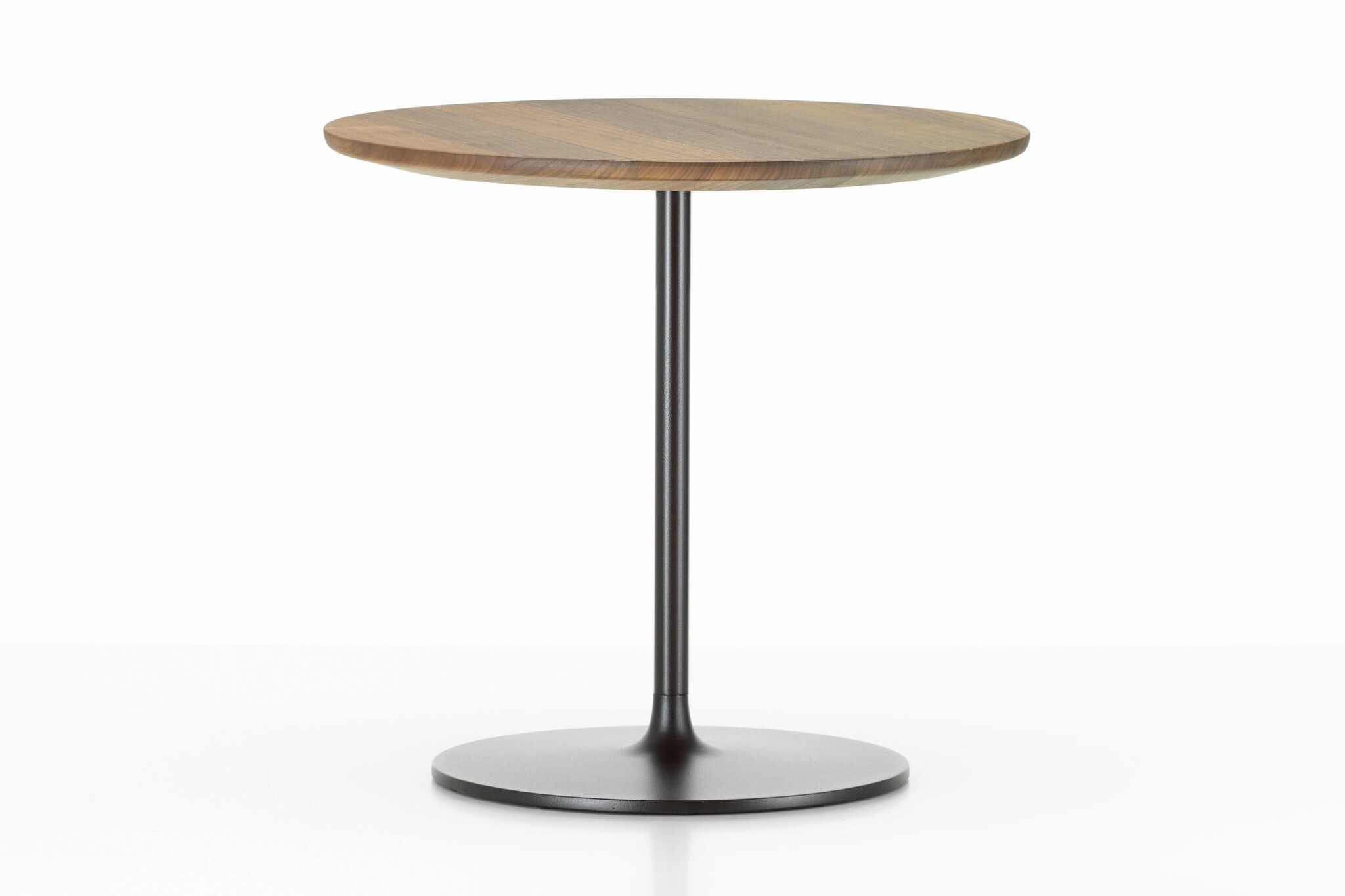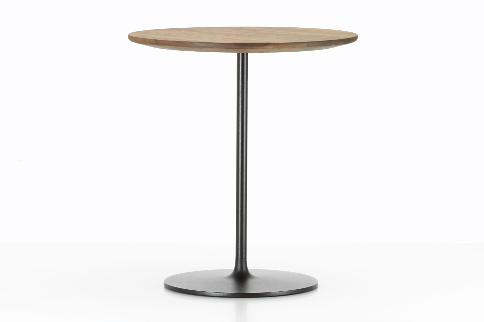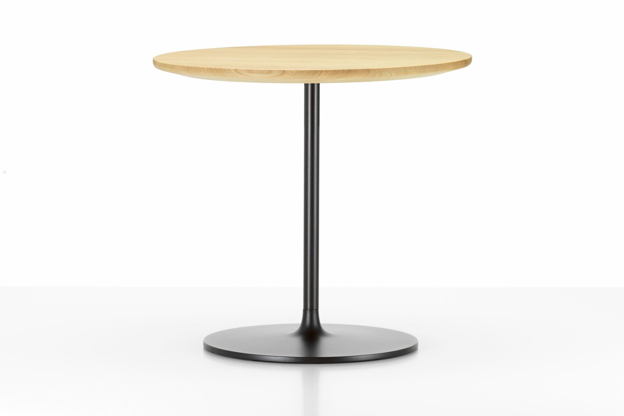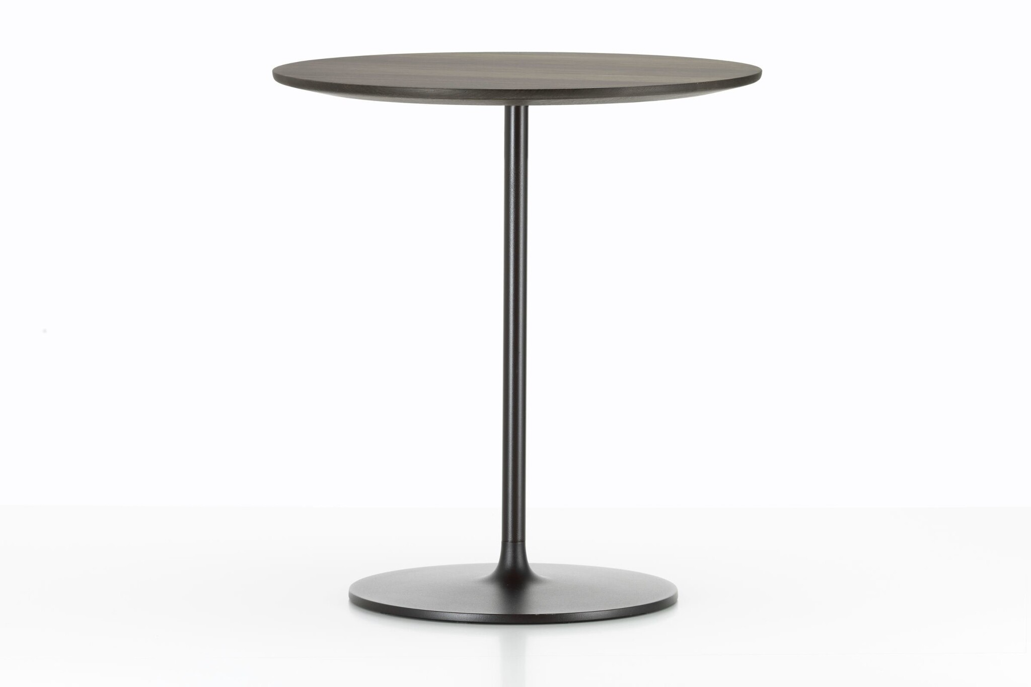 De kleine tafels met een stabiele metalen voet bestaan in drie hoogtes; van het niveau van een bijzettafel tot een standaard legplank, en met verfijnde tafelbladen met afgeschuinde randen, gemaakt van aluminium of kwaliteitsvol massief hout.