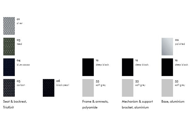 De bekleding van de Vitra Physix is gemaakt van Trioknit of geweven Fleecenet.