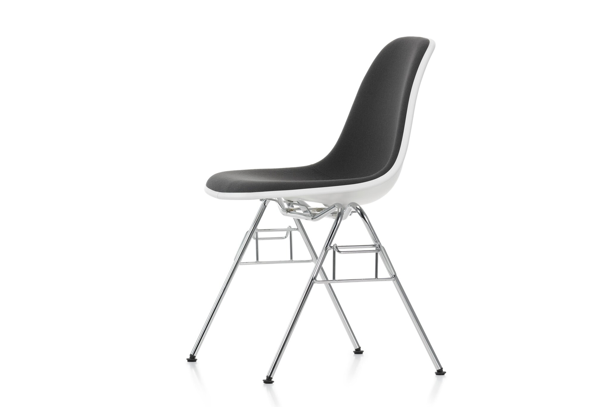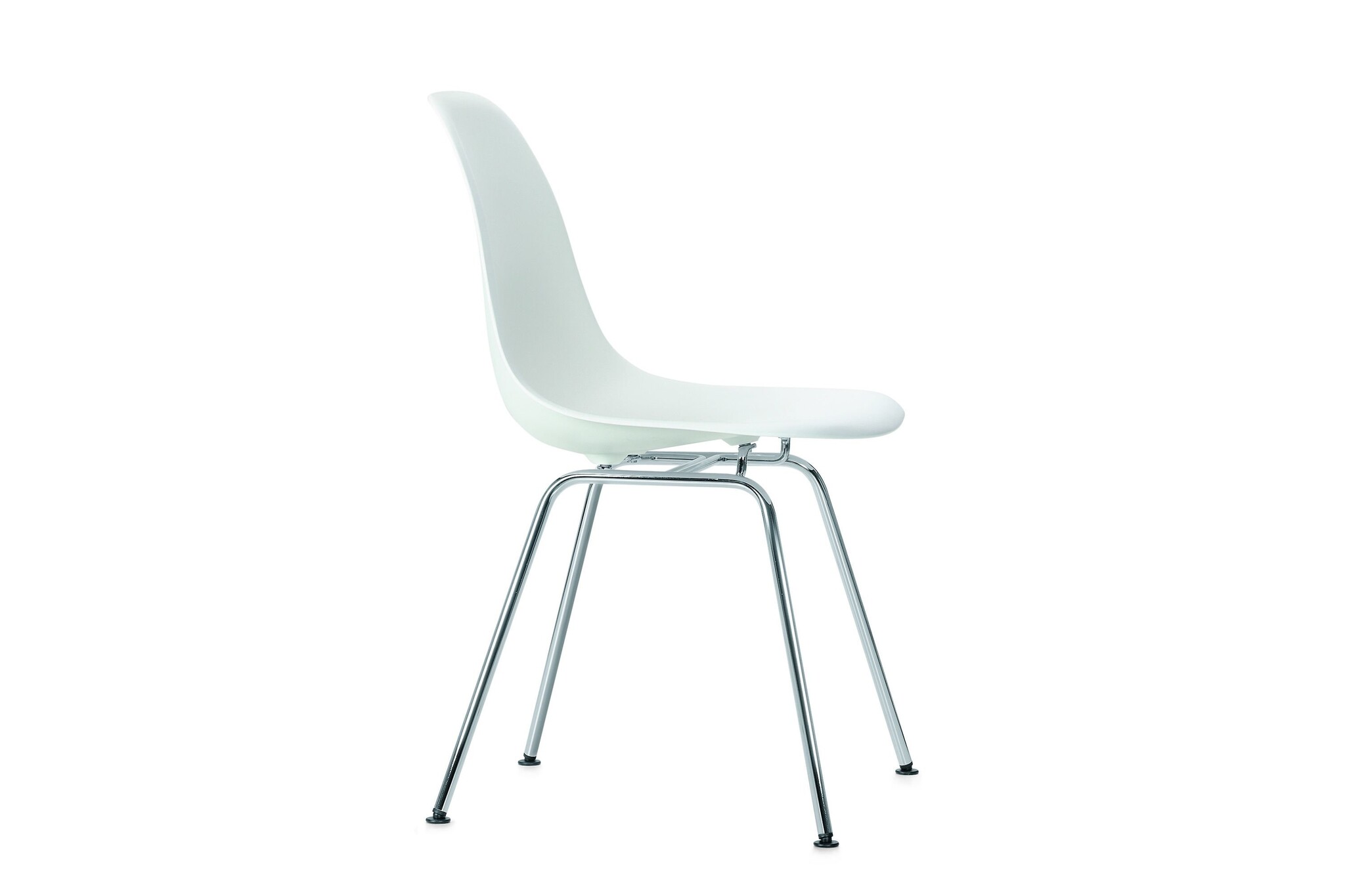 Vitra Plastic Side Chair was de eerste industrieel vervaardigde kunststof stoel op de markt. Ray en Charley Eames ontwierpen al van af het begin verschillende onderstellen voor verschillende toepassingen. Zo is deze veelzijdige Plastic Side Chair geschikt als restaurantmeubilair, voor kantoren, praktijken, luchthavens of sportstadions. De 4-poots uitvoering zonder stoffering is stapelbaar tot 14 stoelen hoog. Nieuwe hoogte en kleuren