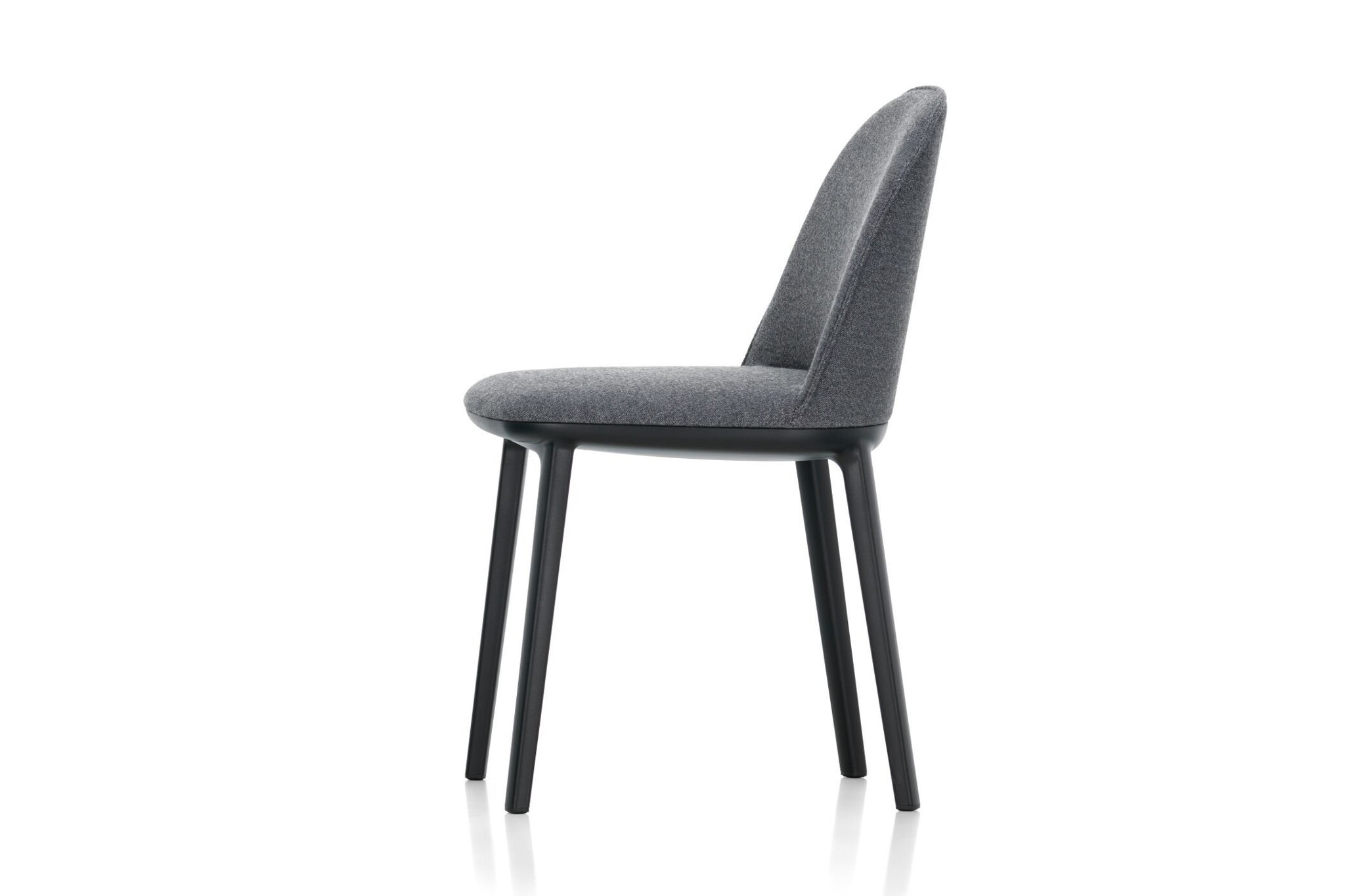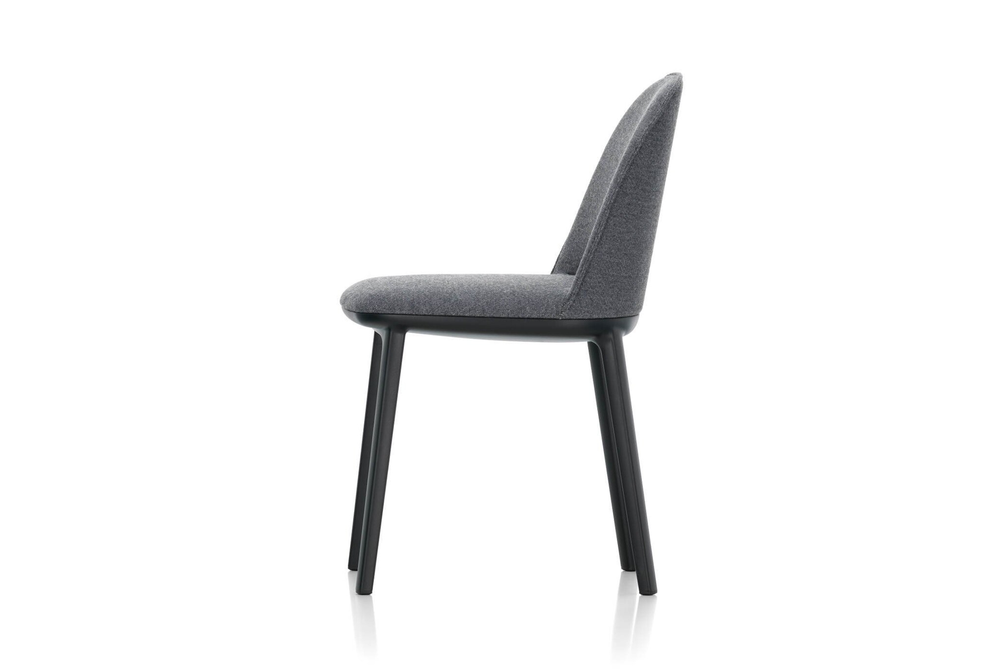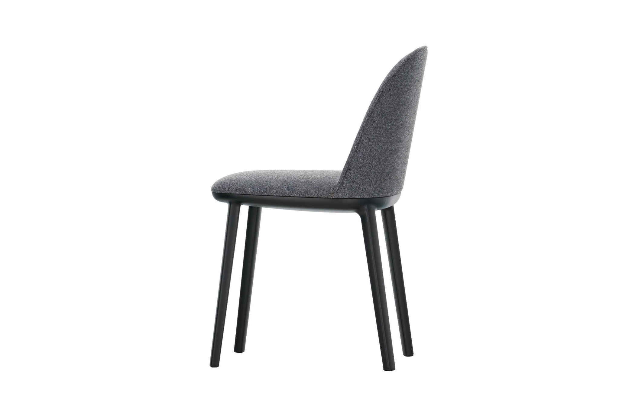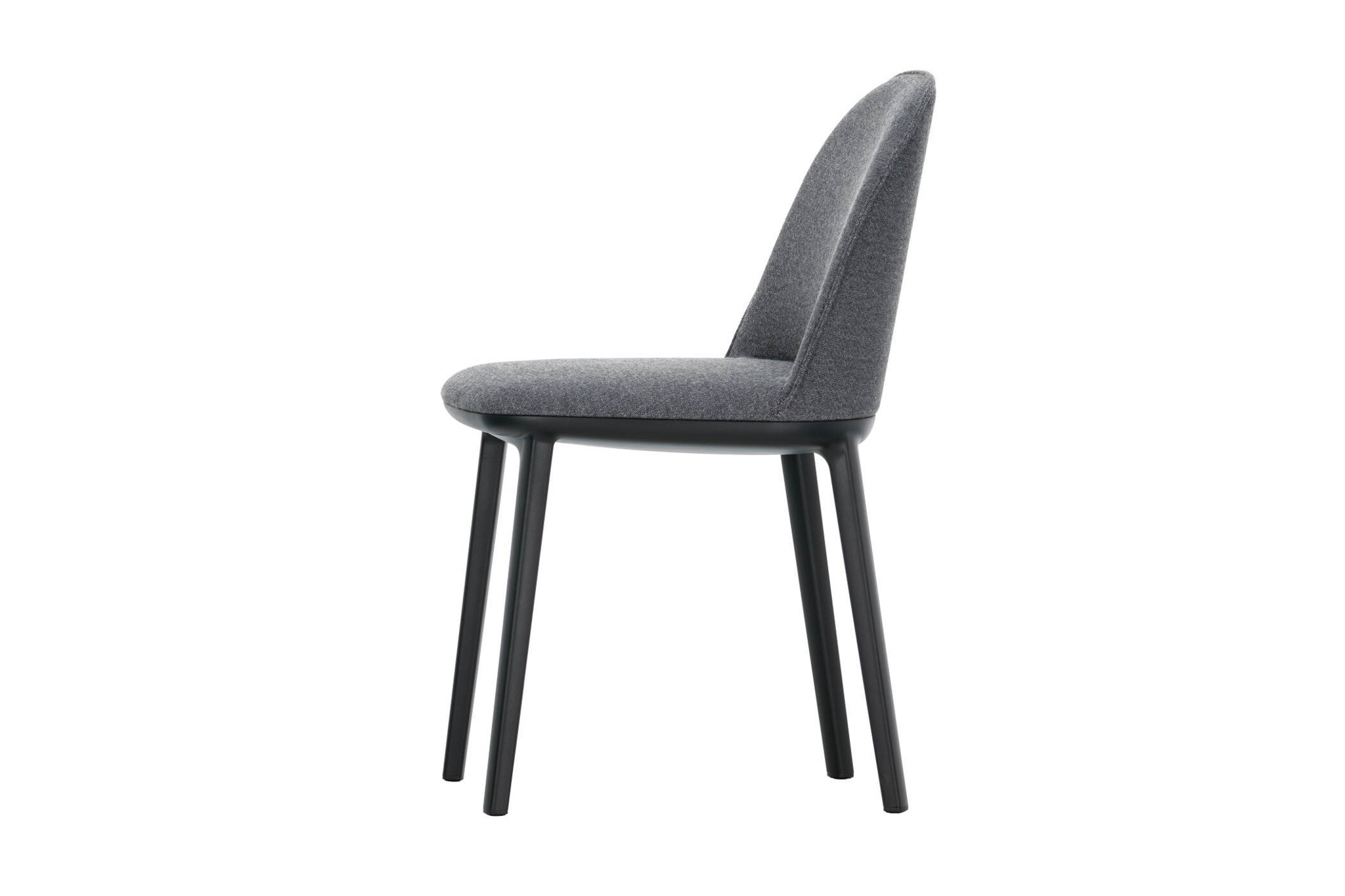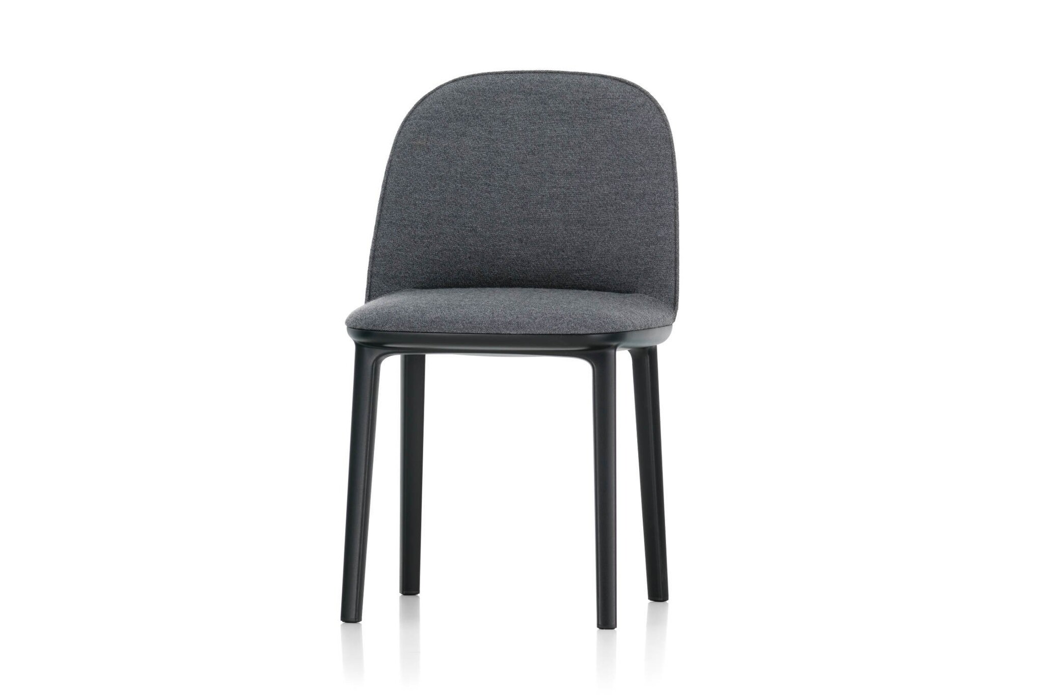 De Vitra Softshell Side Chair heeft een onderstel in basic dark met vier poten. De zachte contouren worden benadrukt door de zachte bekleding.
